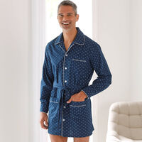 Pyjama long col V manches longues coton adouci (bleu grisé / marine)