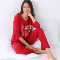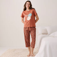 Pantacourt pyjama coton imprimé "feuillage" avec lien à nouer