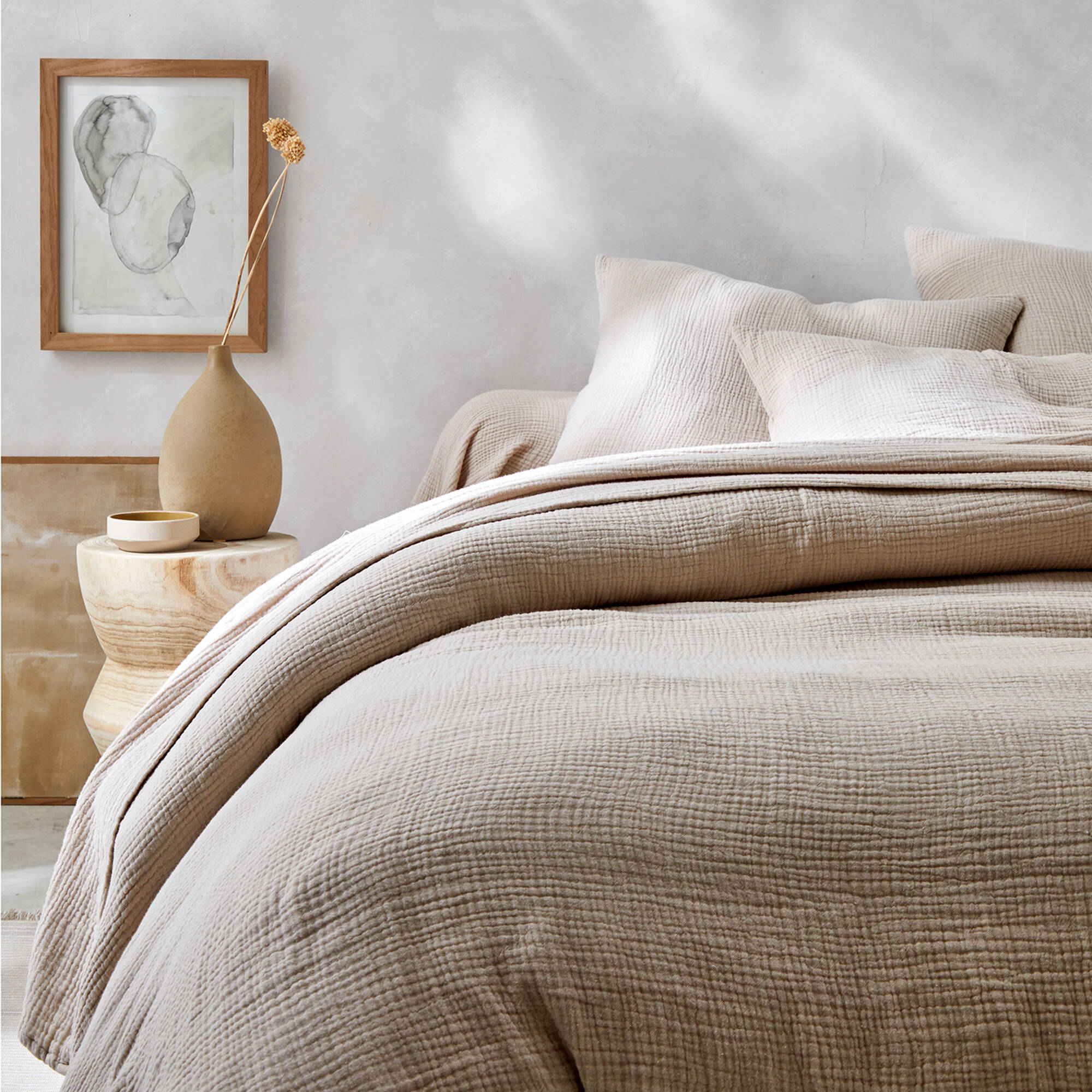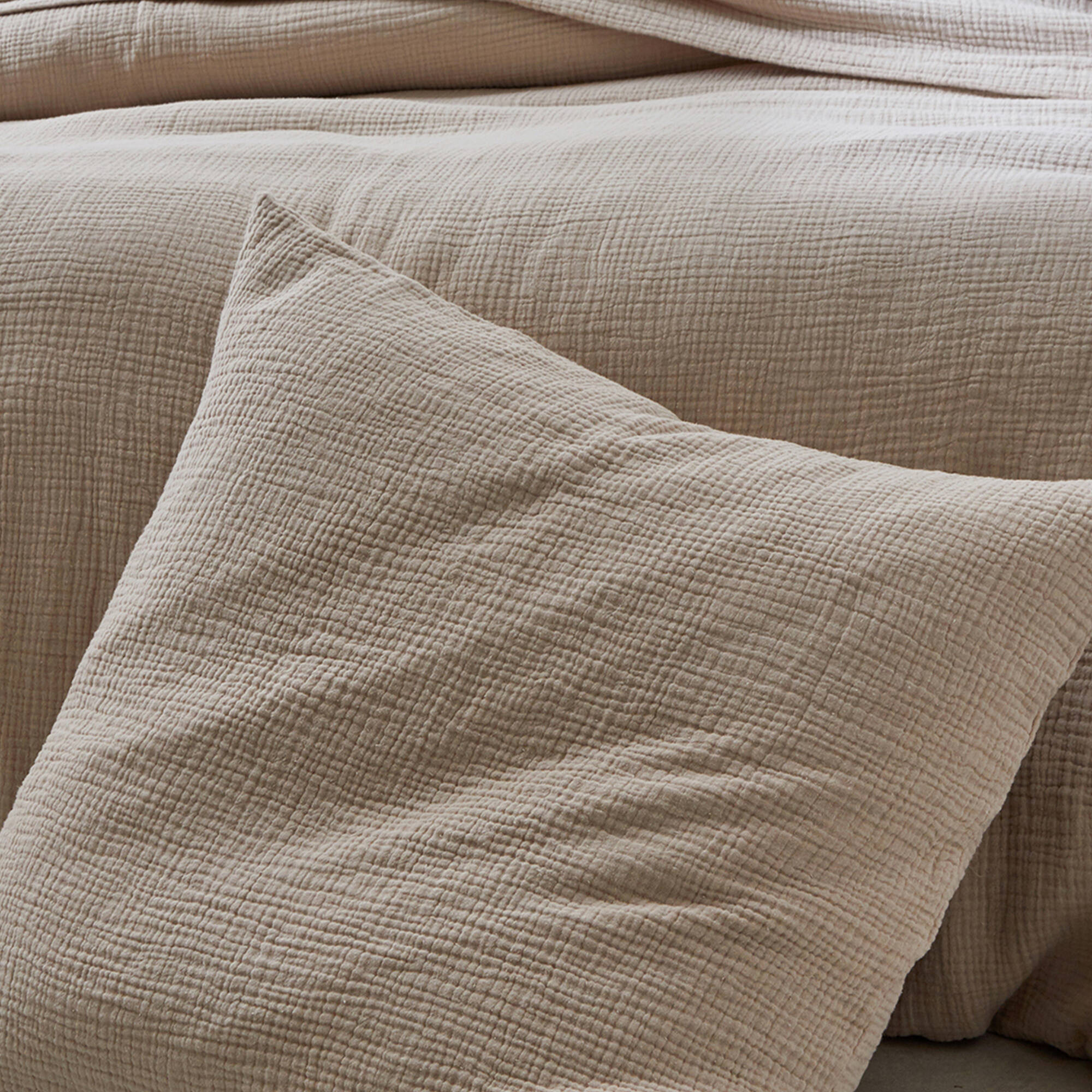 Linge de lit uni en triple gaze de coton (sable)