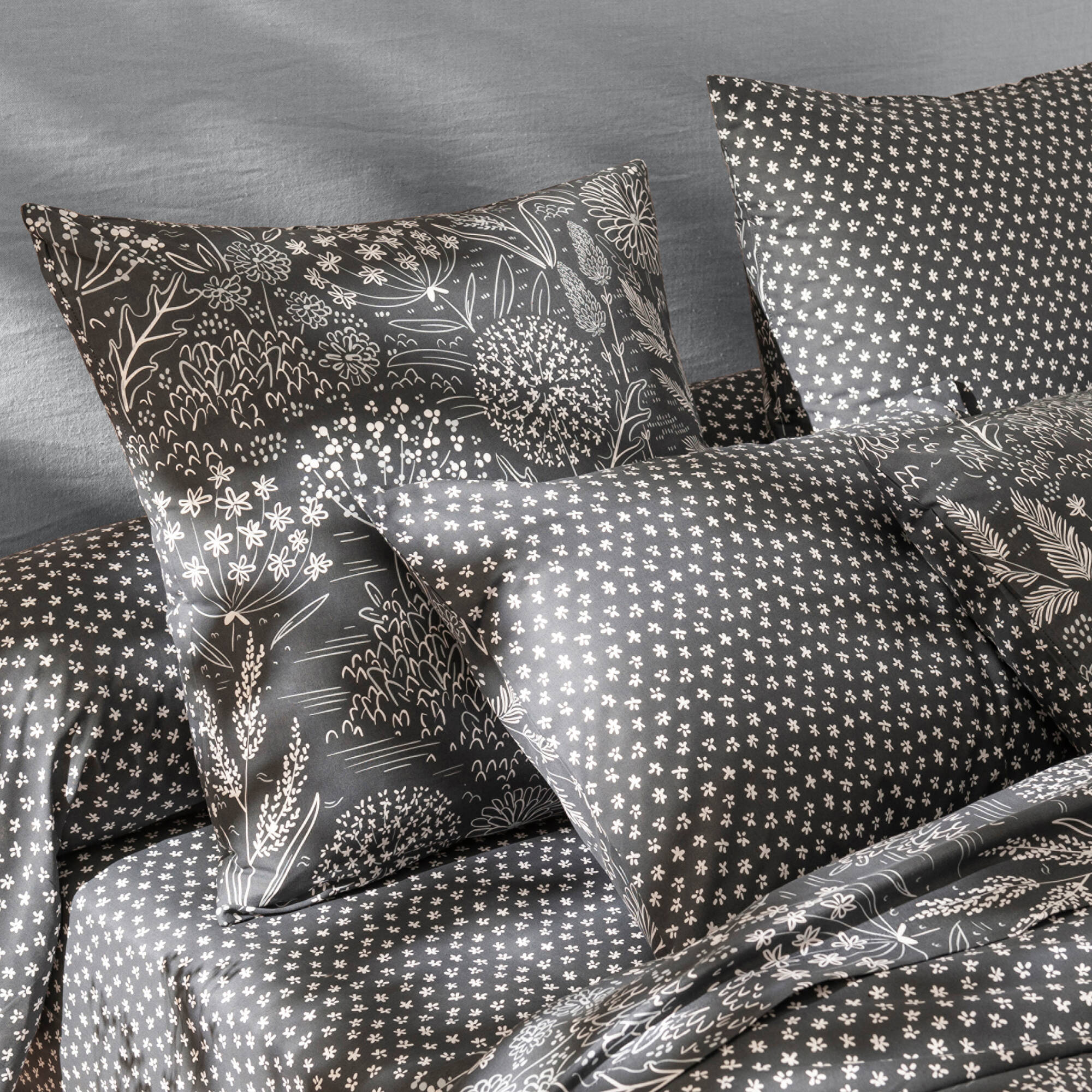 Linge de lit Horia coton et lyocell (gris / blanc)