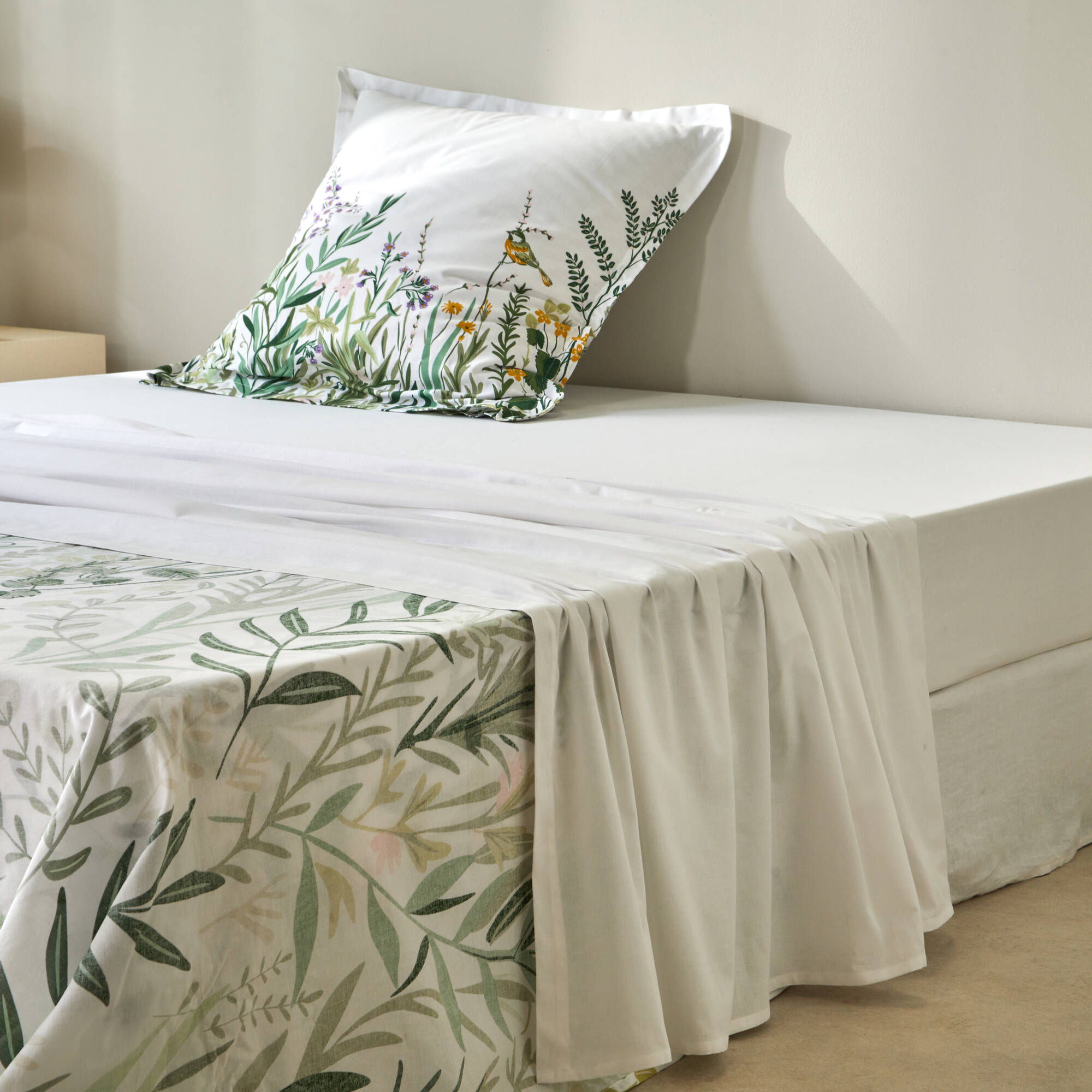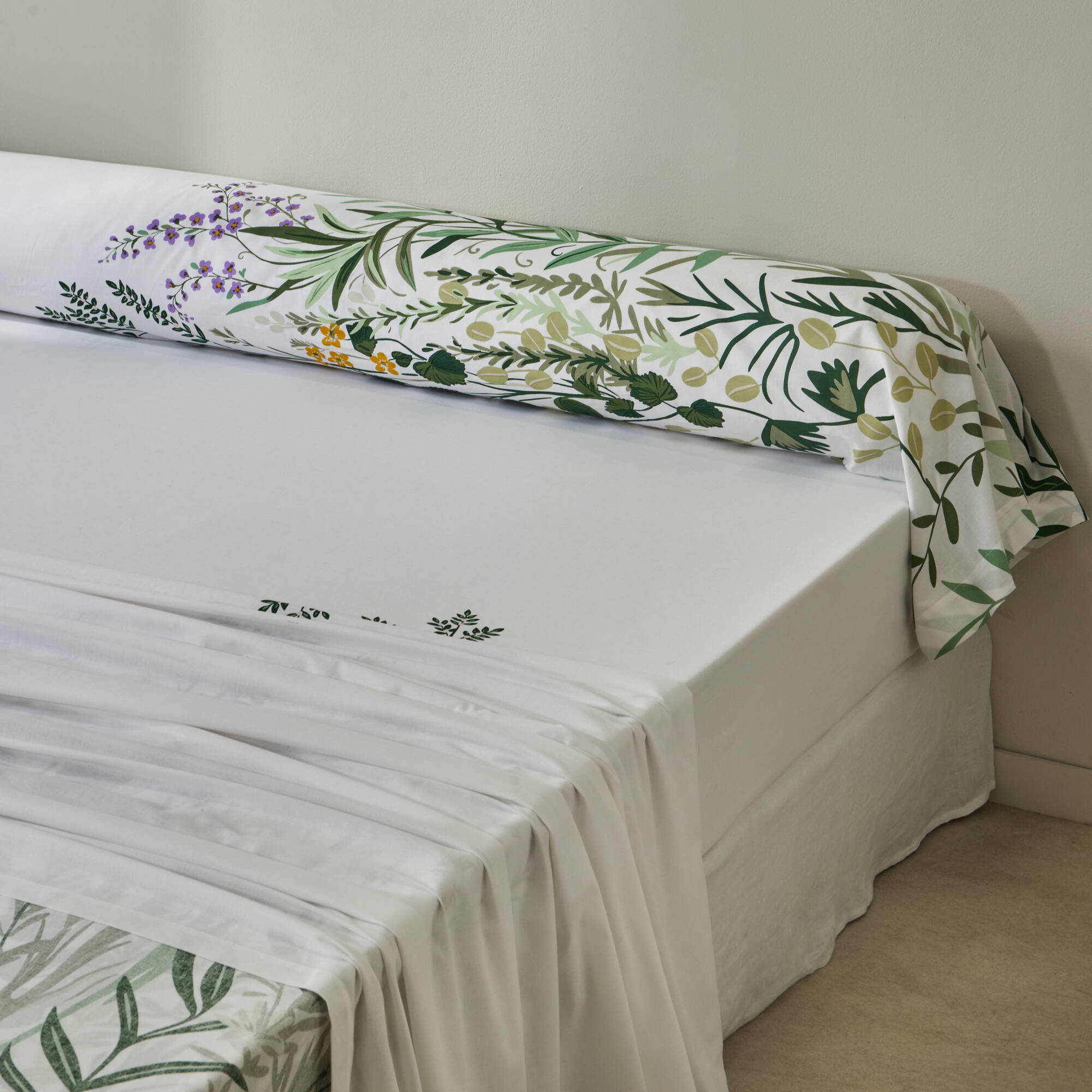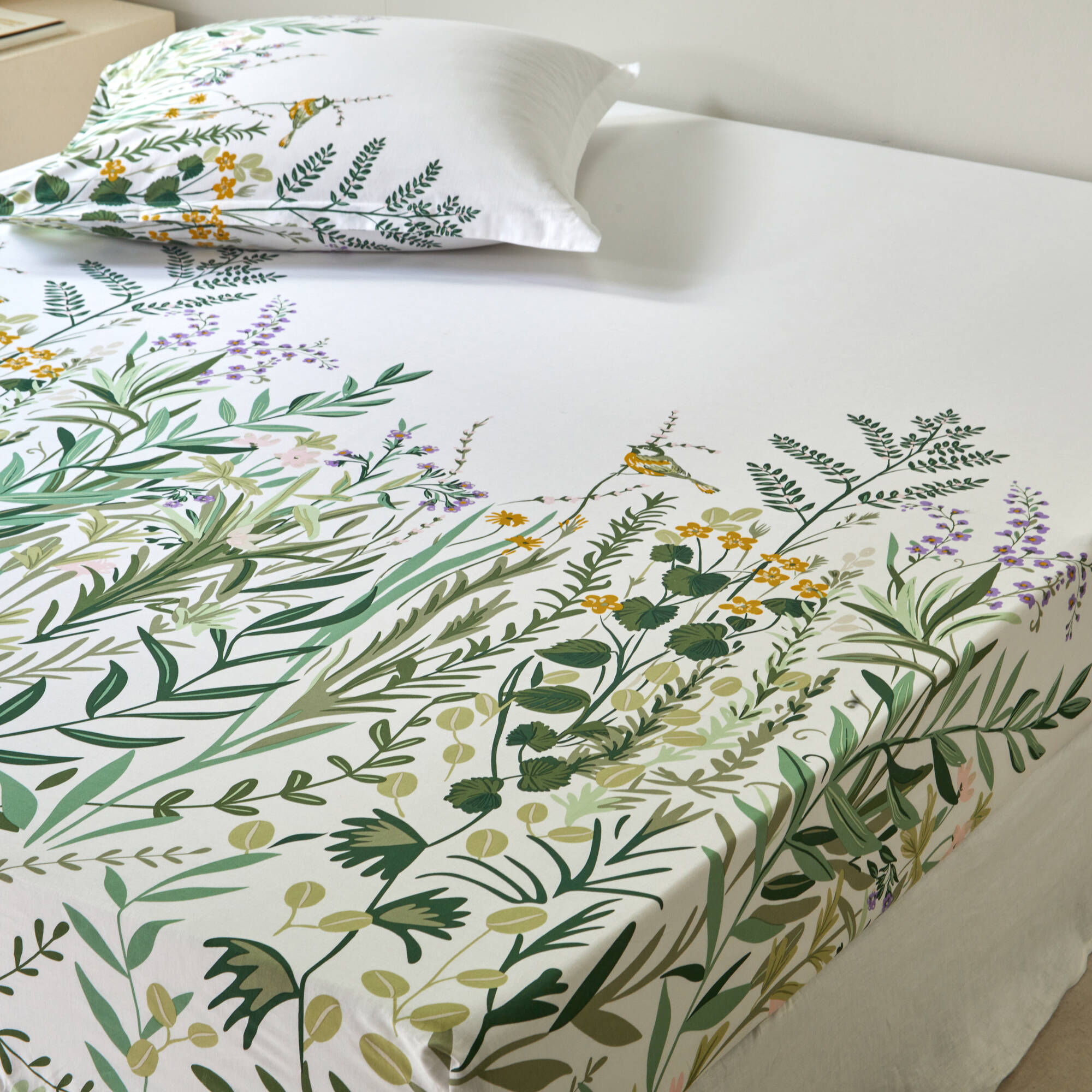Linge de lit Alice en coton imprimé (blanc / vert)