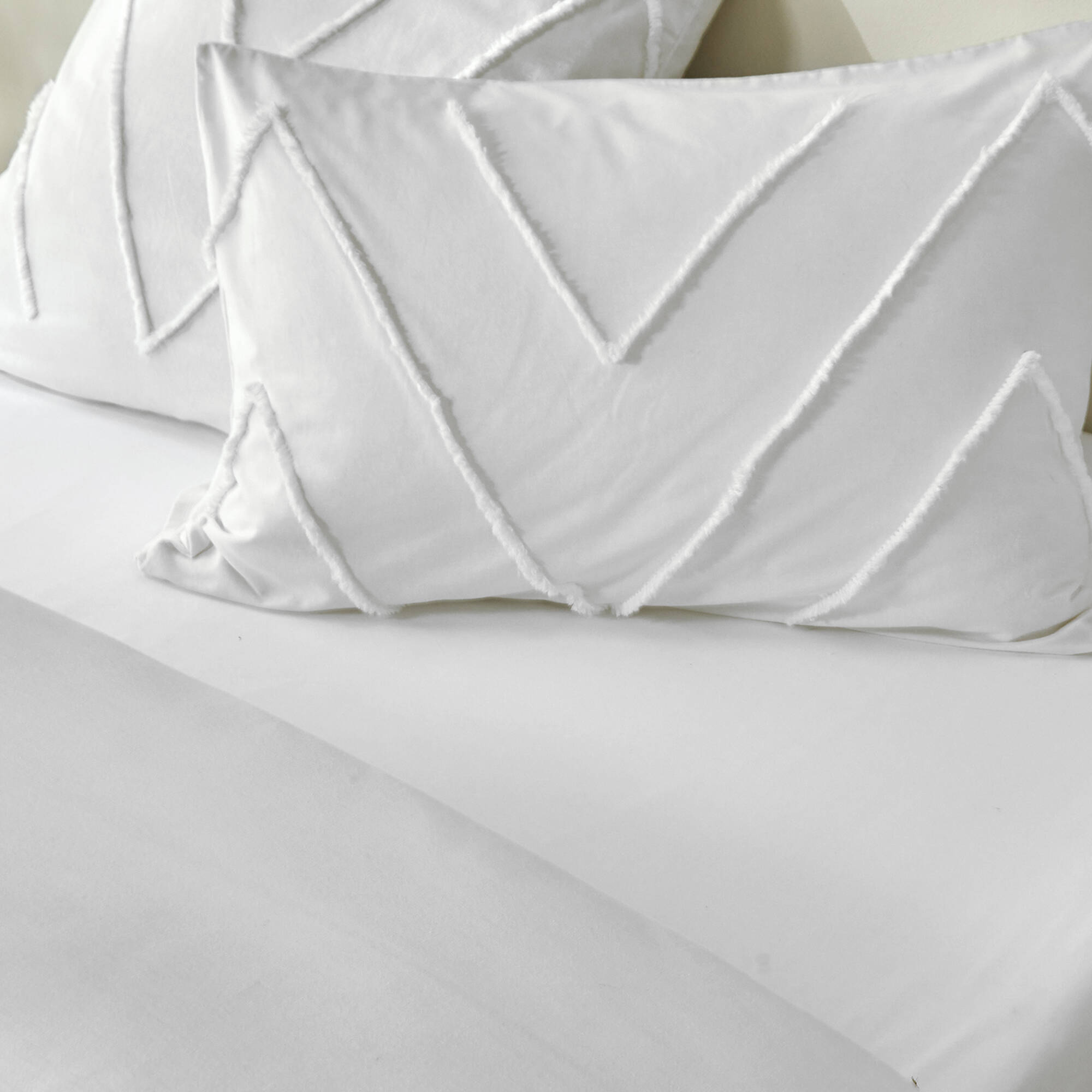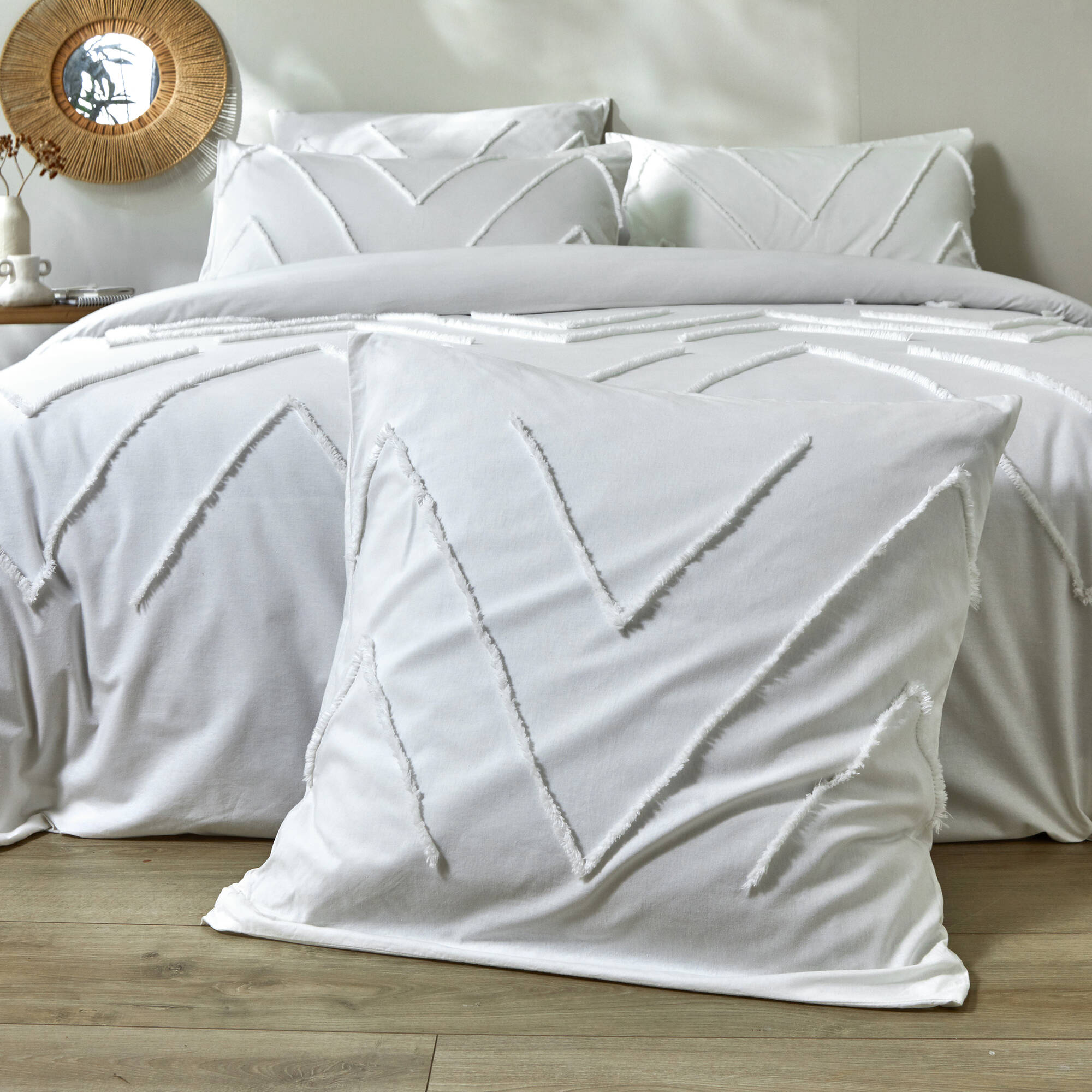 Linge de lit Amezia en coton lavé finition tufté en relief (blanc)