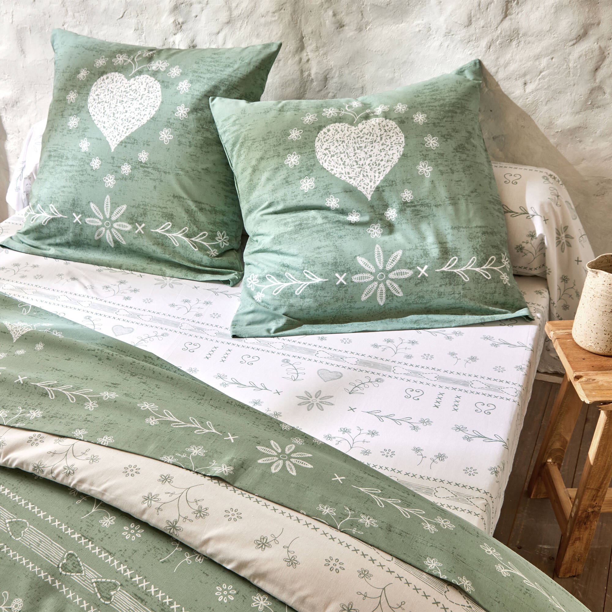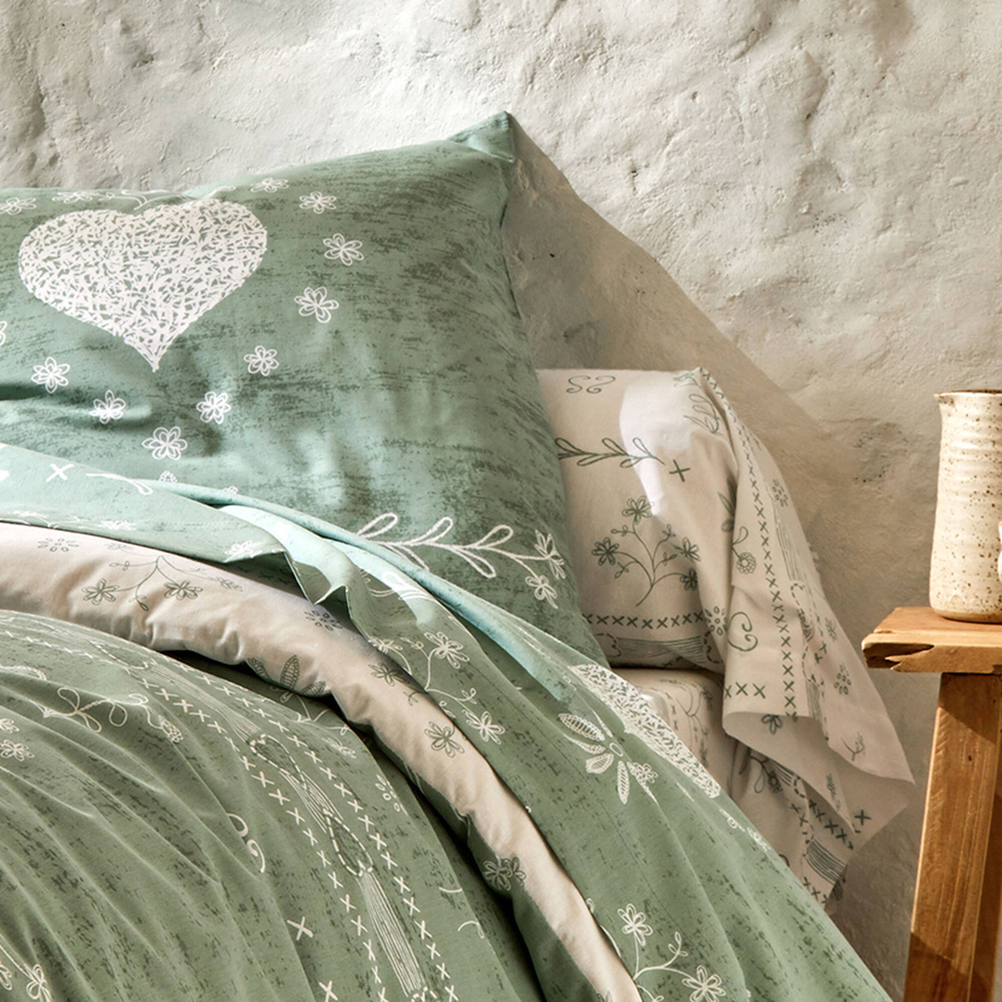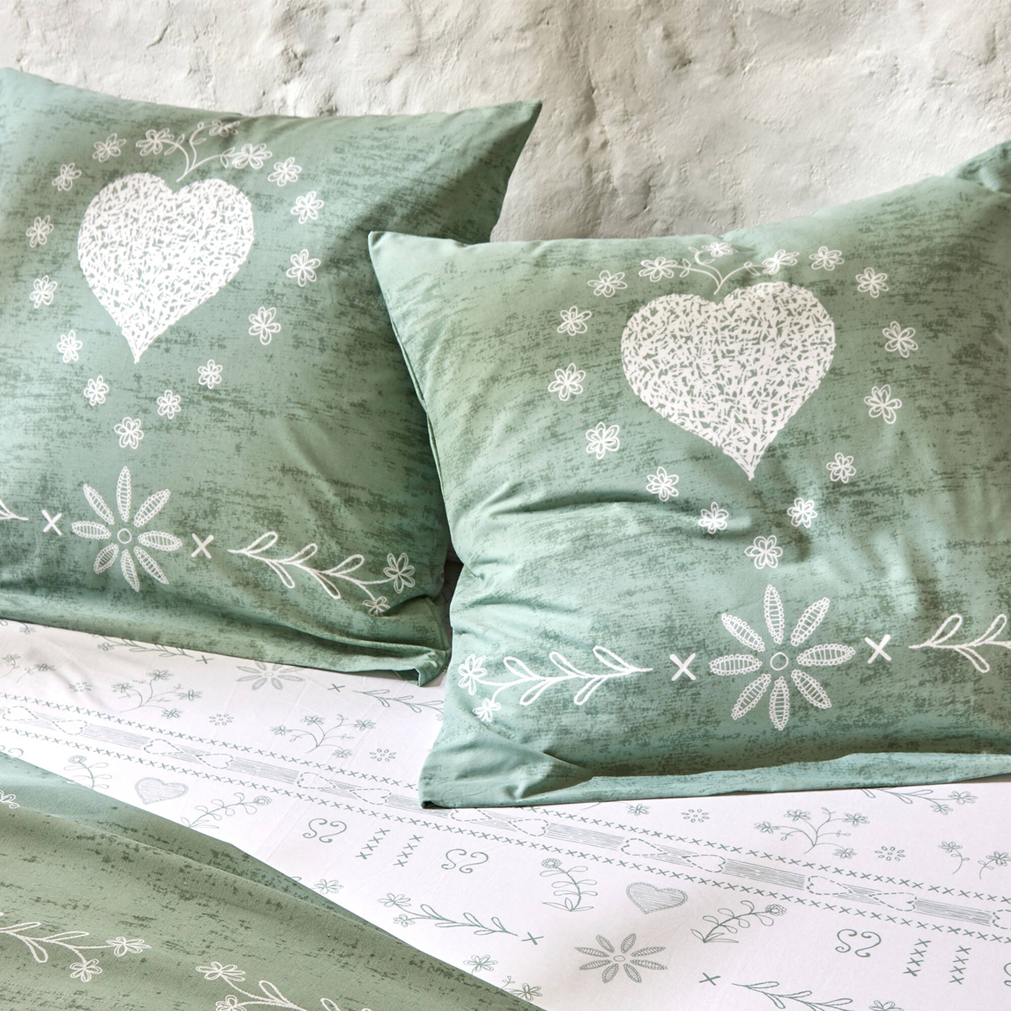 Linge de lit Anceny imprimé coeur - coton (eucalyptus)