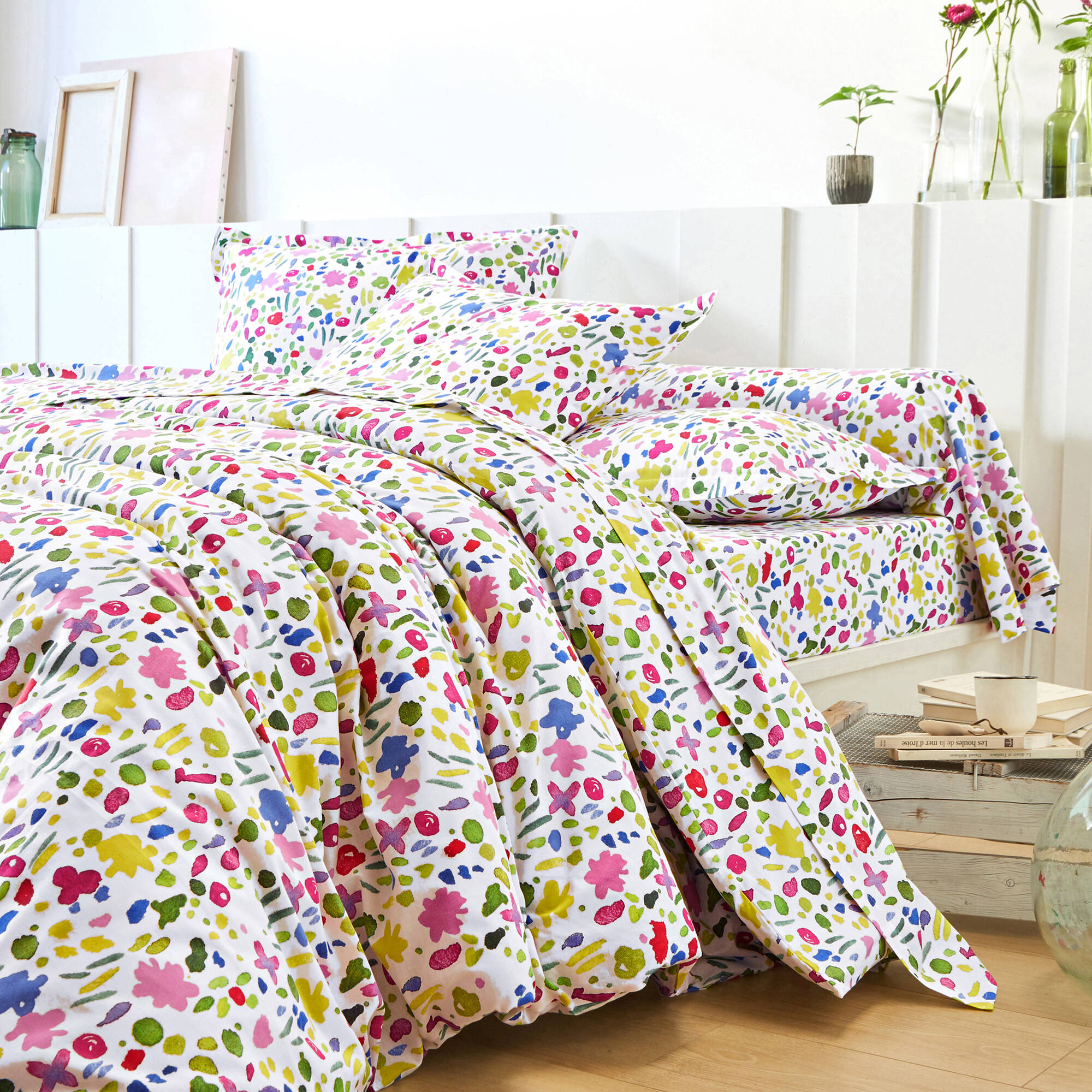Linge de lit Aquarelle coton imprimé fleuri (blanc)