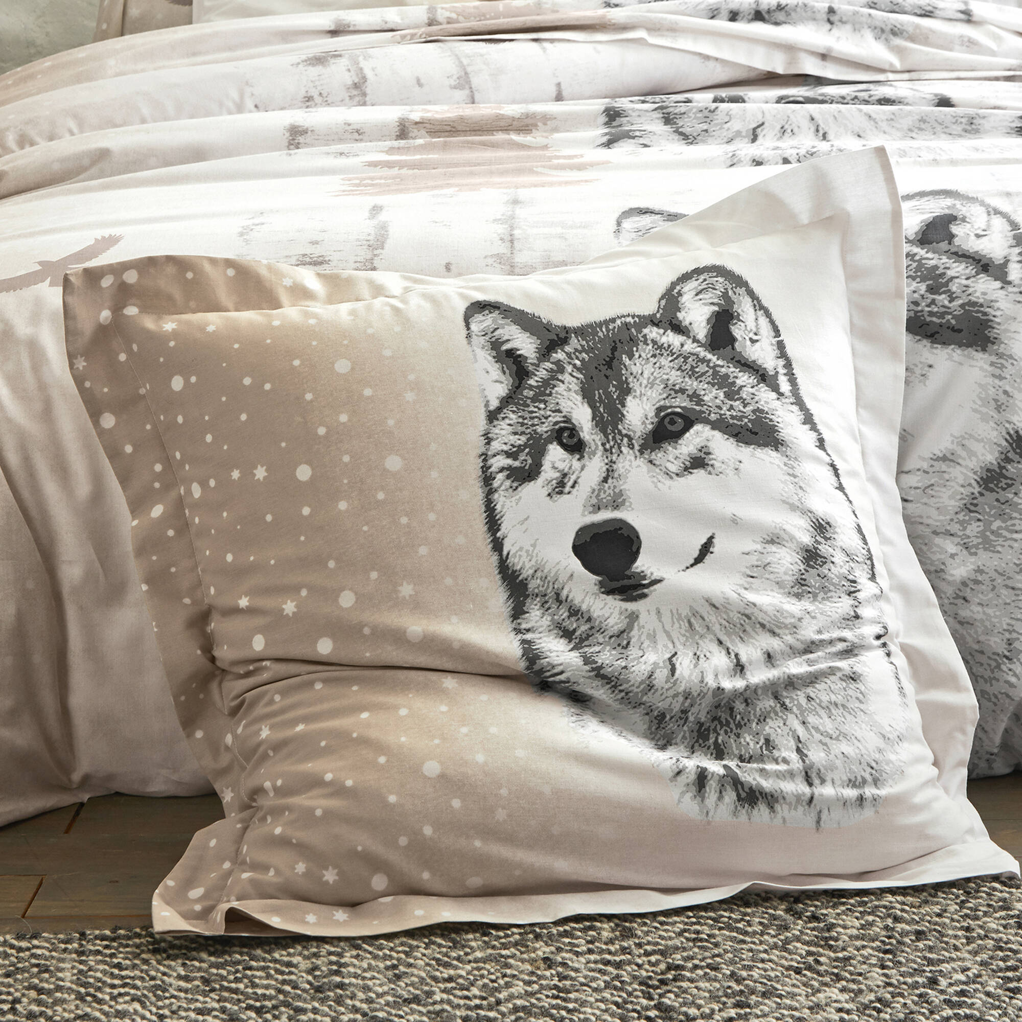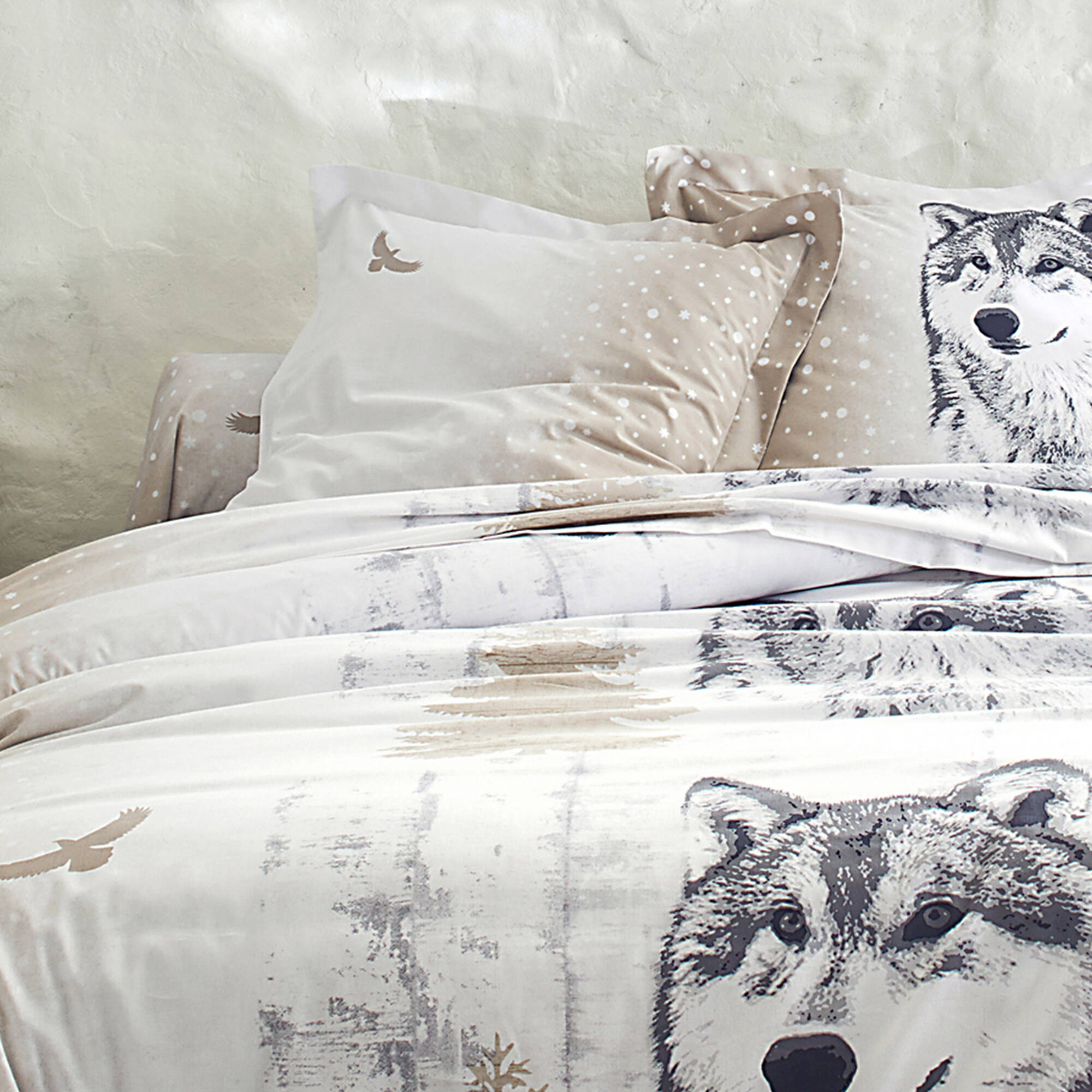 Linge de lit Artic imprimé chien-loup - coton (taupe)