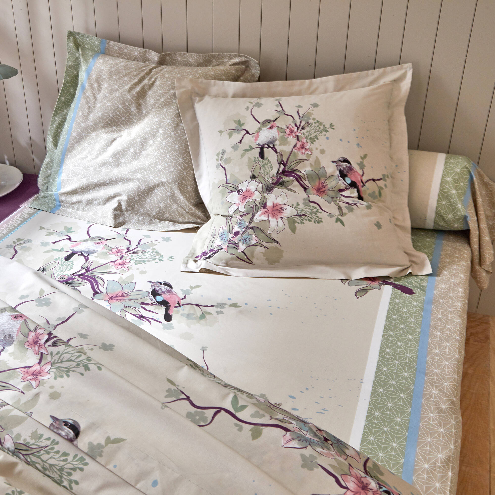 Linge de lit Birdy en coton imprimé oiseaux
