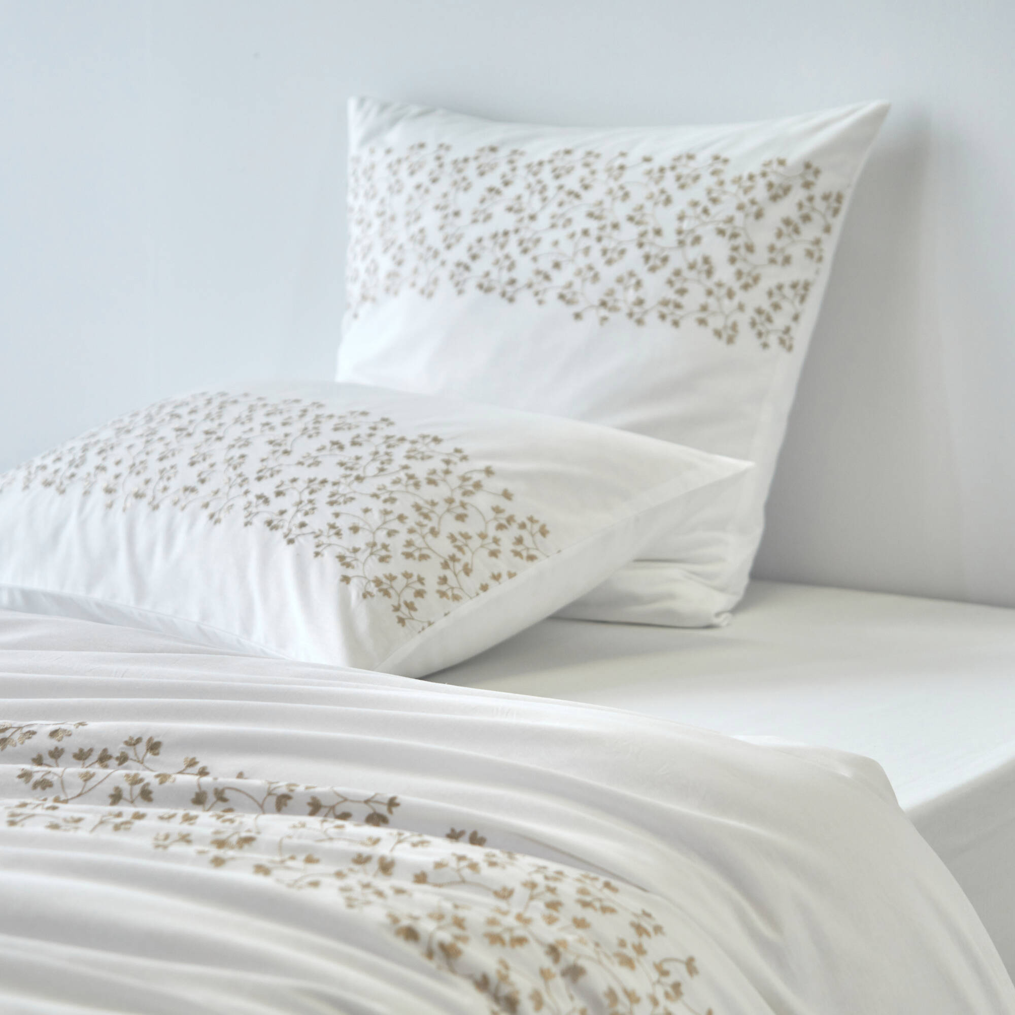 Linge de lit blanc brodé feuillage Colombine®