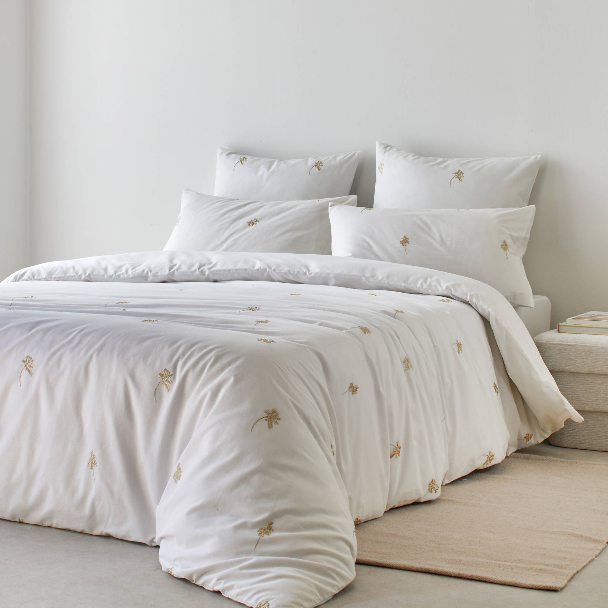 Linge de lit blanc brodé feuillage Colombine® (blanc)