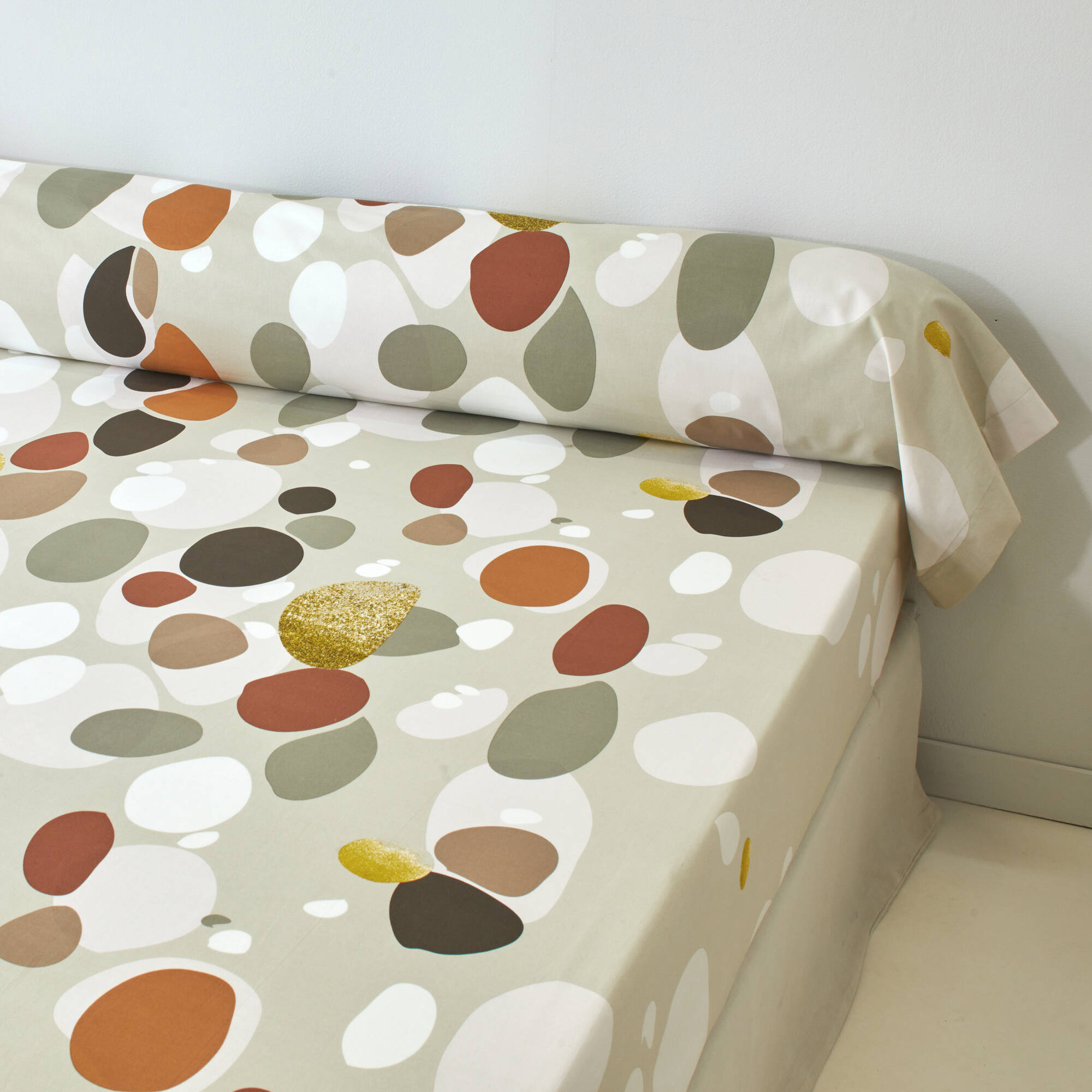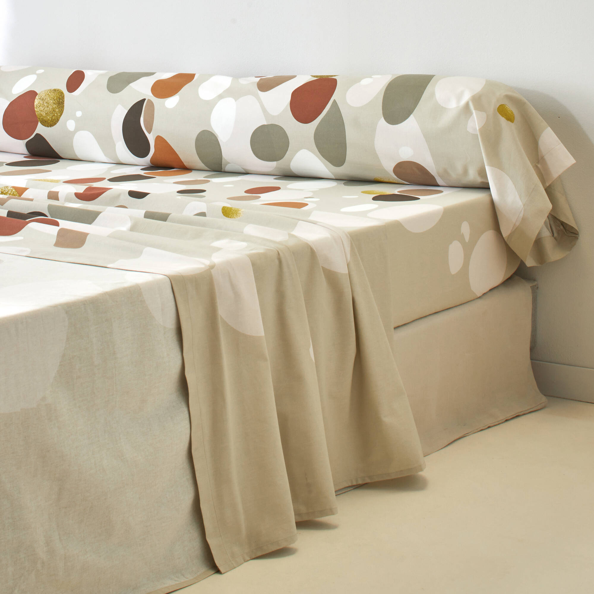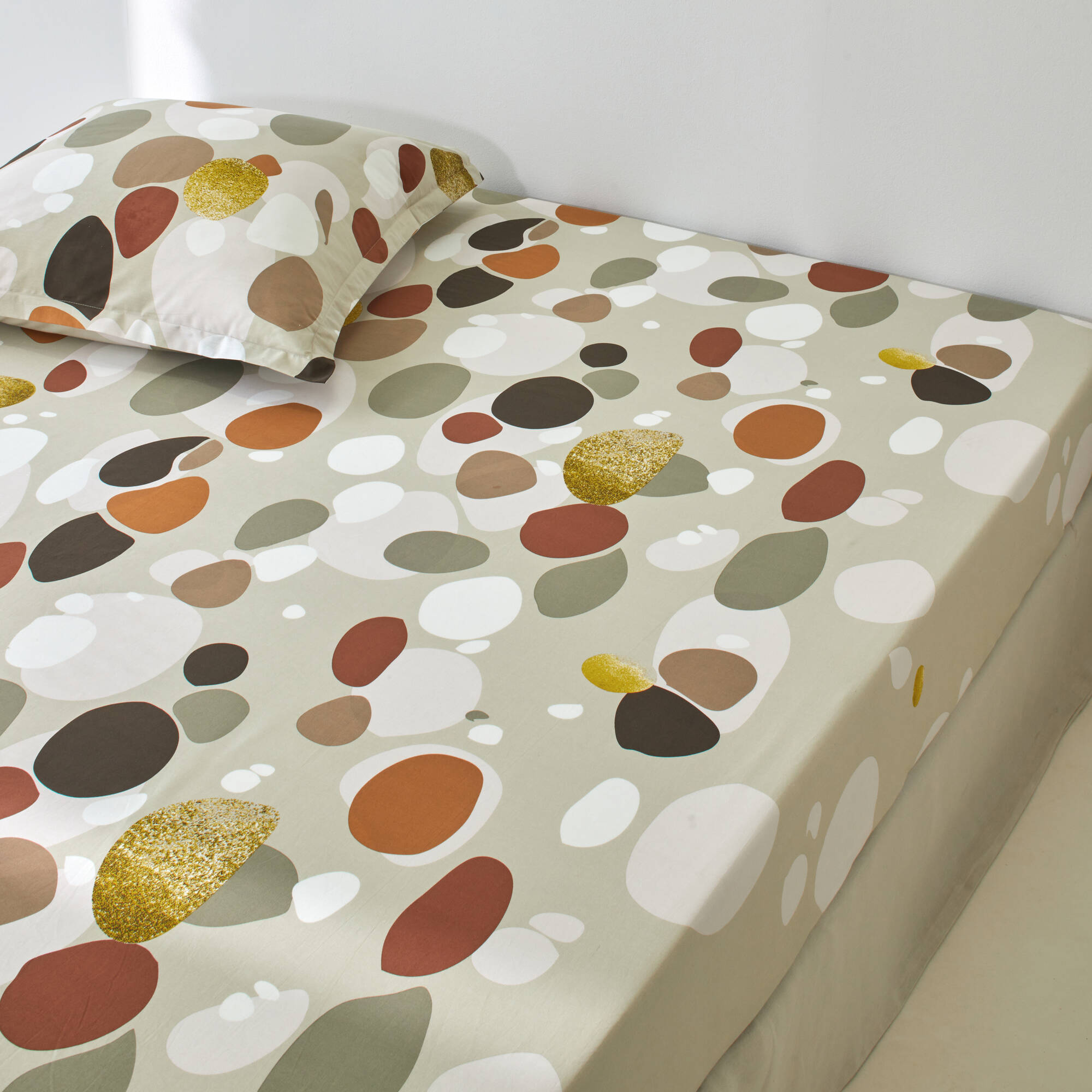 Linge de lit Bulles en coton imprimé (beige)