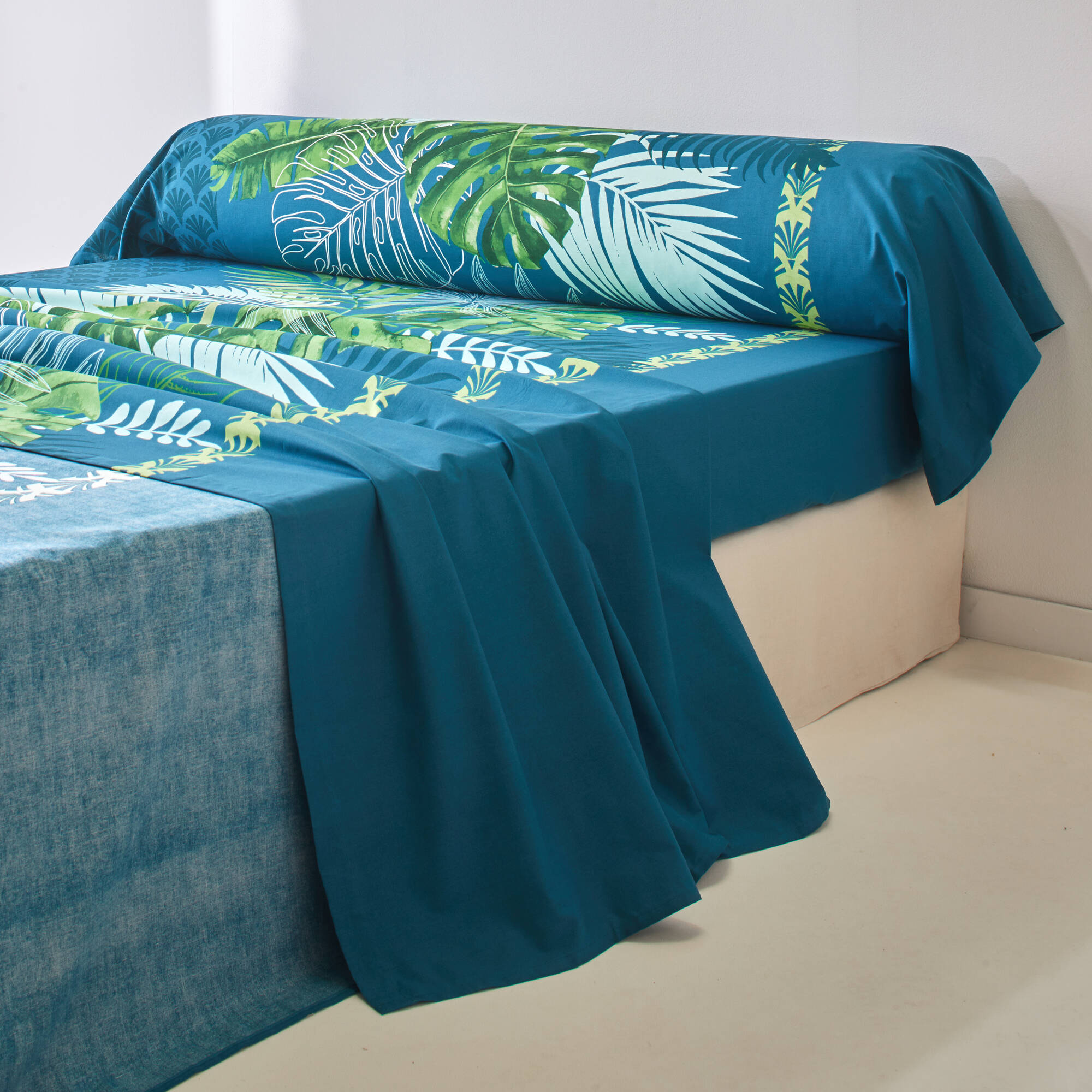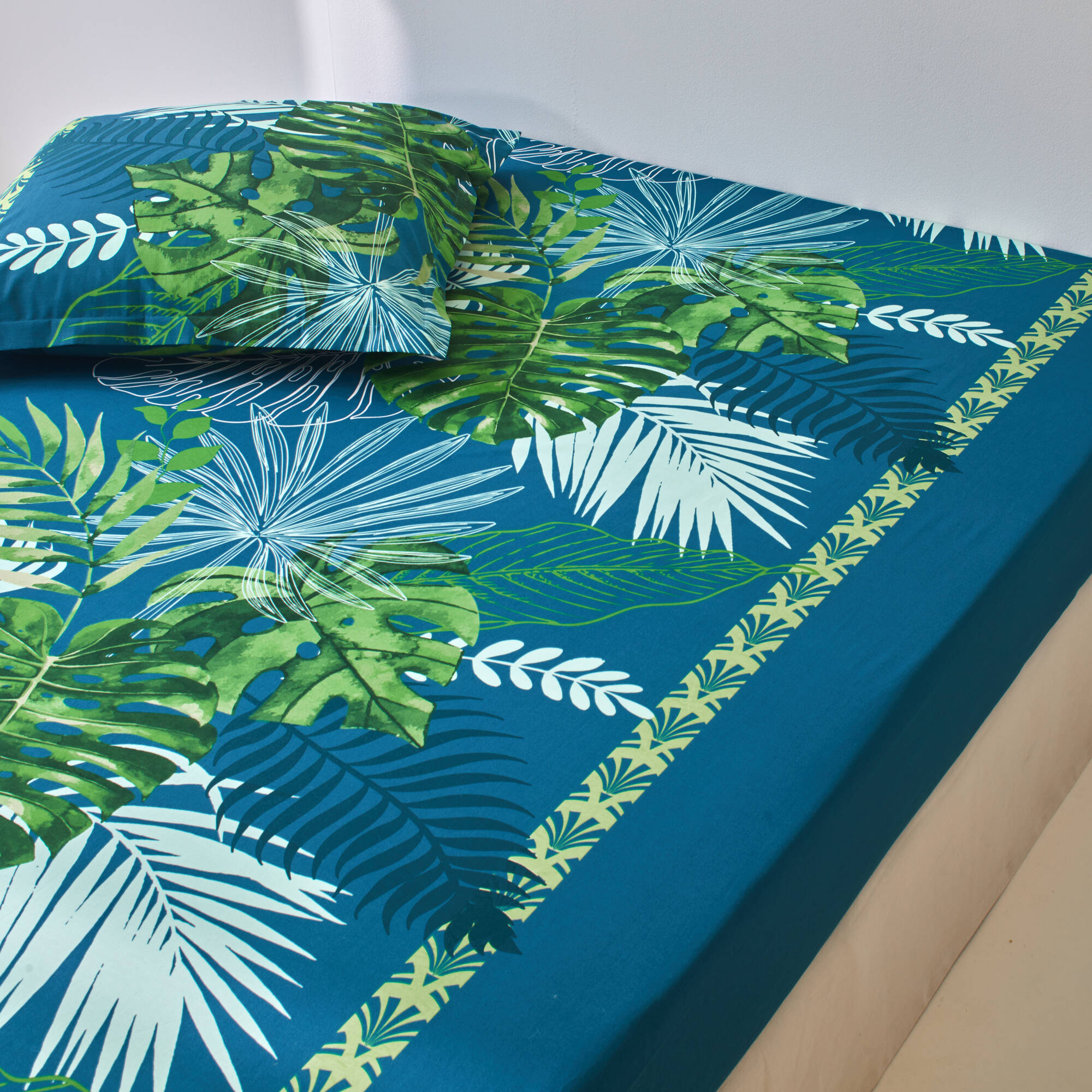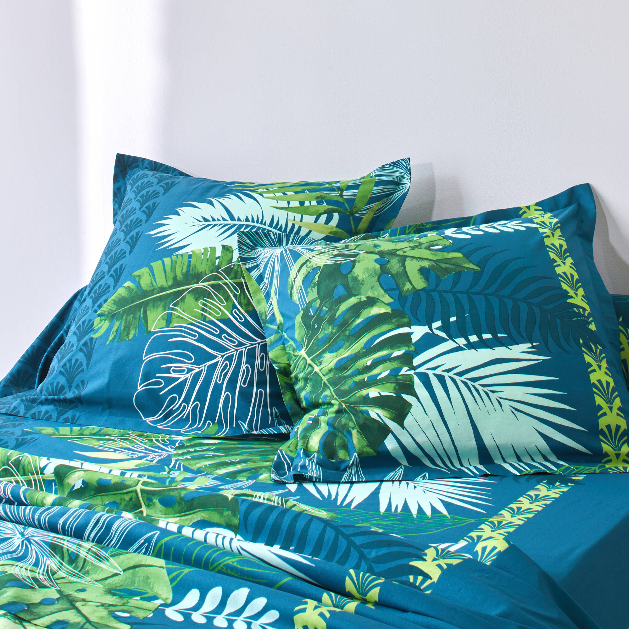 Linge de lit Cayenne en coton imprimé feuilles de palmiers