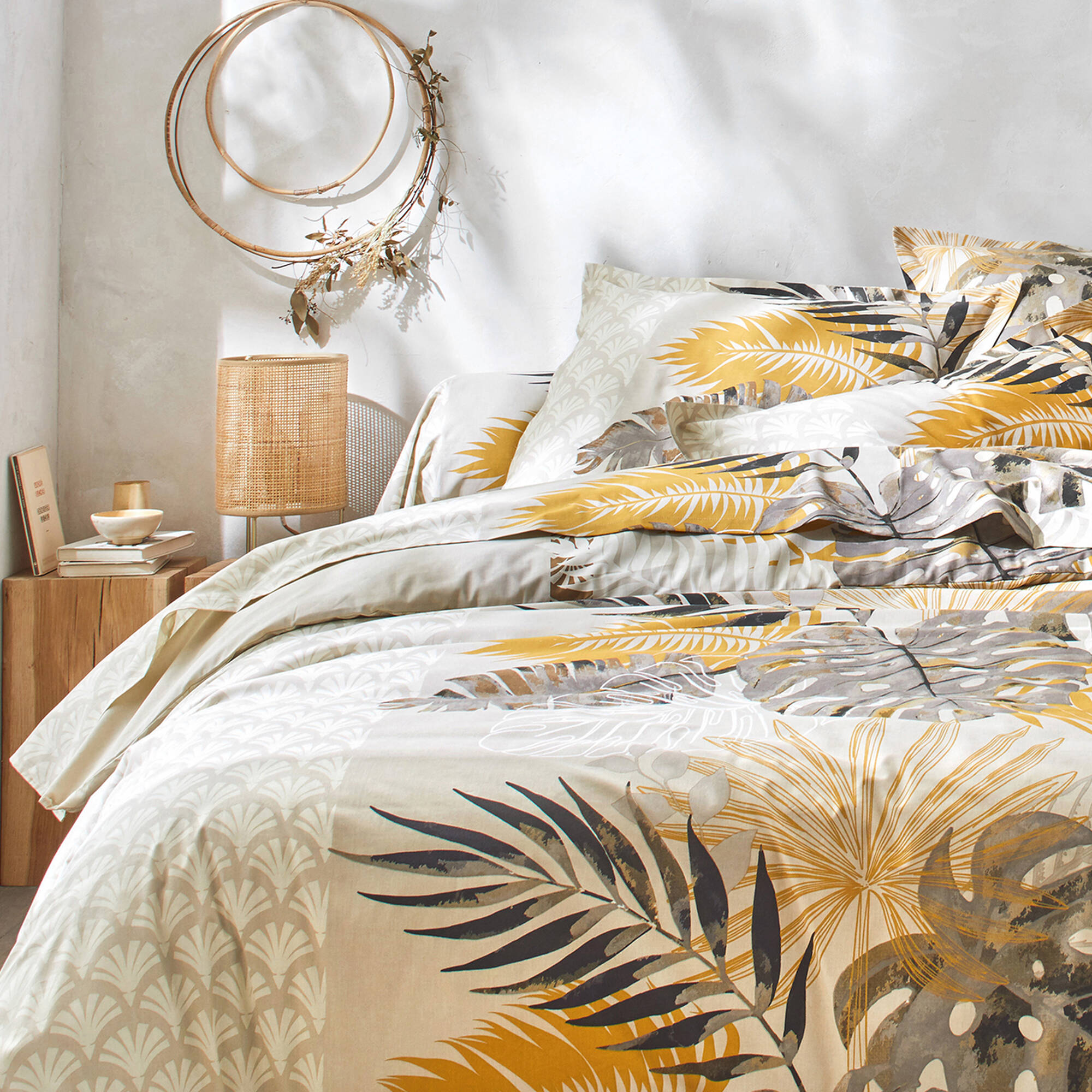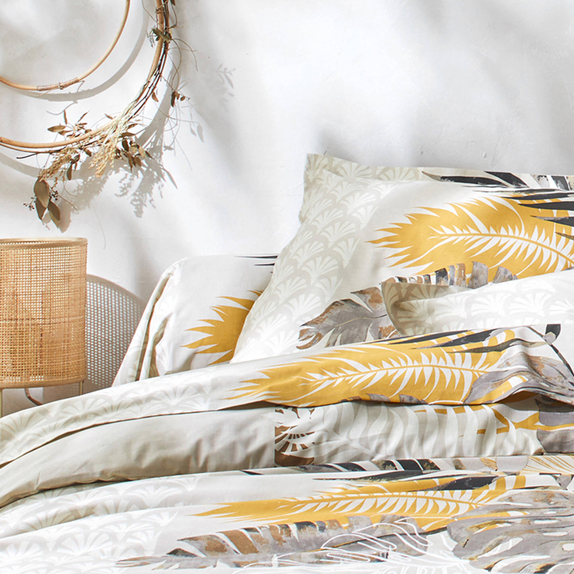 Linge de lit Cayenne en coton imprimé feuilles de palmiers