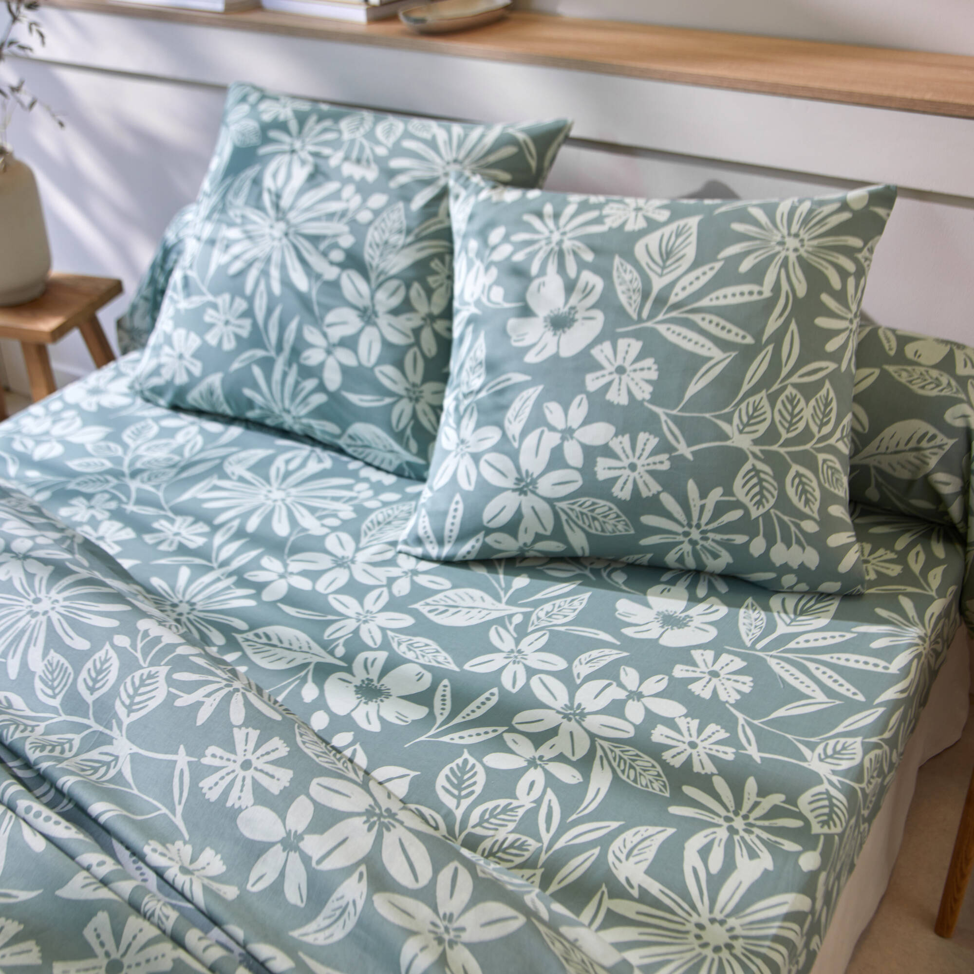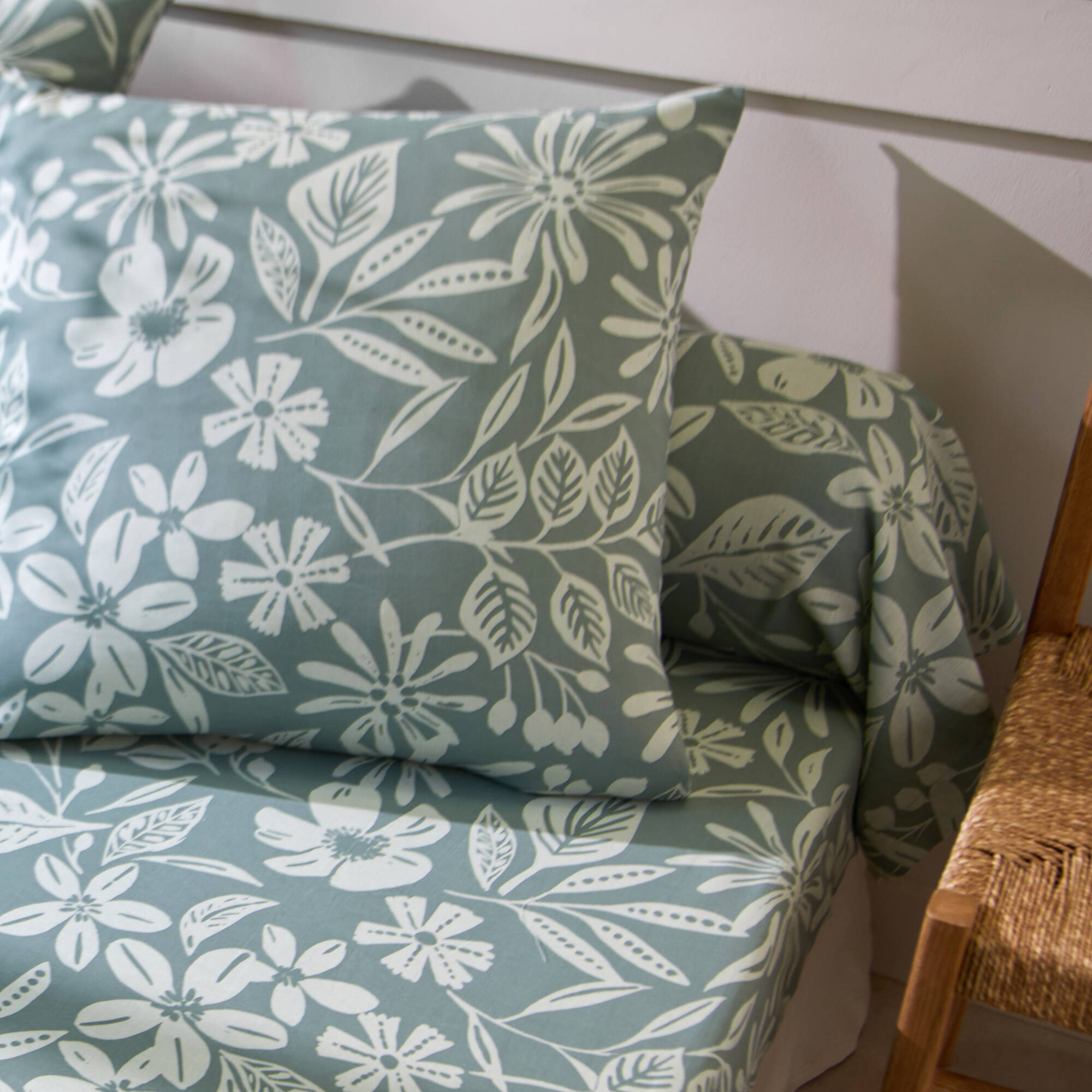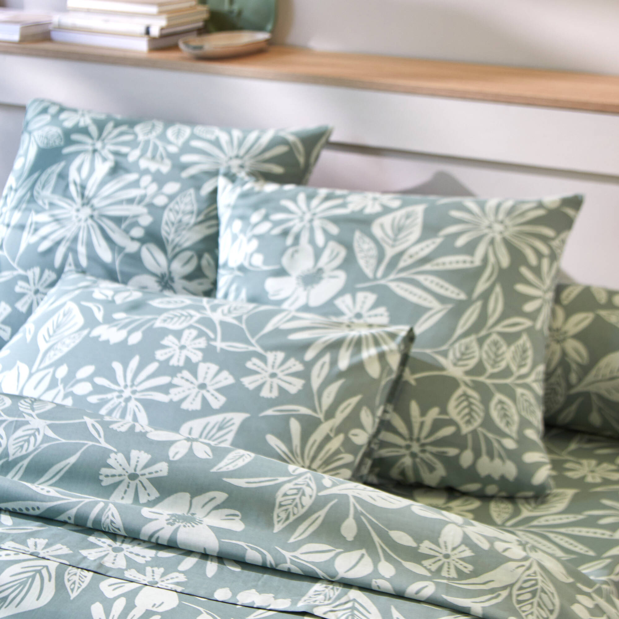 Linge de lit Céline en coton imprimé floral (eucalyptus)