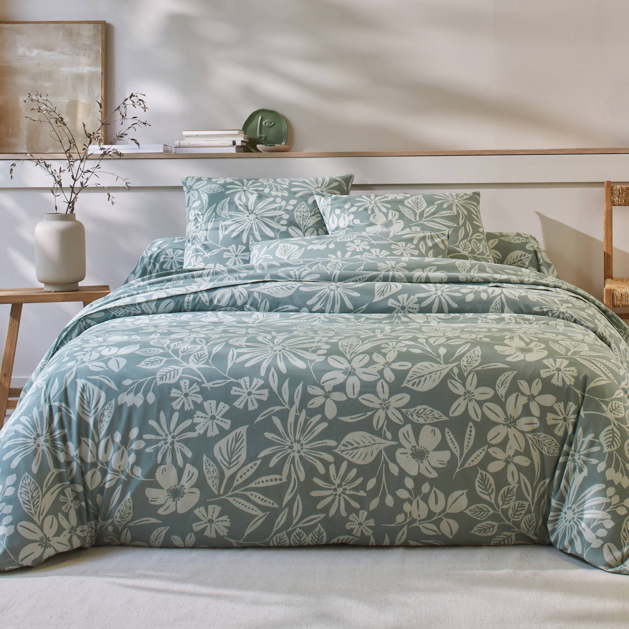 Linge de lit Céline en coton imprimé floral (eucalyptus)