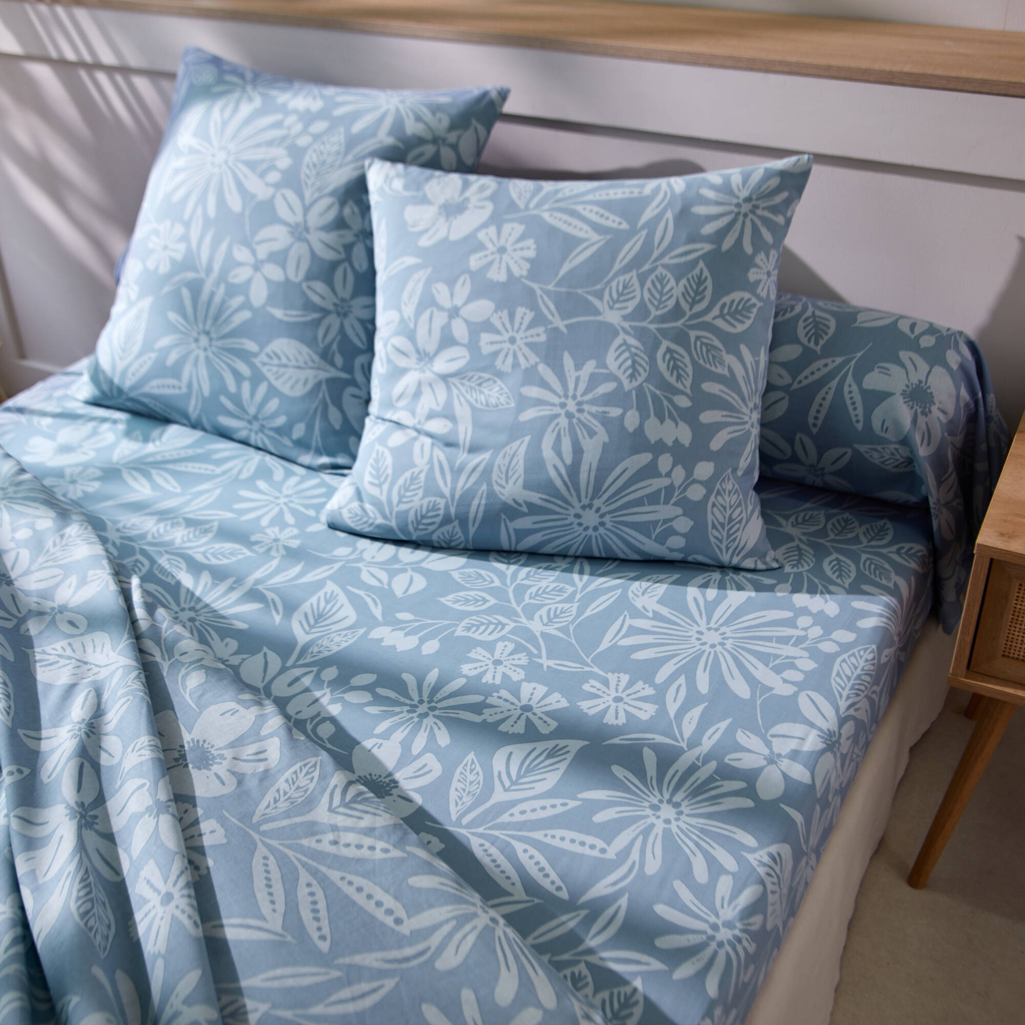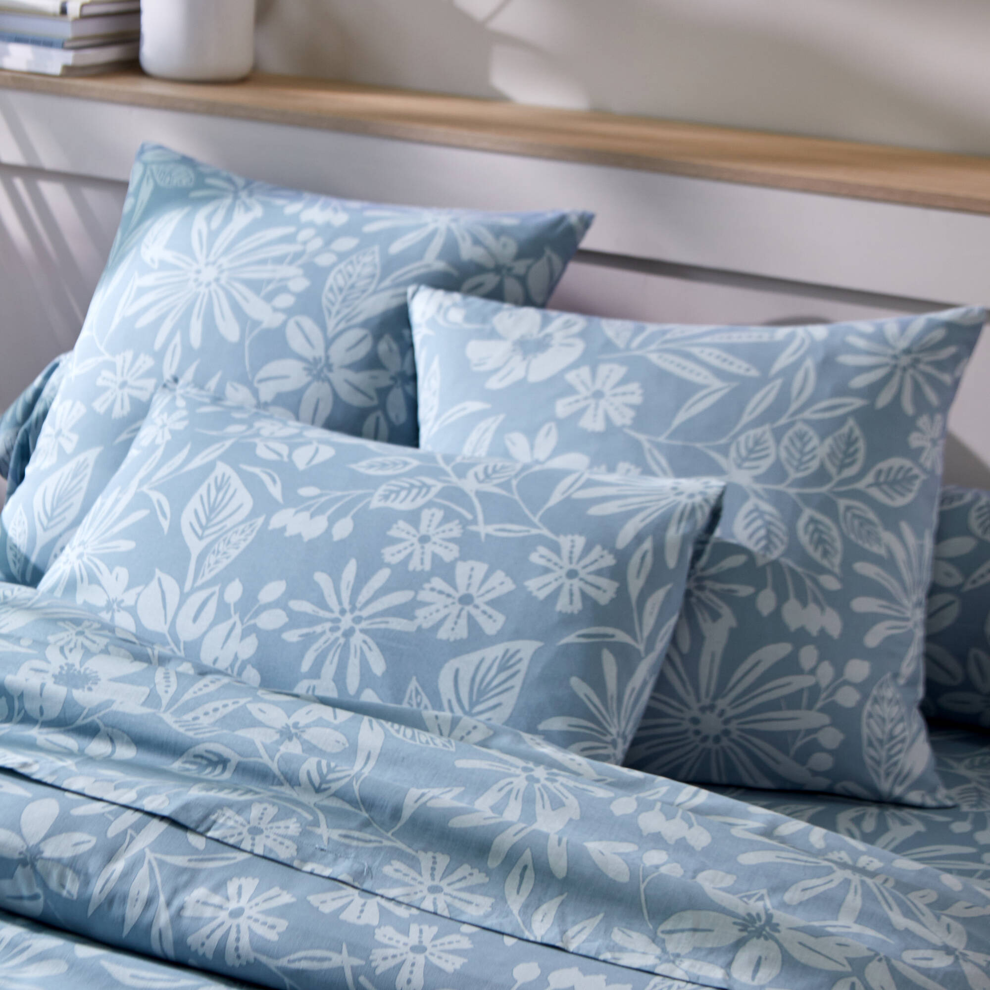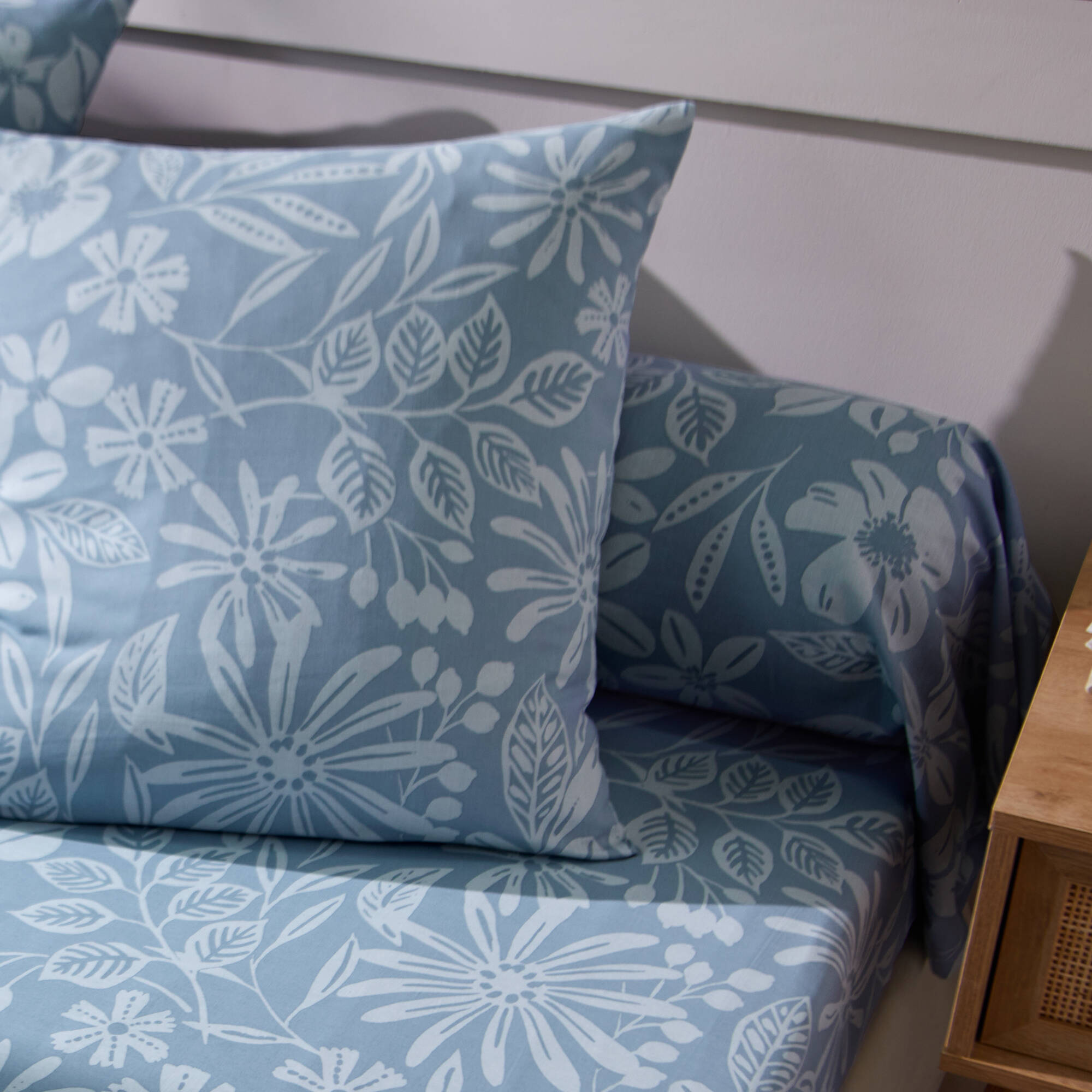 Linge de lit Céline en coton imprimé floral (bleu grisé)