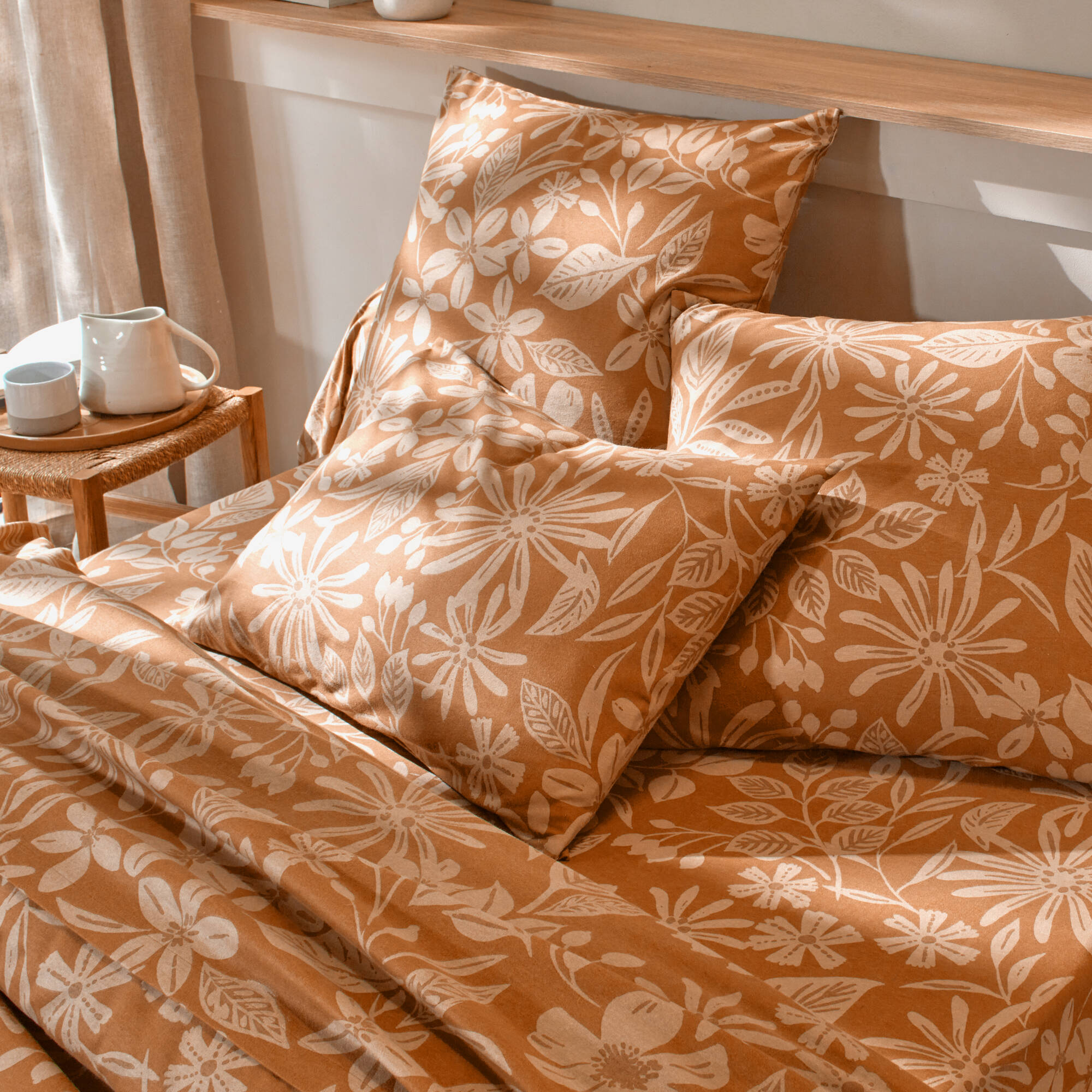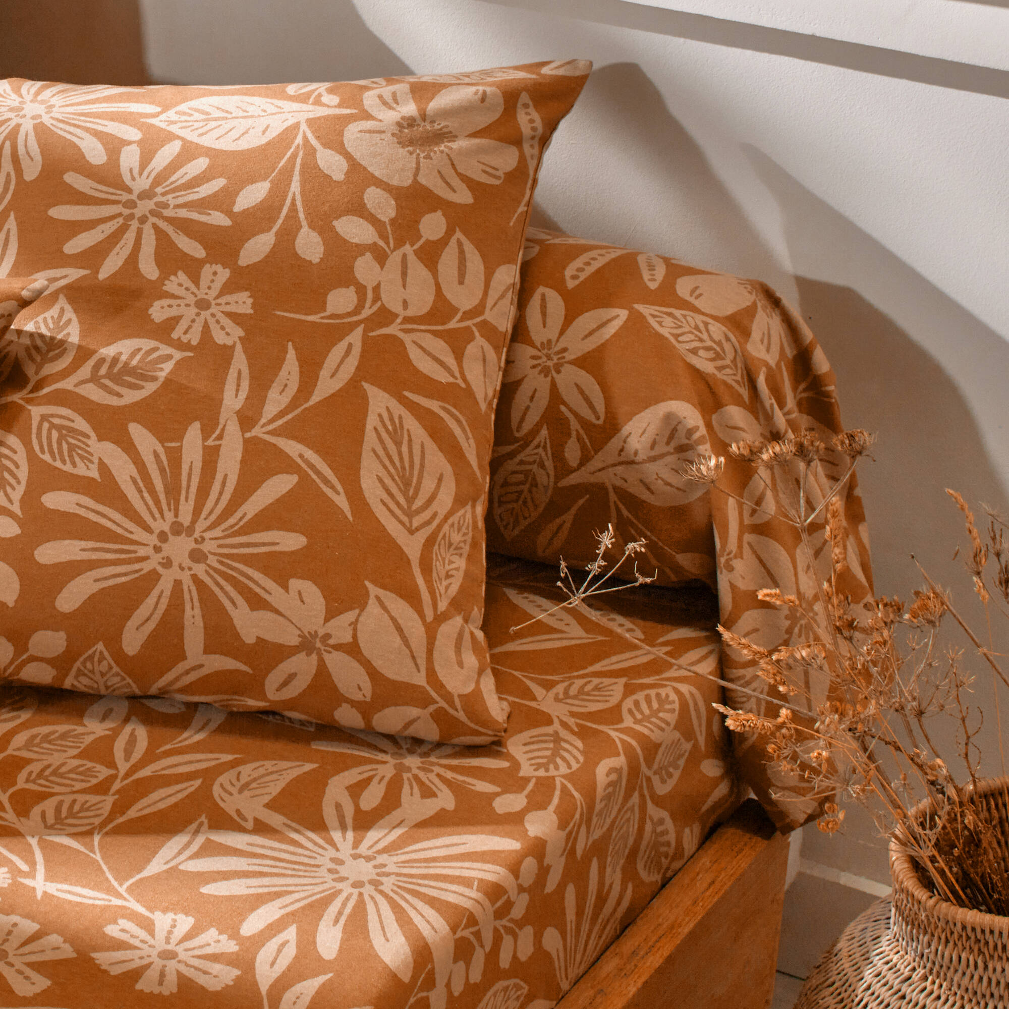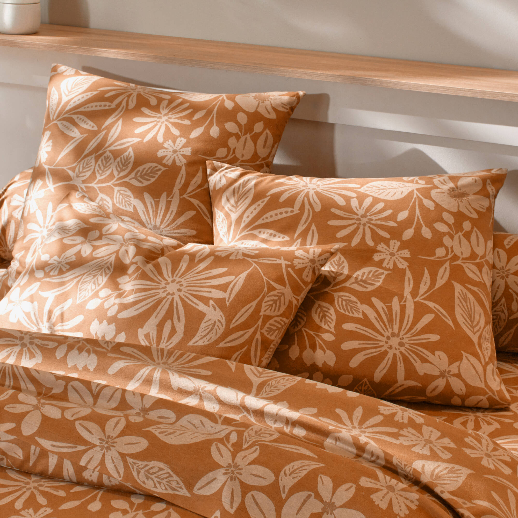 Linge de lit Céline en flanelle imprimé floral (caramel)