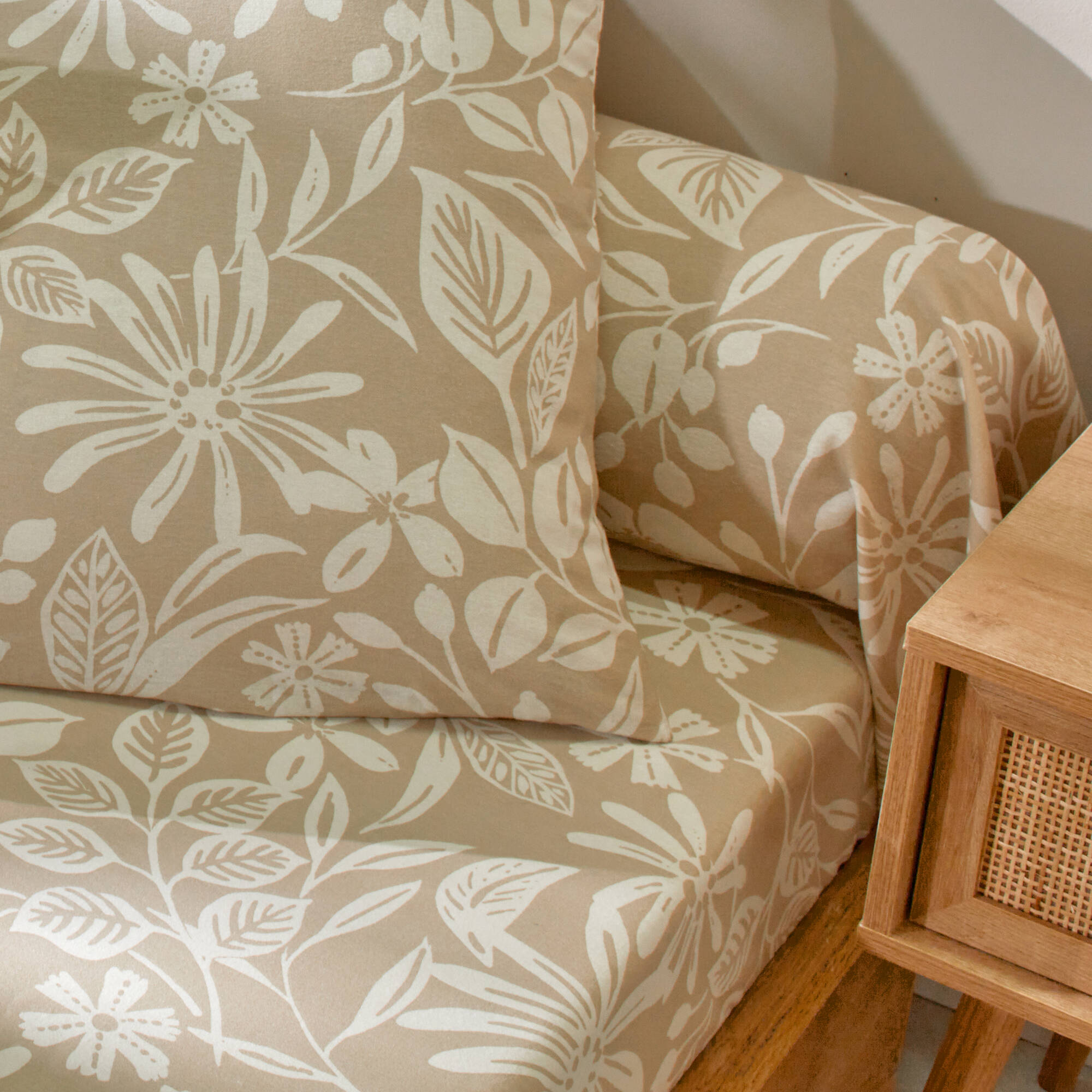 Linge de lit Céline en flanelle imprimé floral (sable)