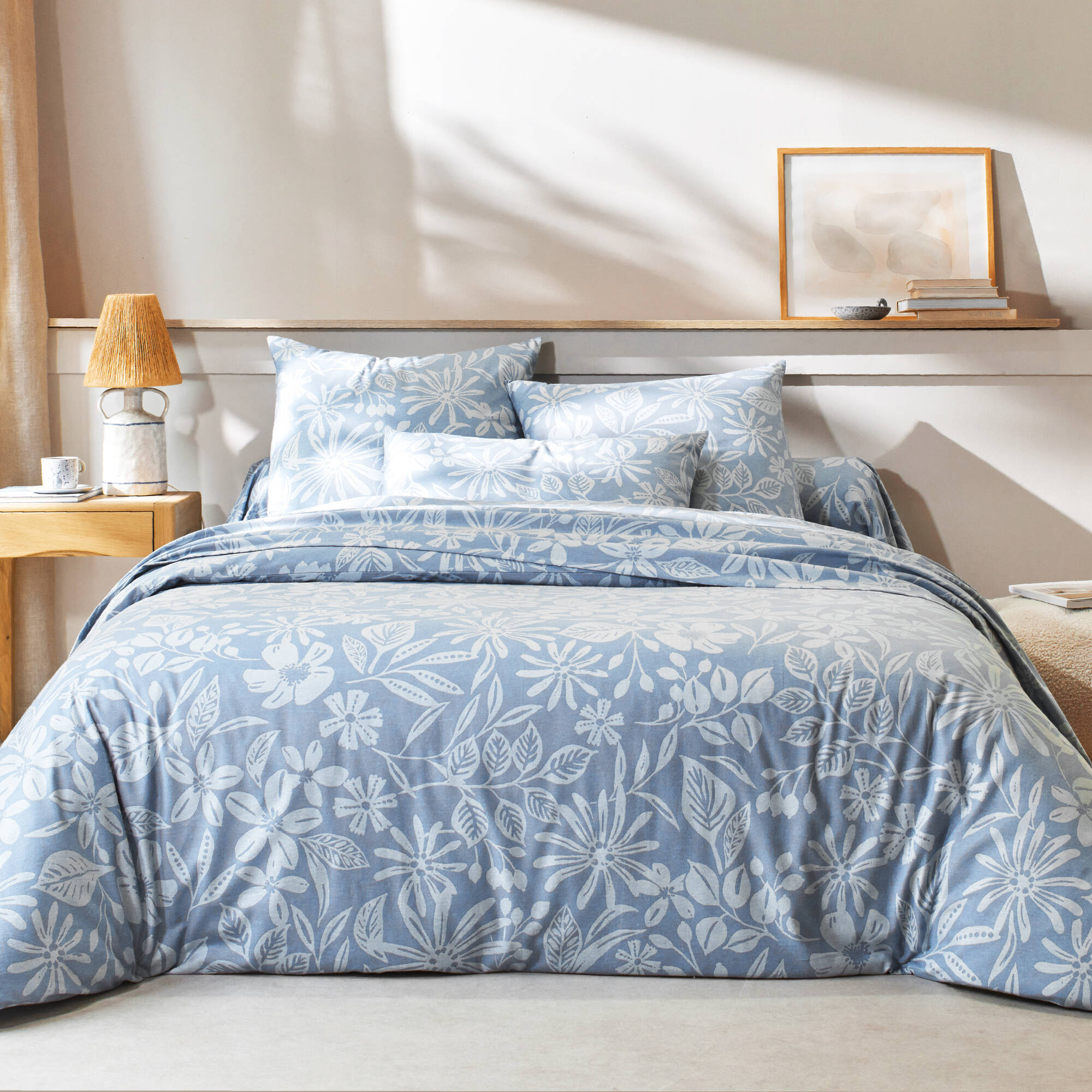 Linge de lit Céline en flanelle imprimé floral (bleu grisé)