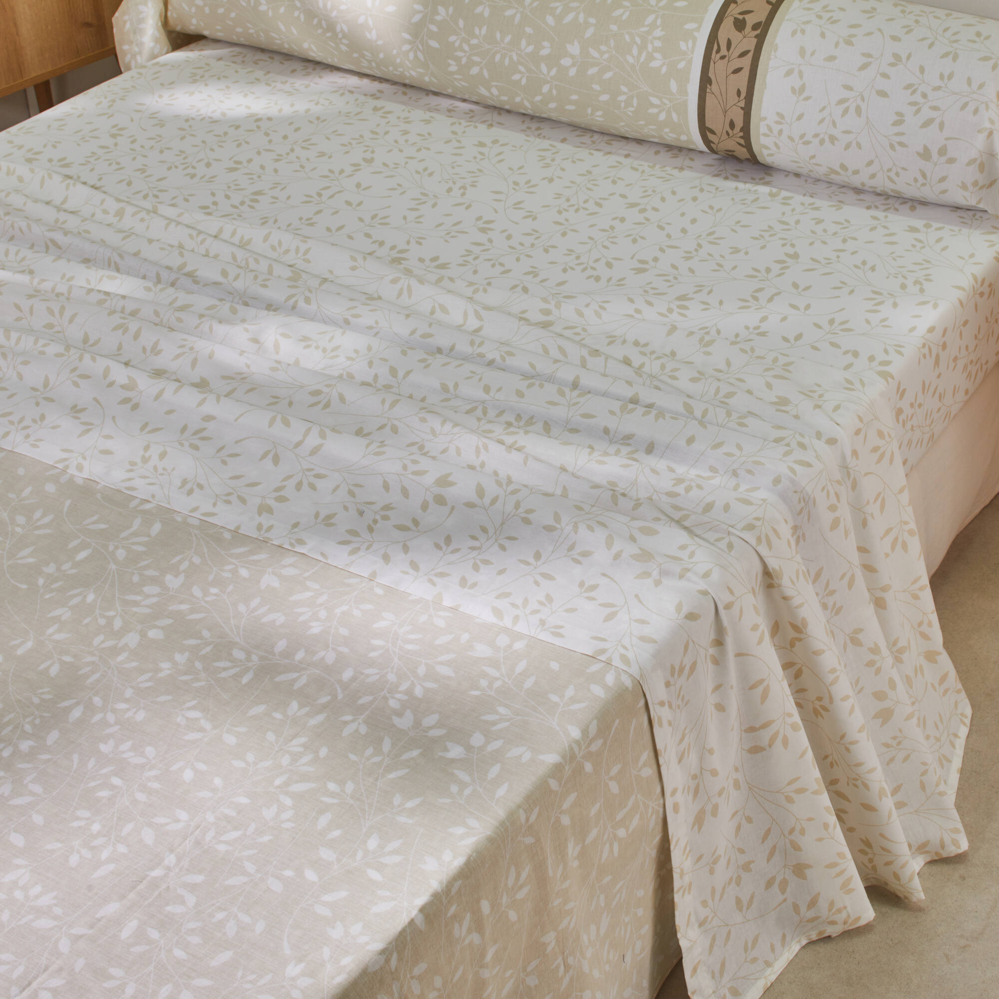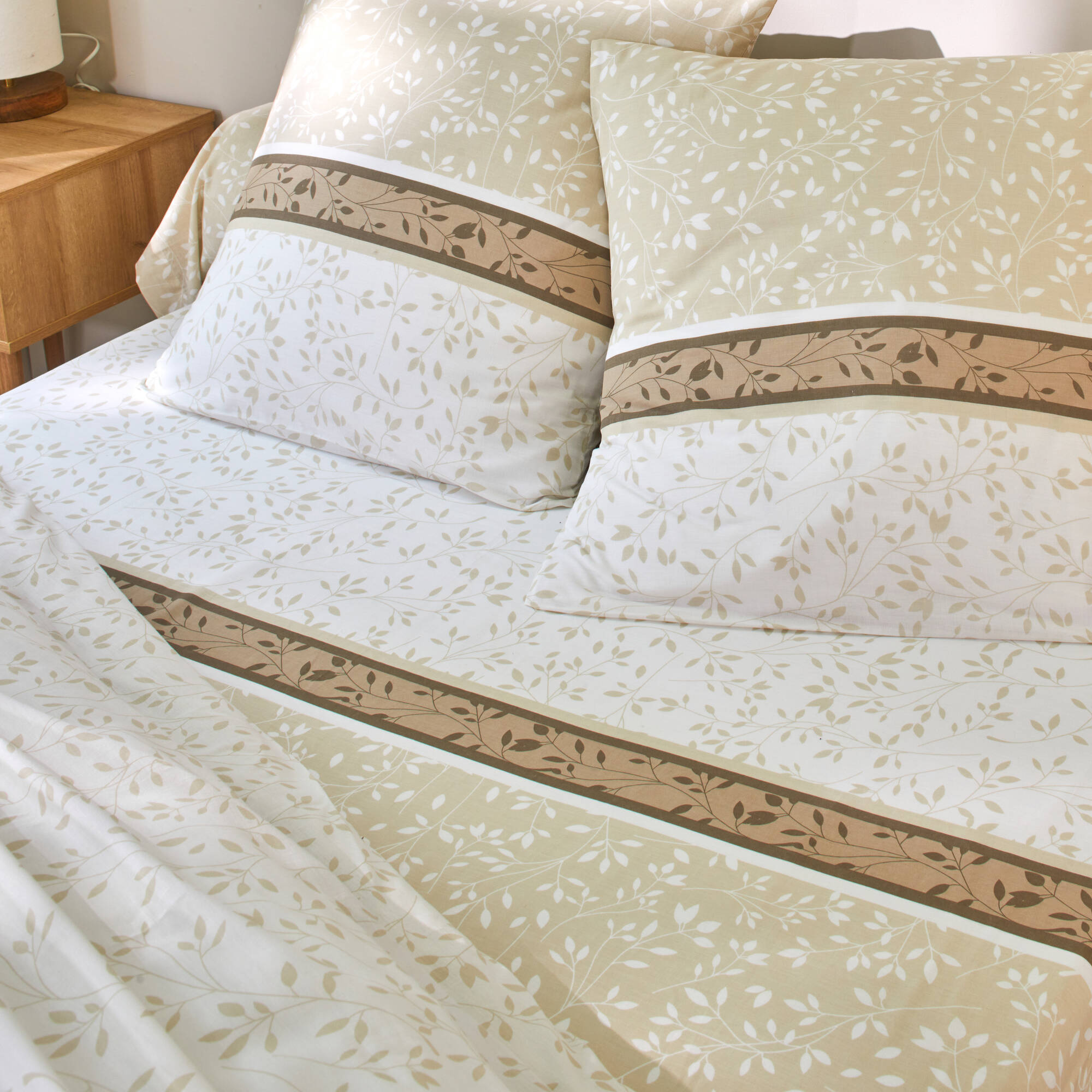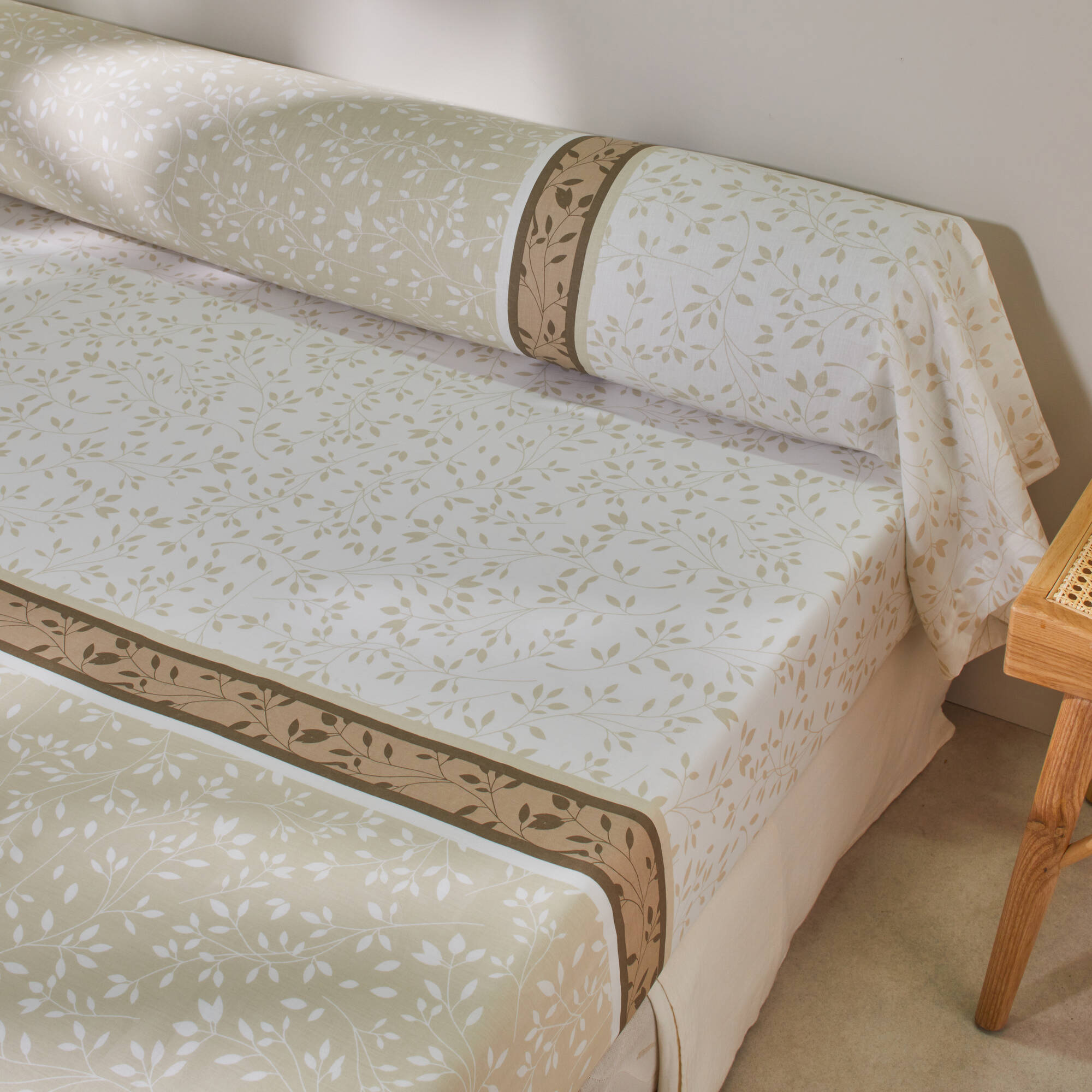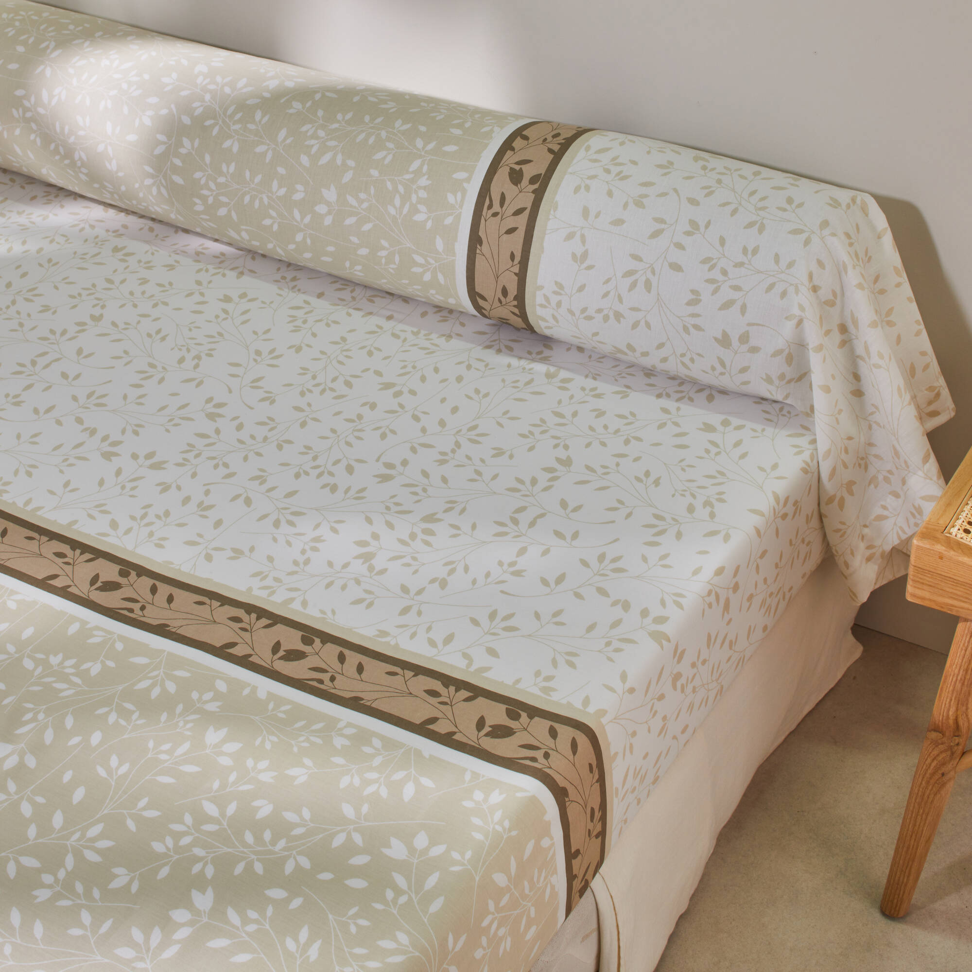 Linge de lit Constance en coton imprimé feuilles (sable)