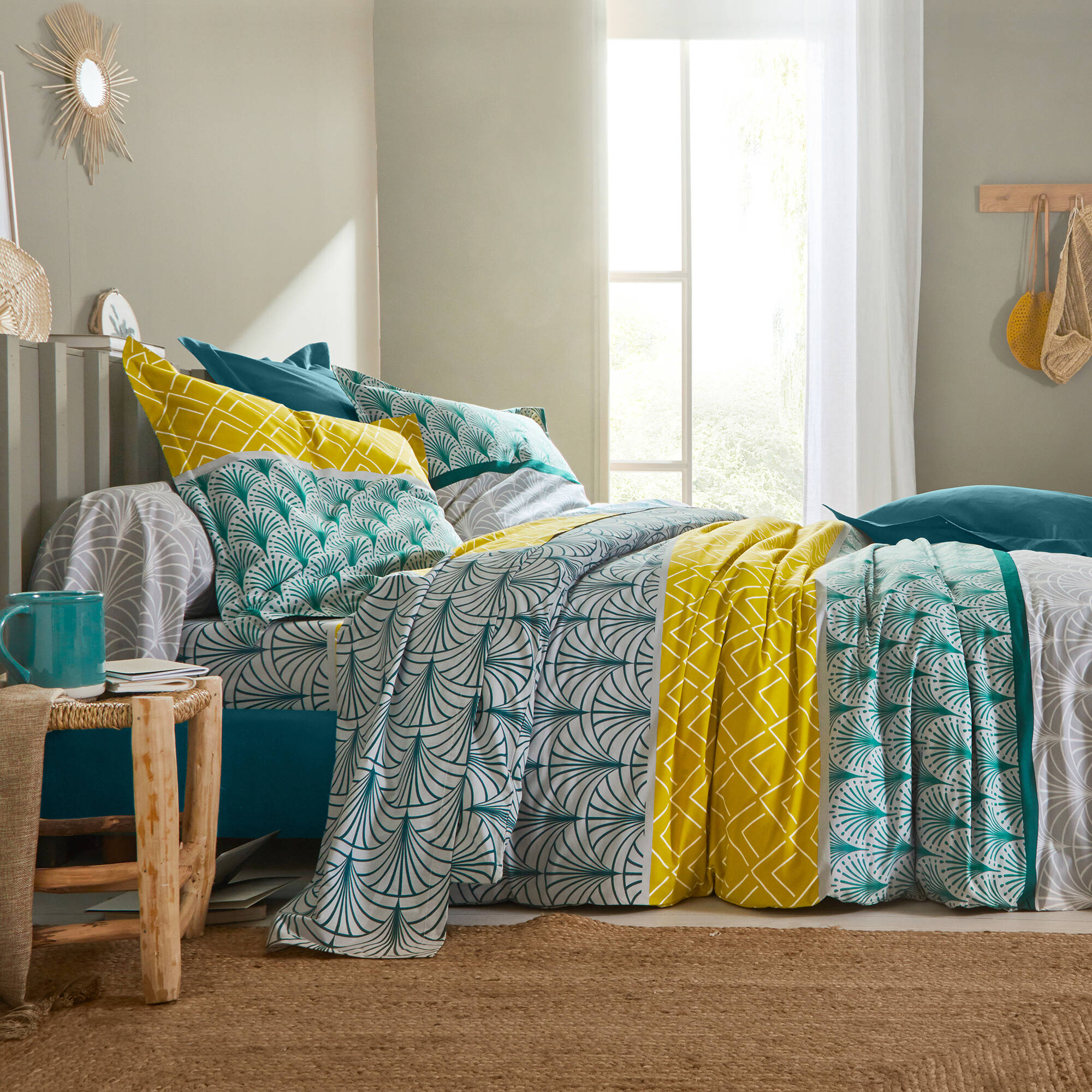 Linge de lit Eddy en coton à motifs graphiques (vert)