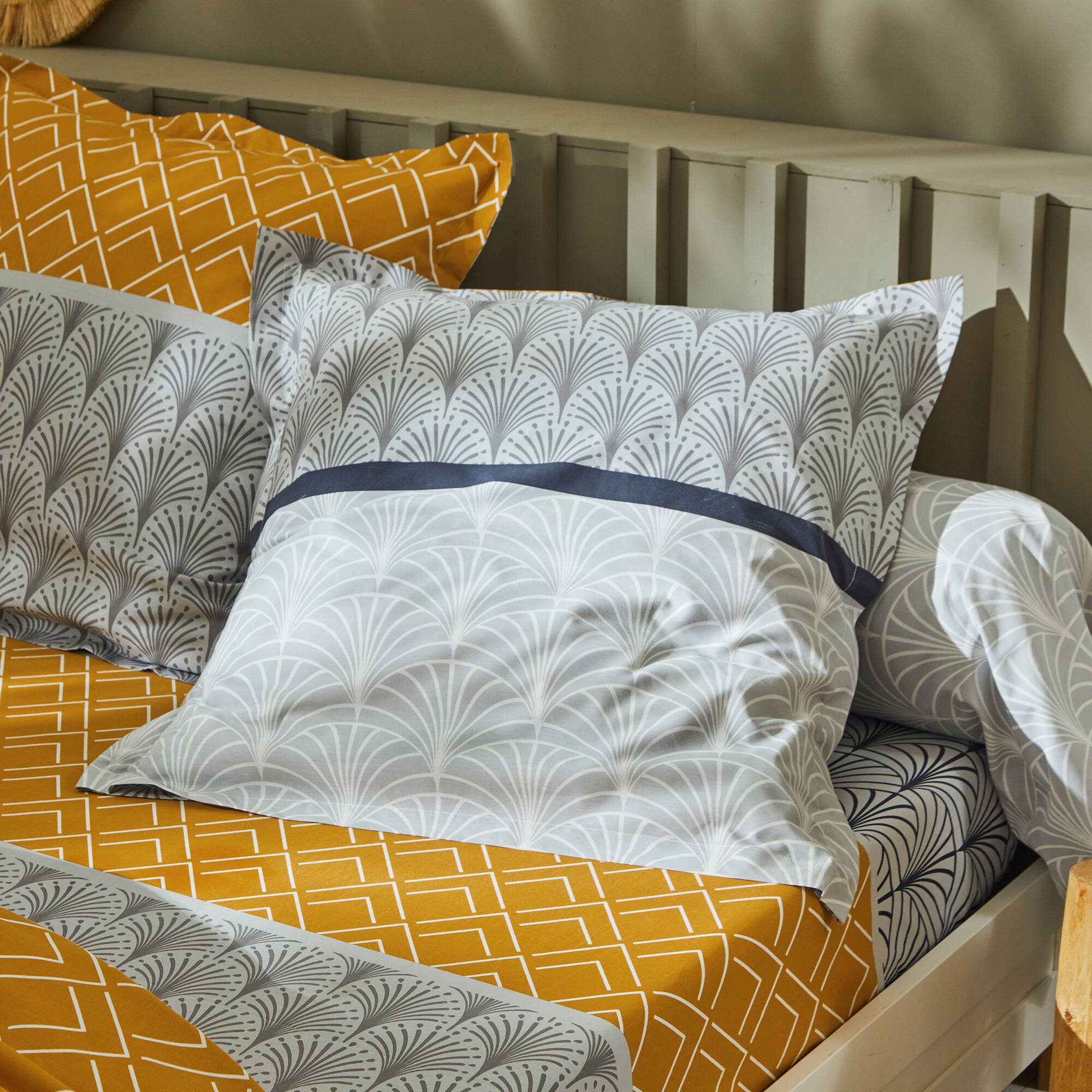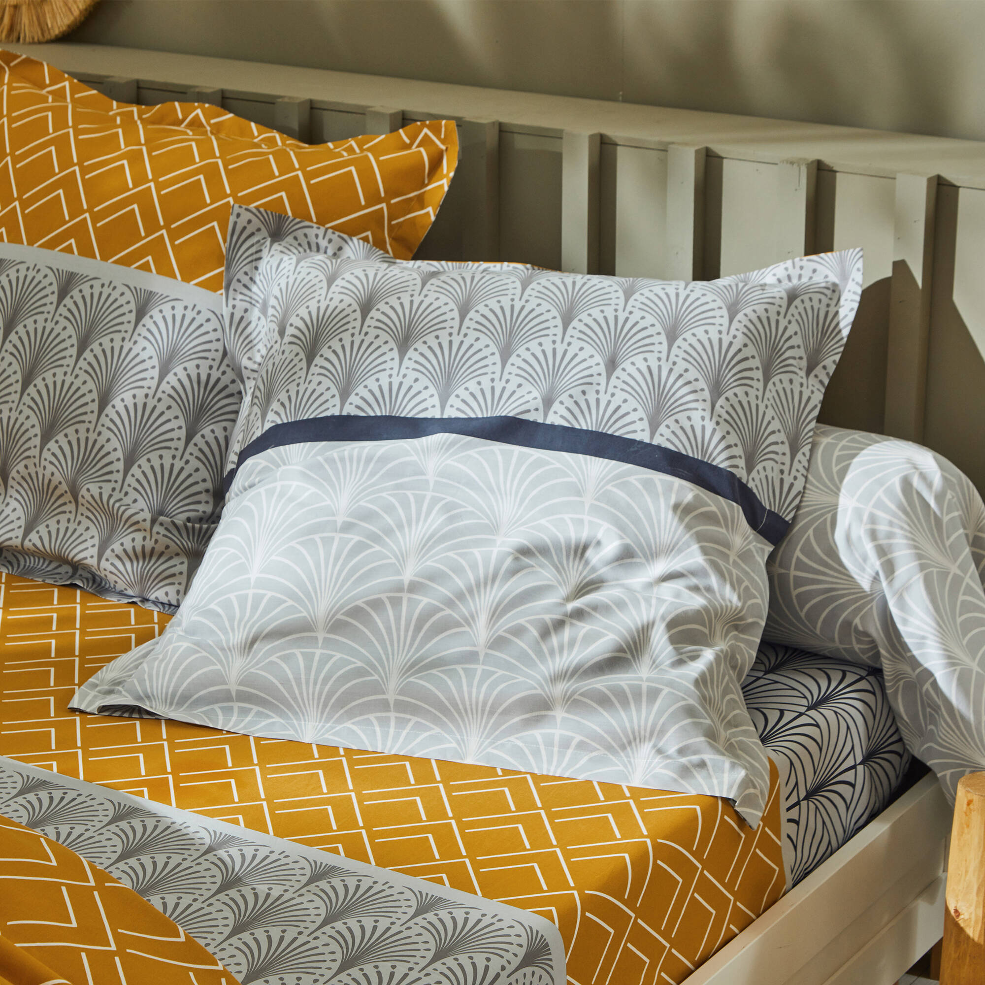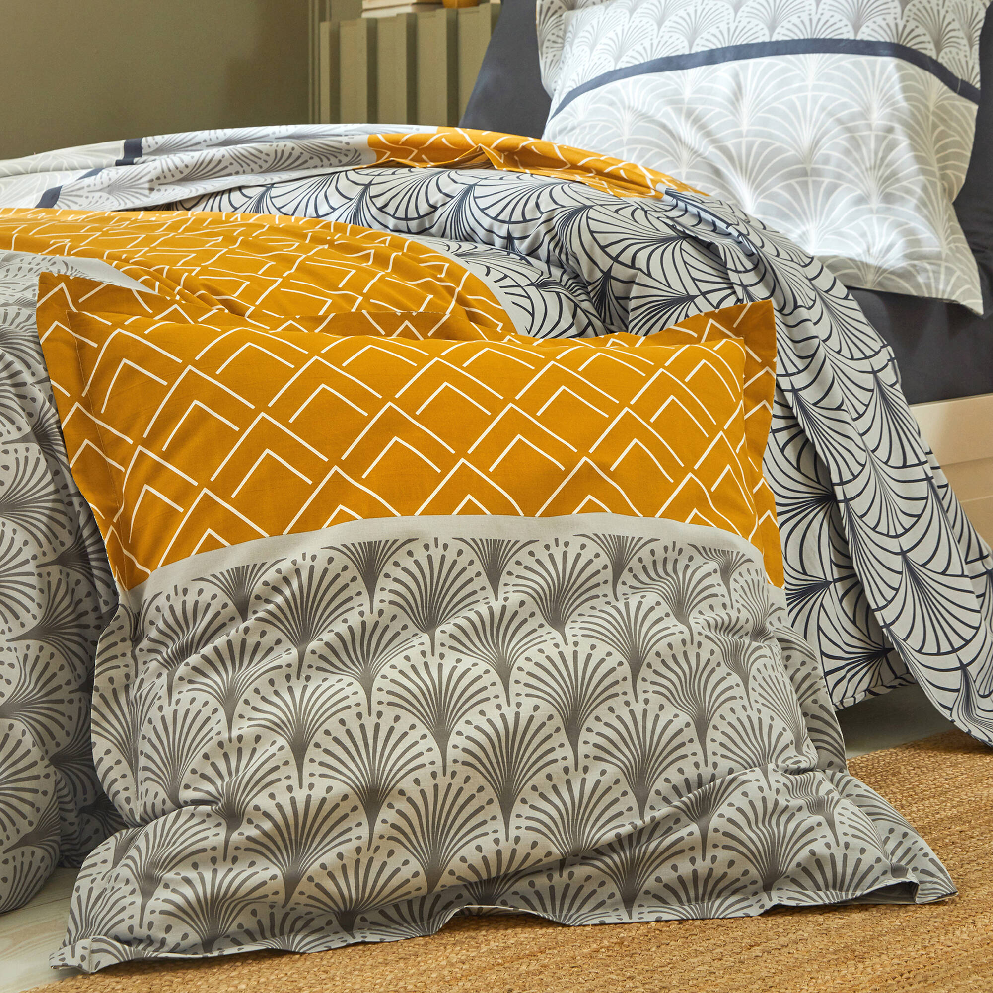 Linge de lit Eddy en coton à motifs graphiques (caramel)