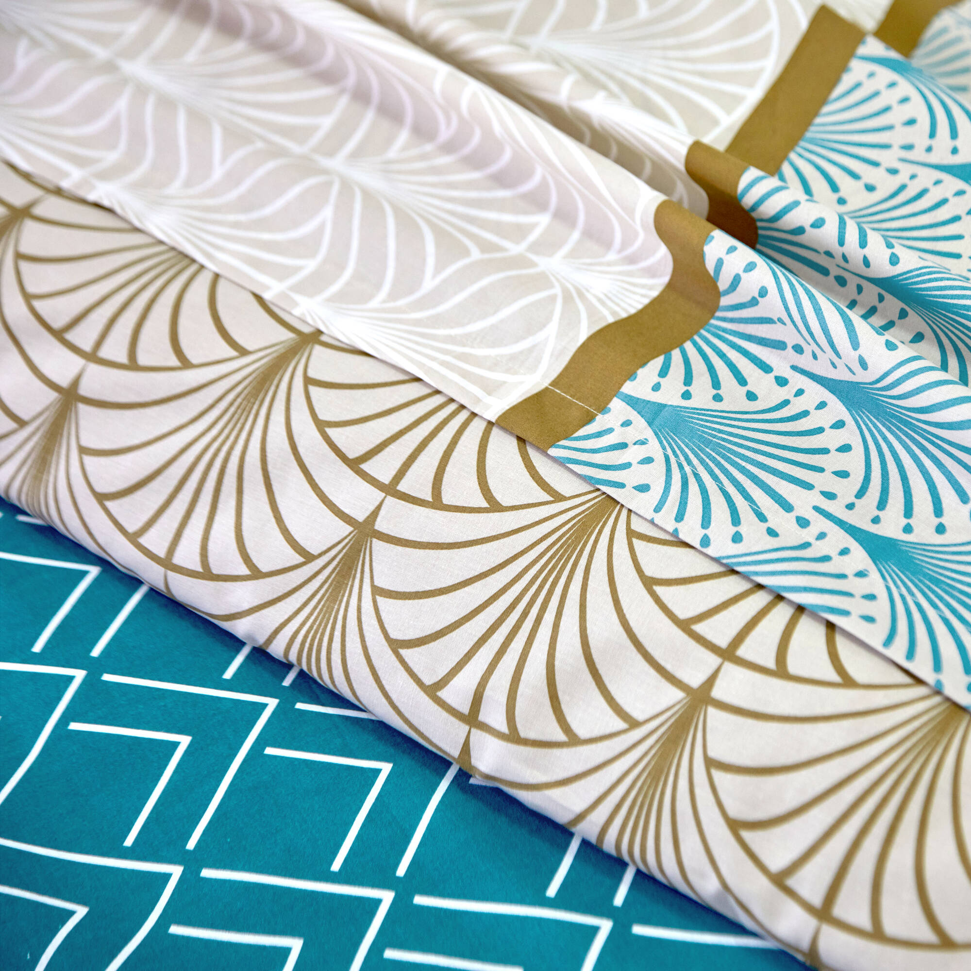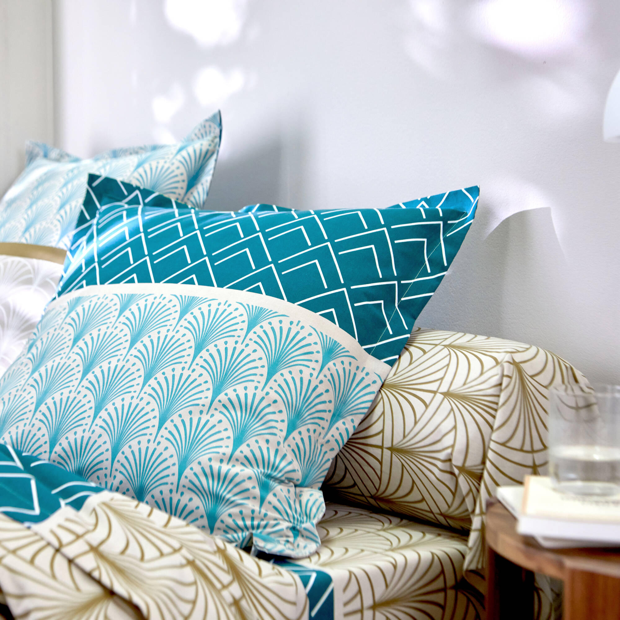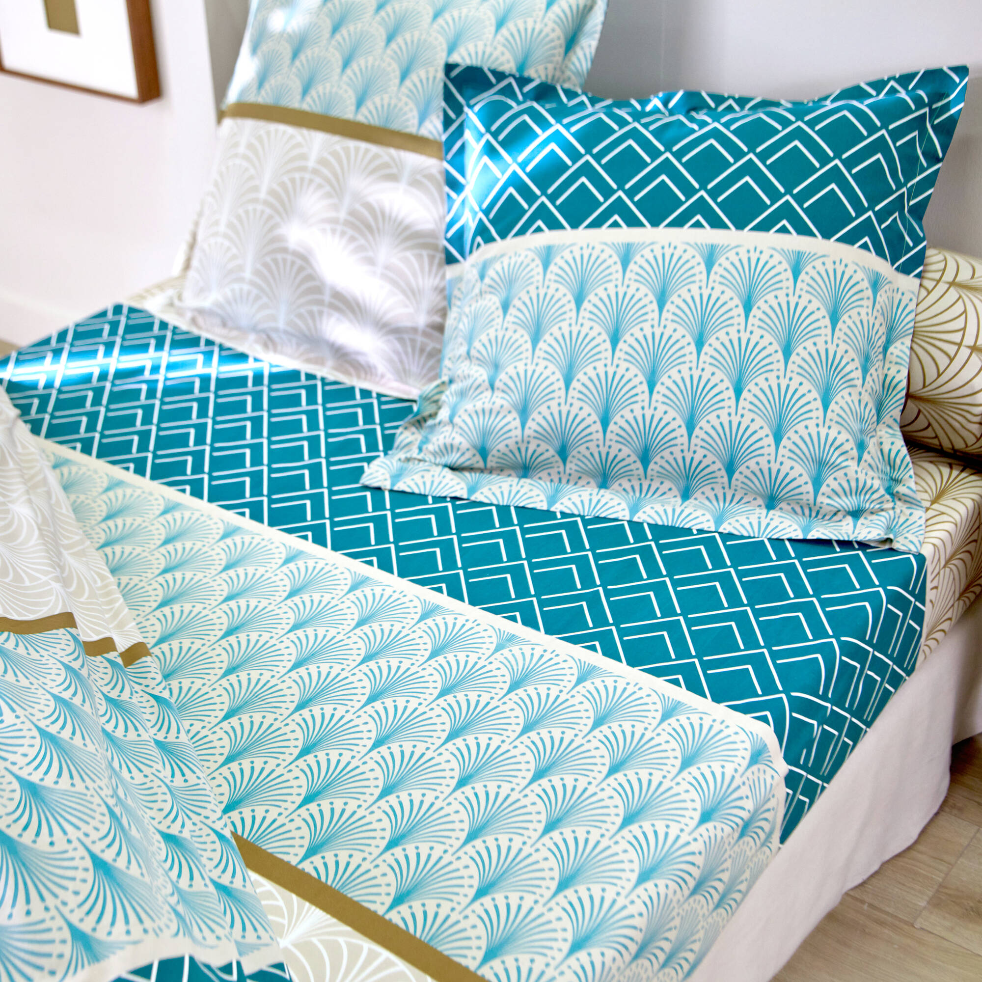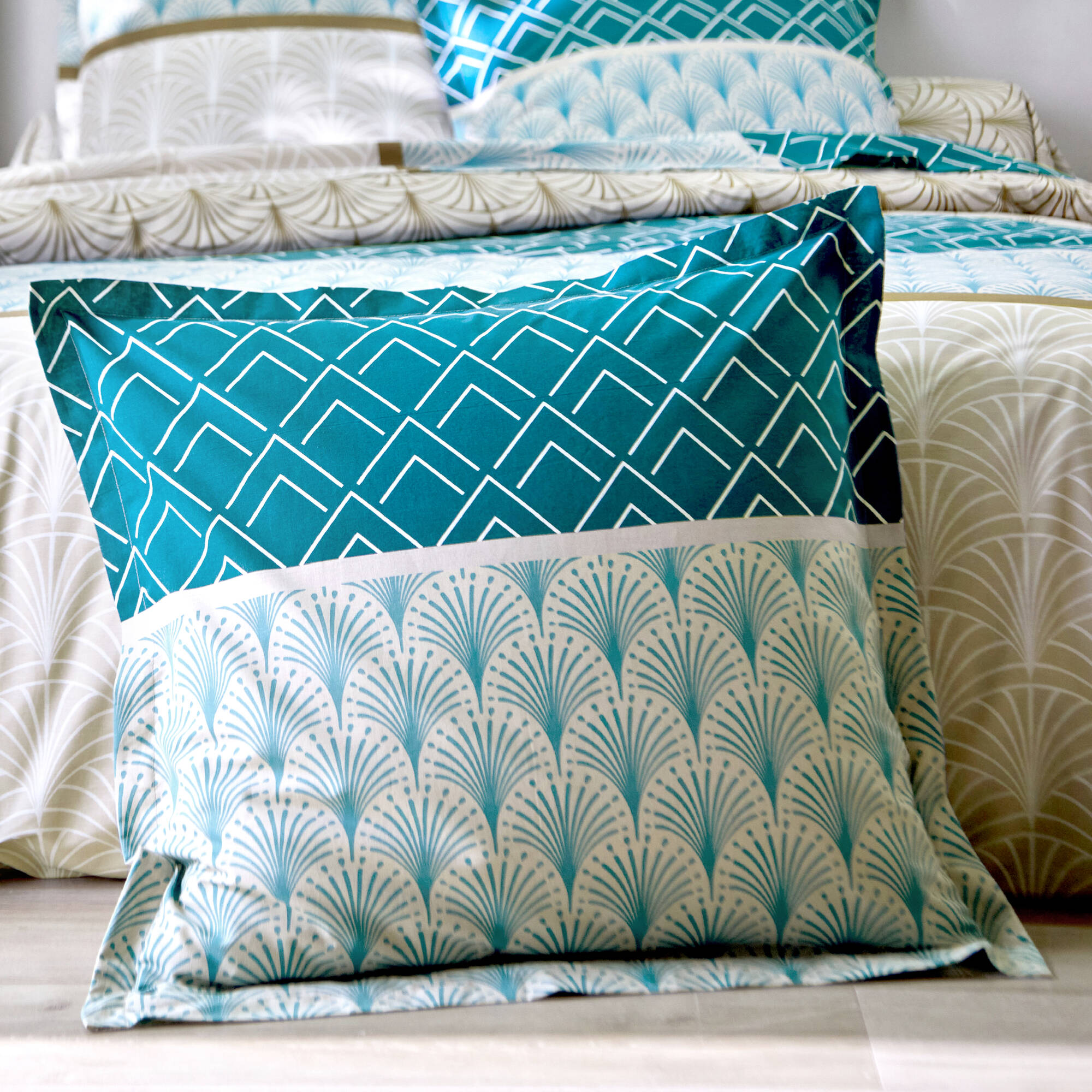 Linge de lit Eddy en coton à motifs graphiques (bleu paon)