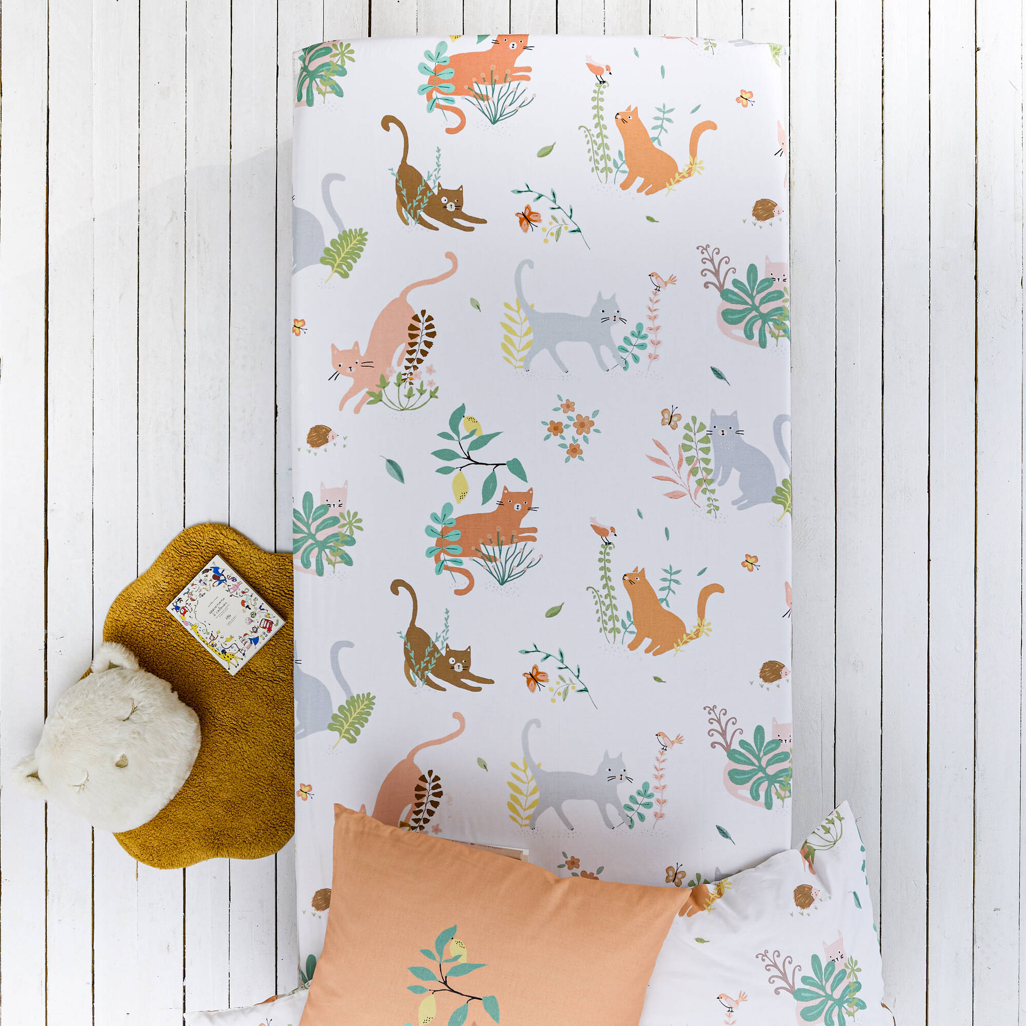 Linge de lit enfant Chafou imprimé chats - coton  (blanc)