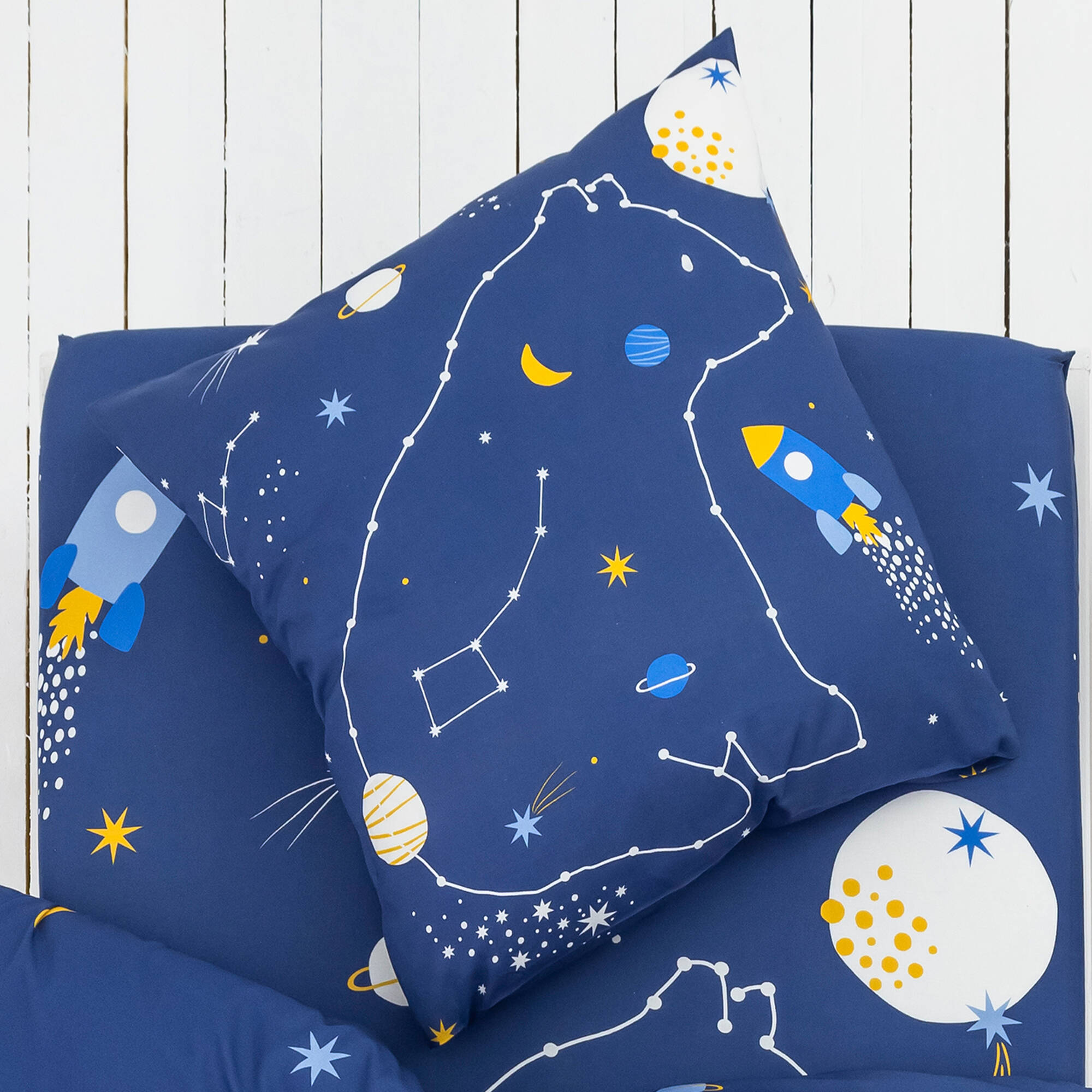 Linge de lit enfant imprimé Voie lactée - coton (marine)