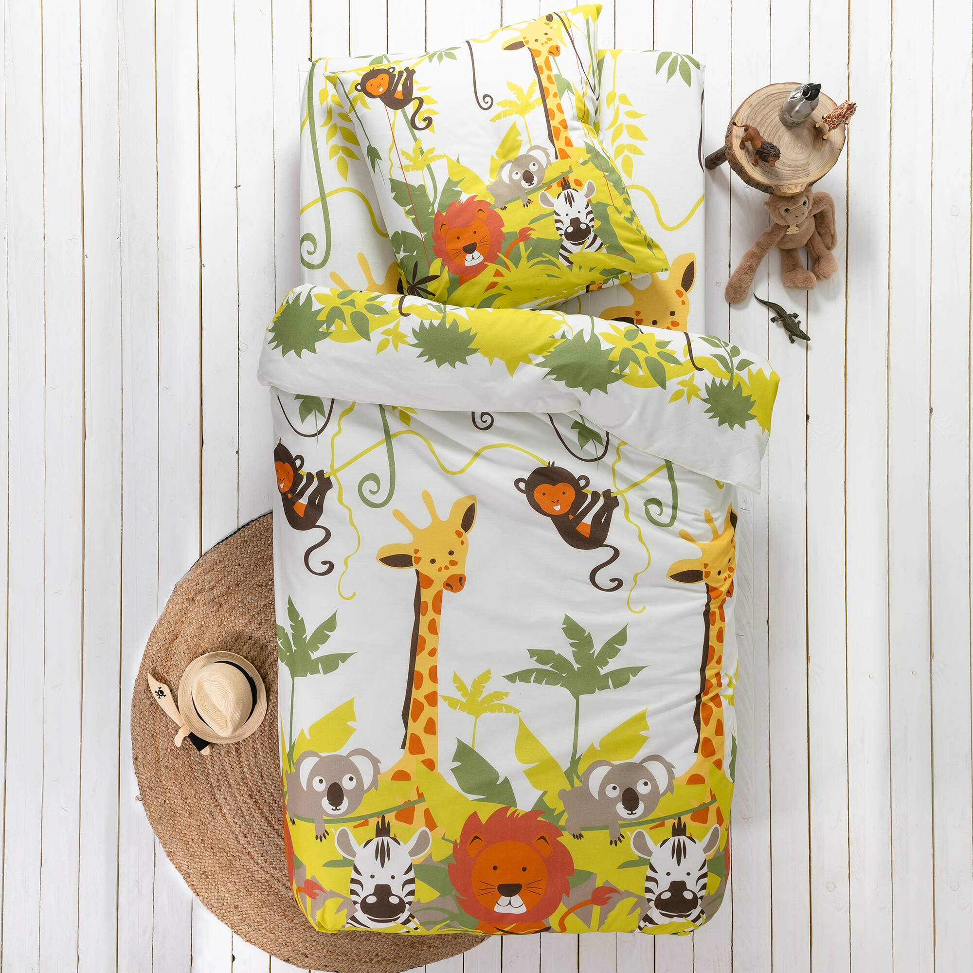 Linge de lit enfant Jungle imprimé animaux 1 personne - coton
