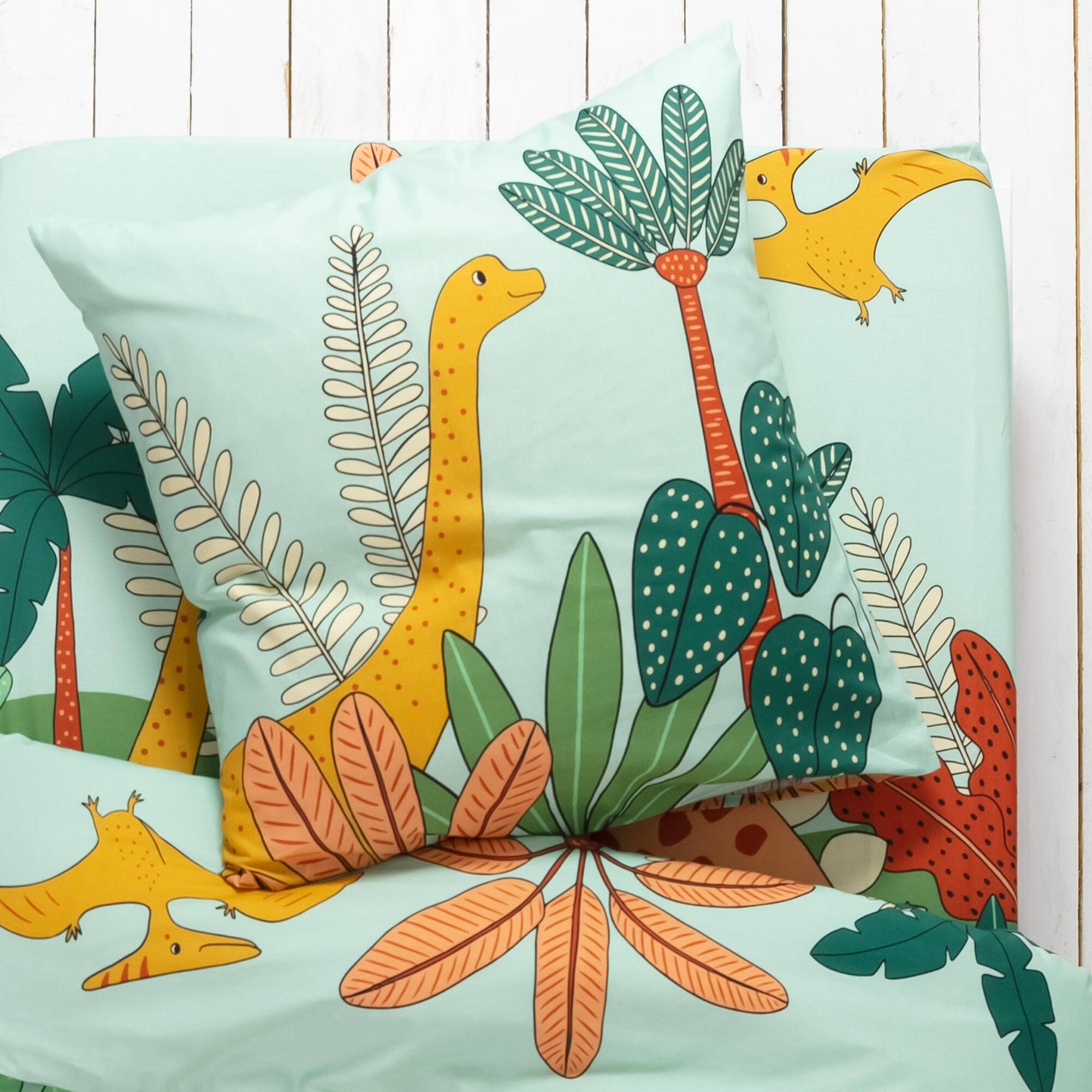 Linge de lit enfant Jurassi coton - Imprimé dinosaure  (vert)