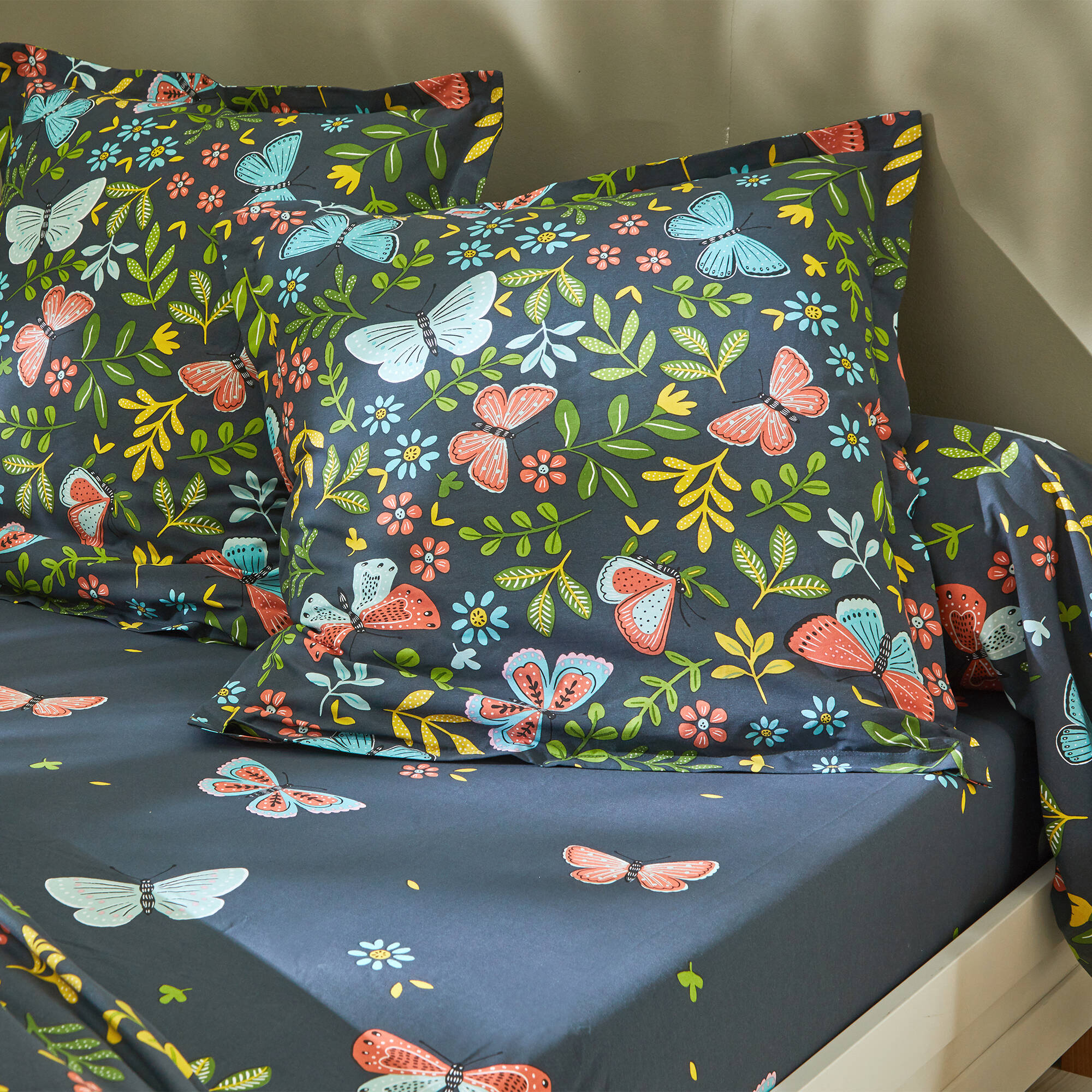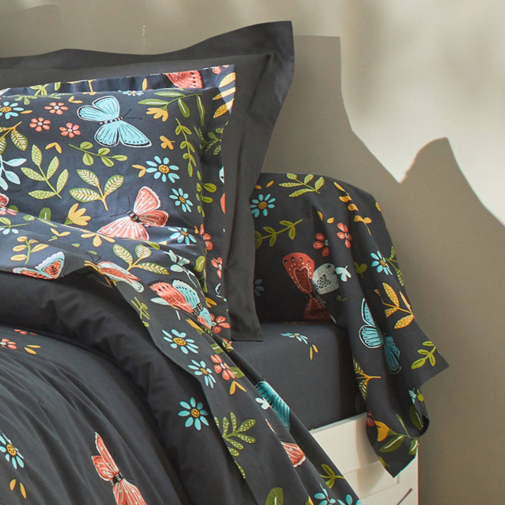Linge de lit Envolée en coton à motifs papillons