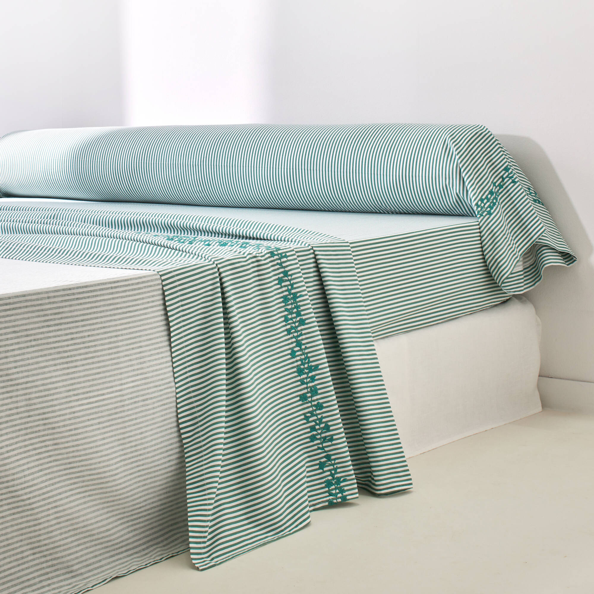 Linge de lit Faustine en coton imprimé (vert)