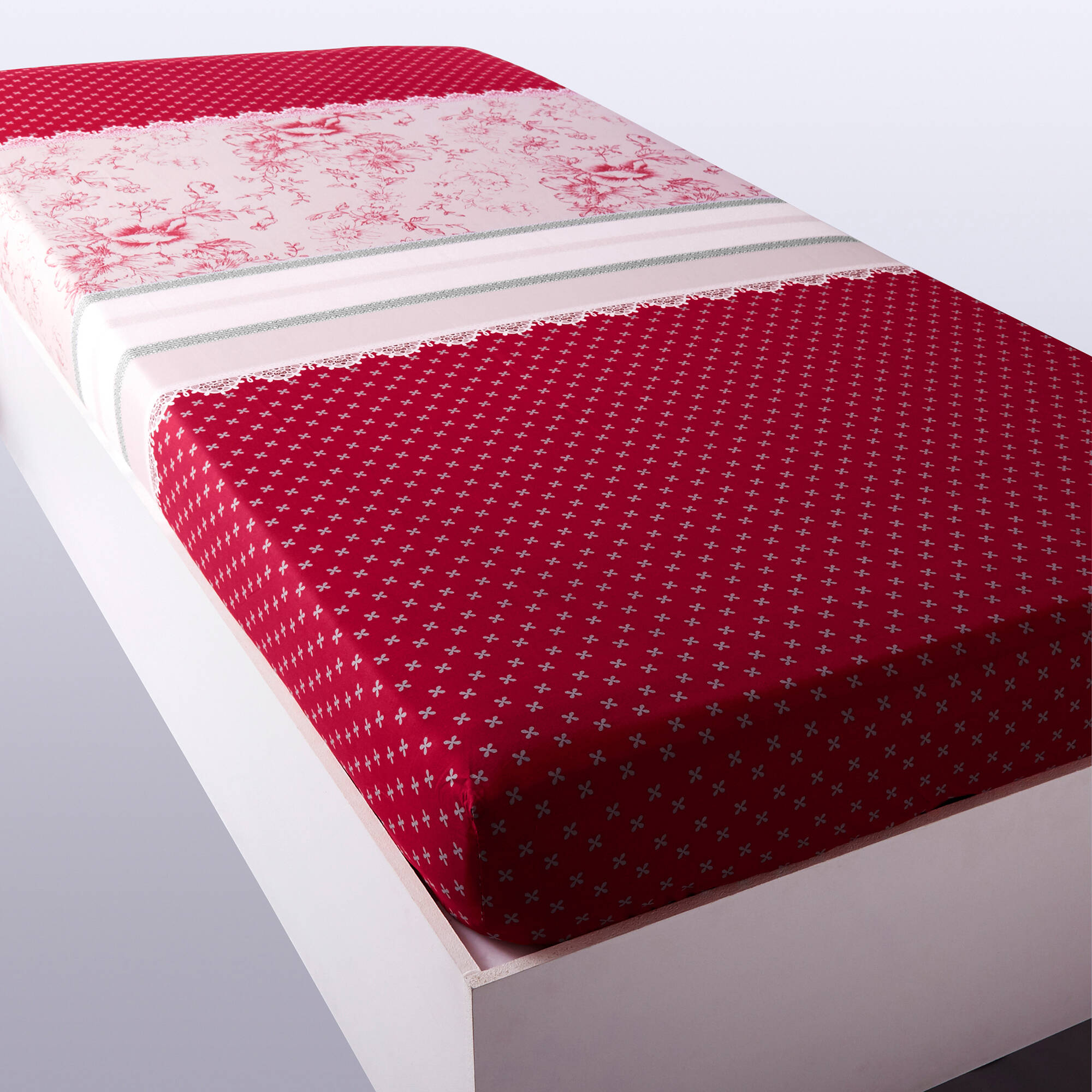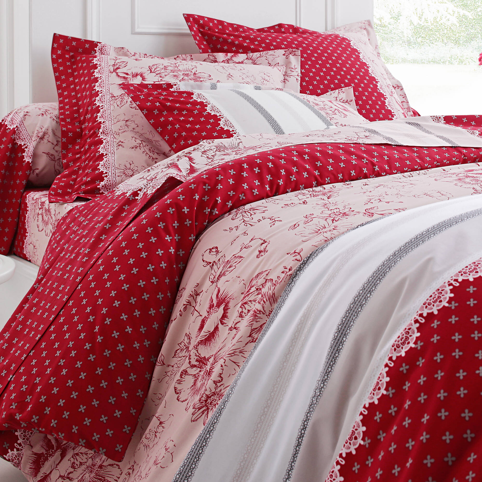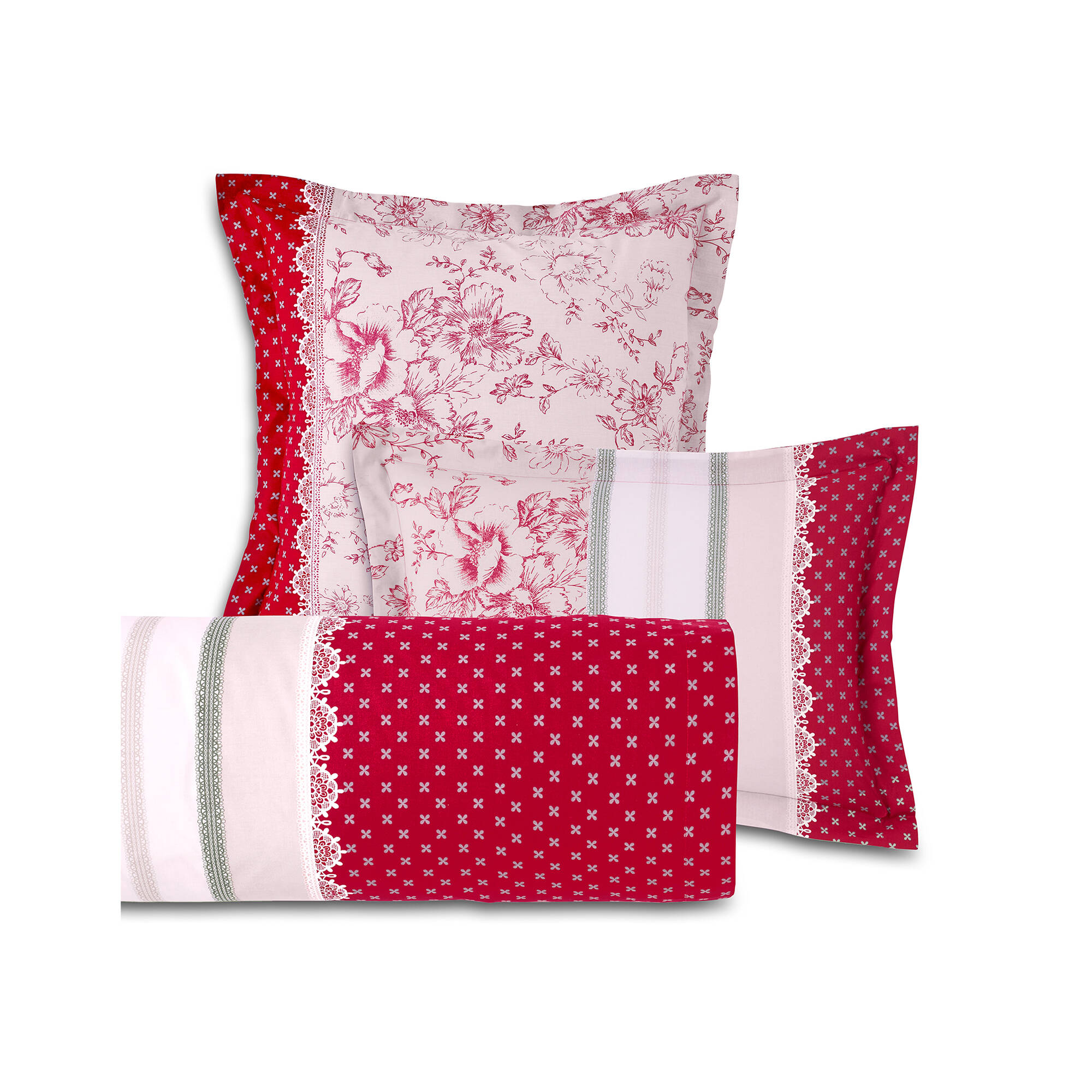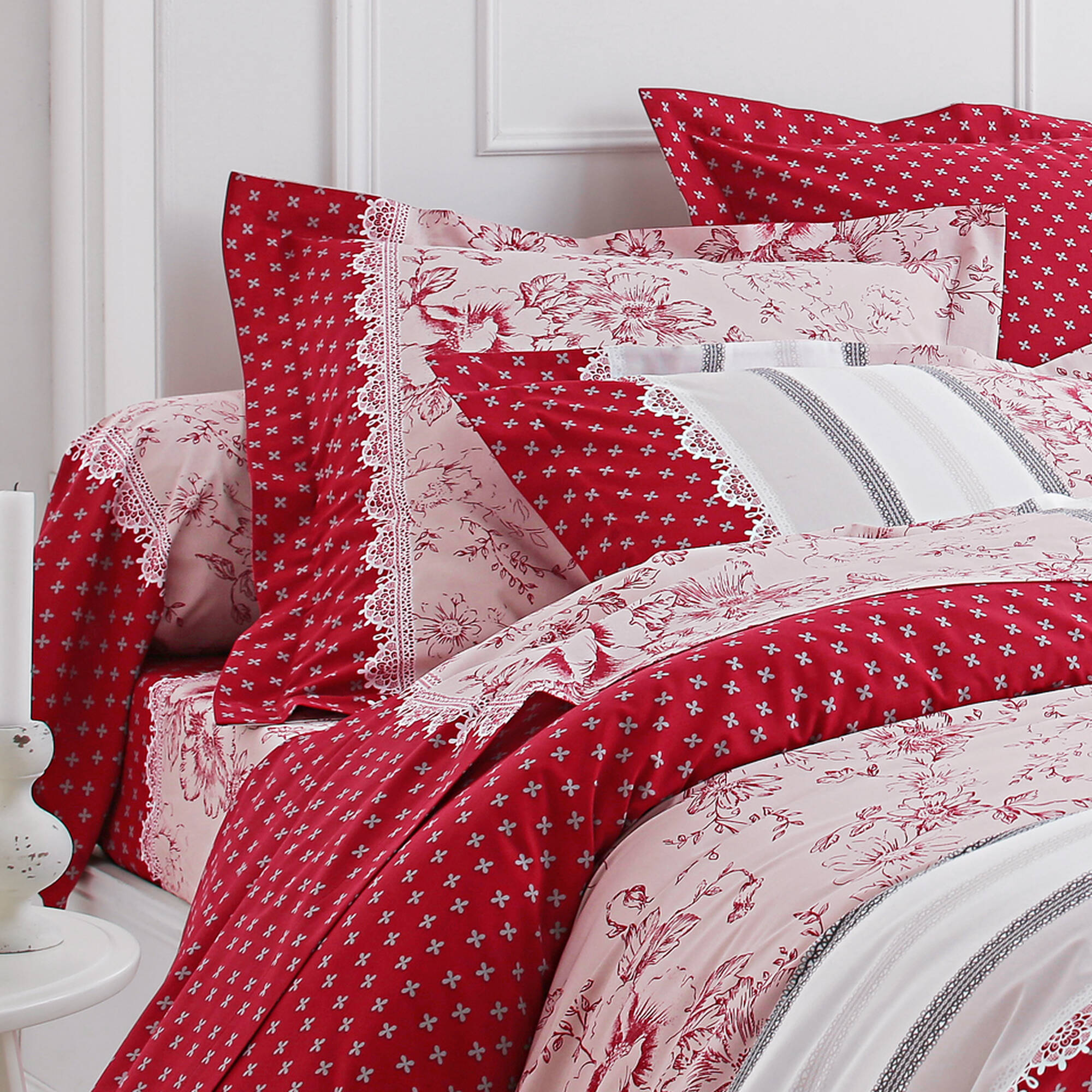 Linge de lit Gabrielle flanelle, imprimé fleurs et dentelle (rouge)