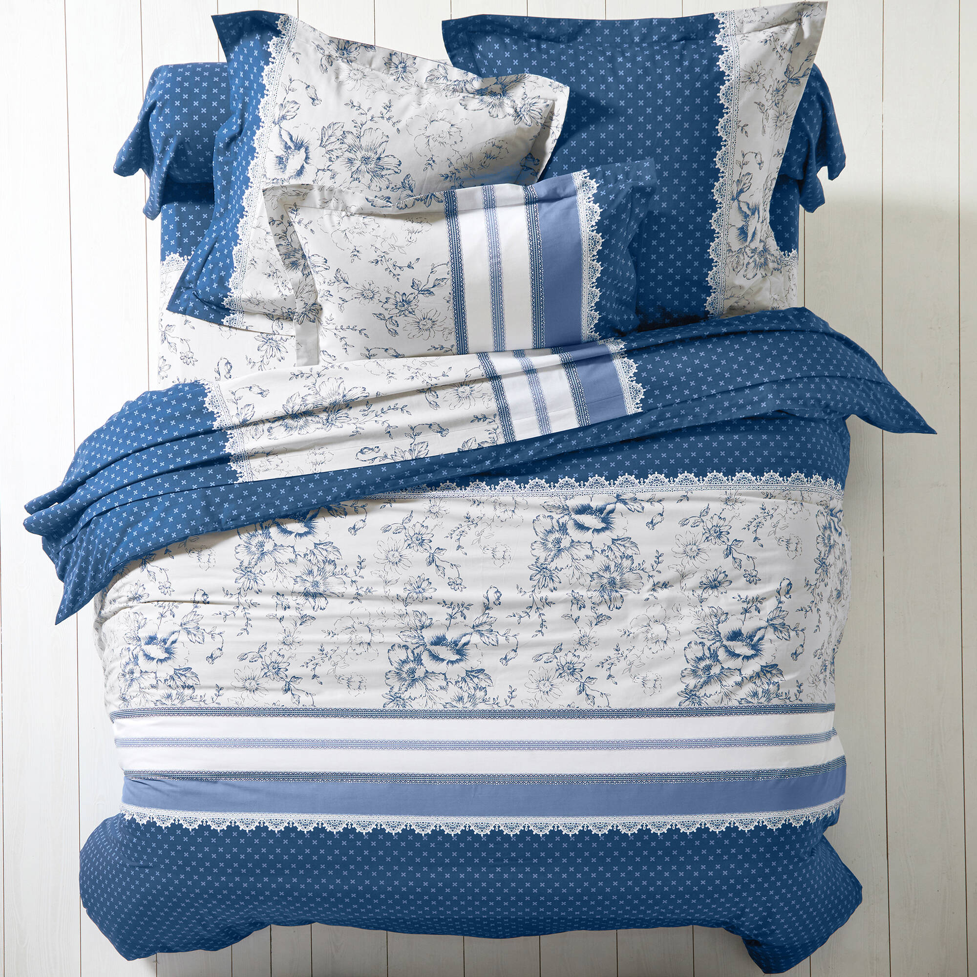 Linge de lit Gabrielle flanelle, imprimé fleurs et dentelle (bleu marine)