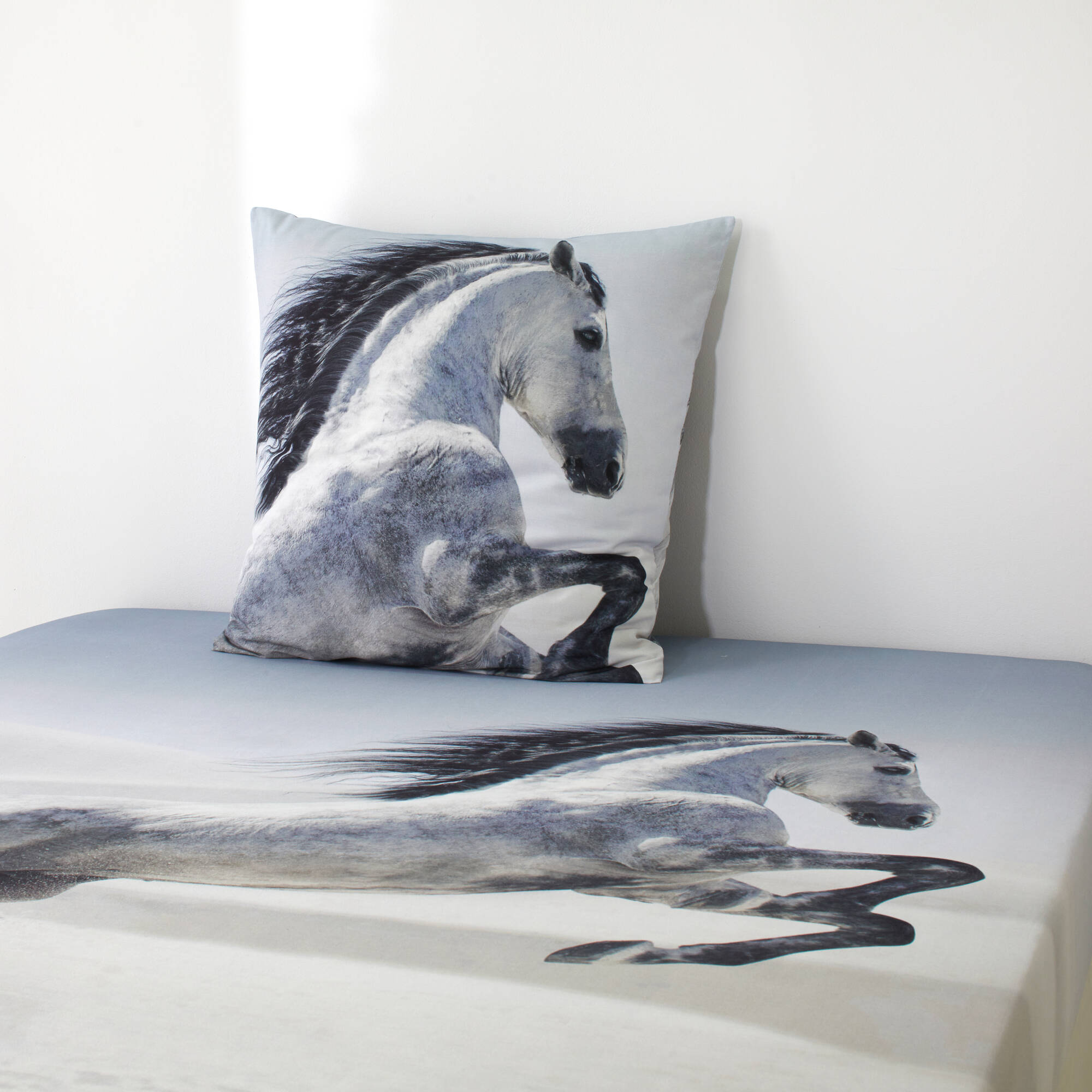 Linge de lit Galop imprimé chevaux, coton (beige)