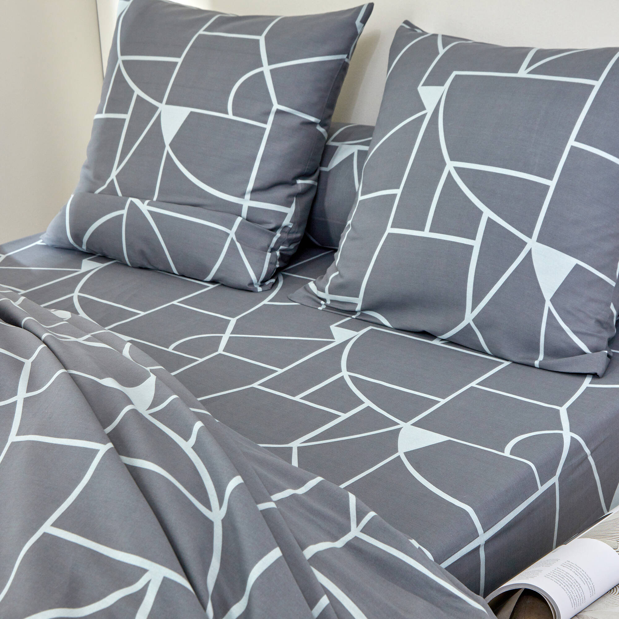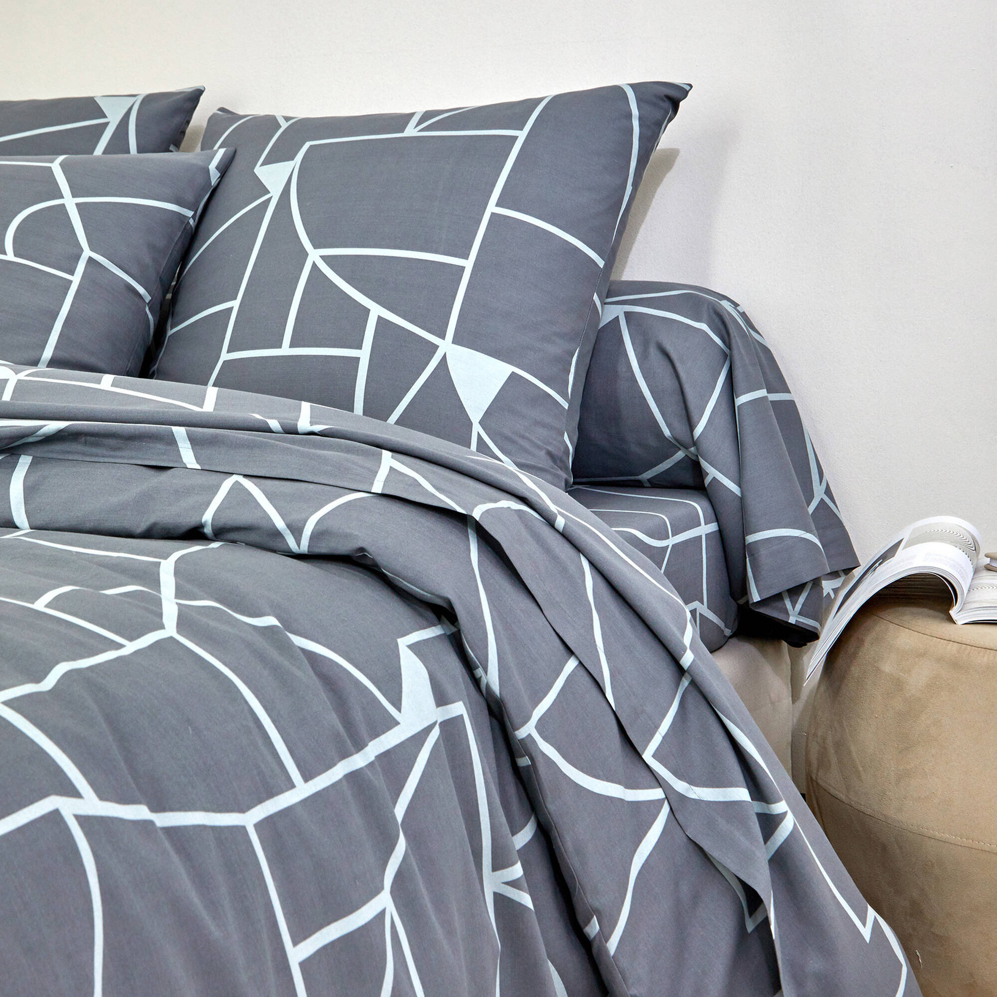 Linge de lit Geoffroy en coton à motifs graphiques (gris)