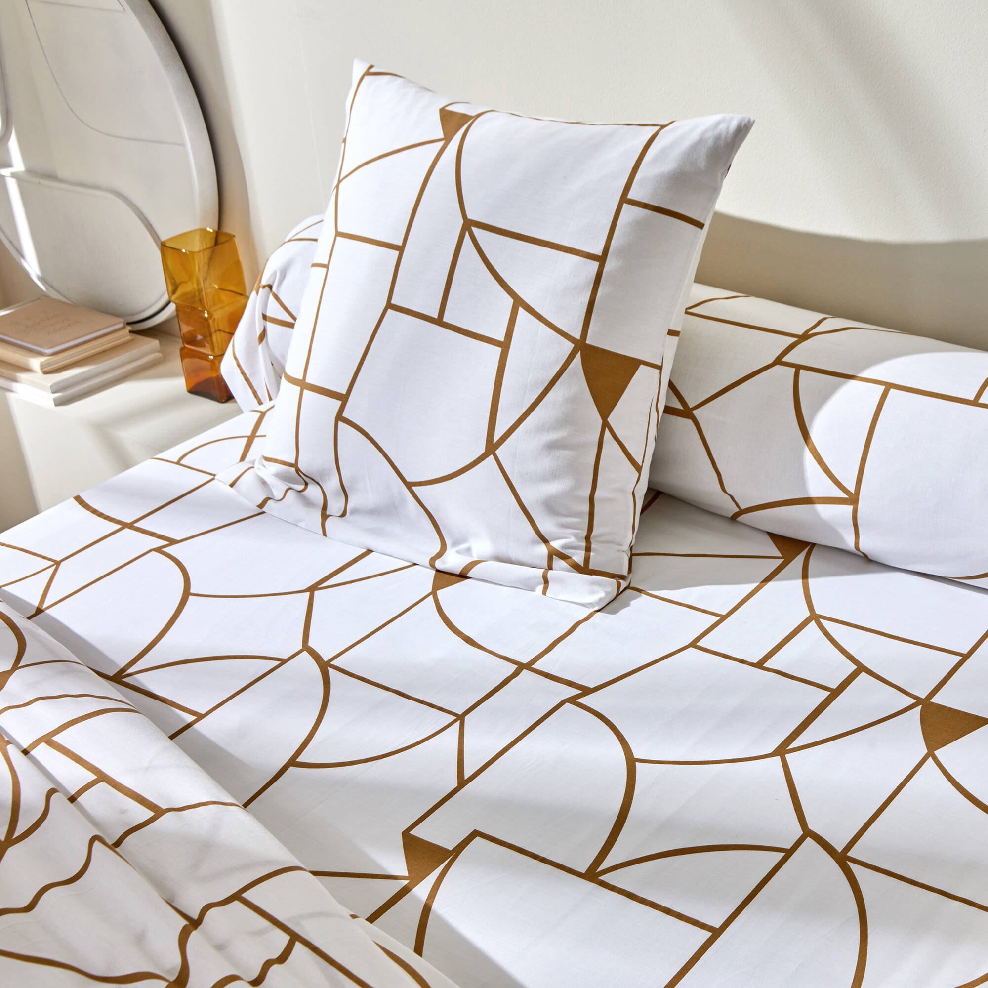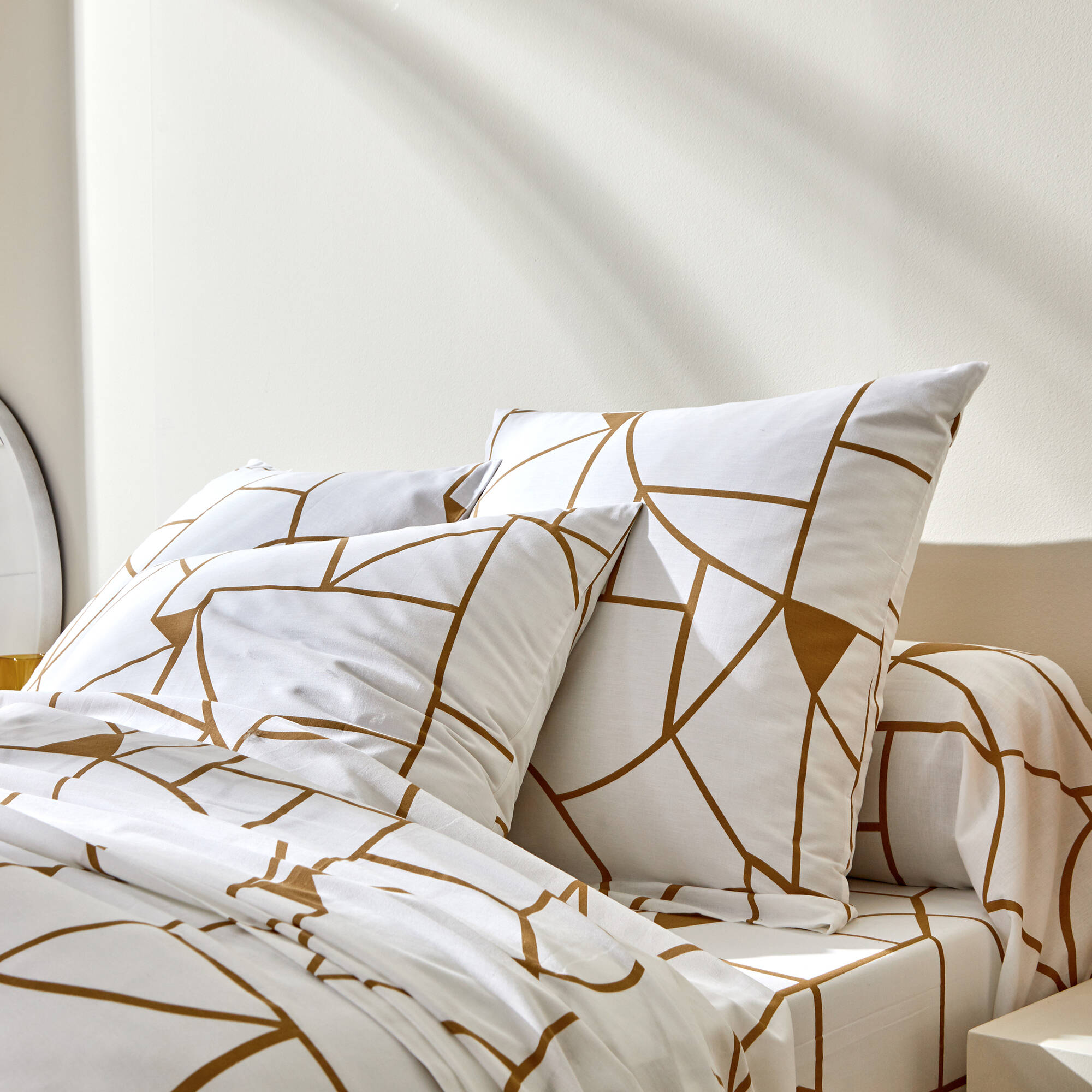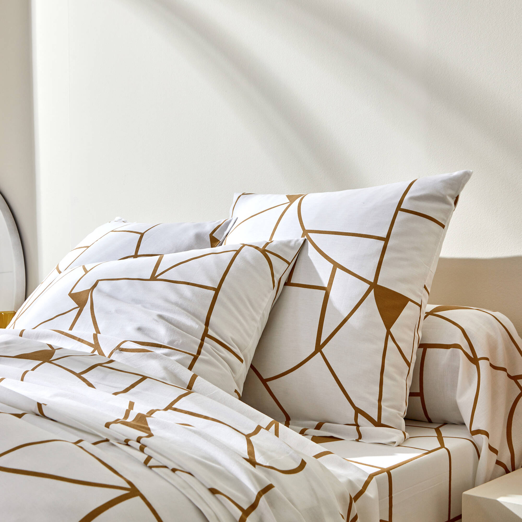 Linge de lit Geoffroy en coton à motifs graphiques (blanc)