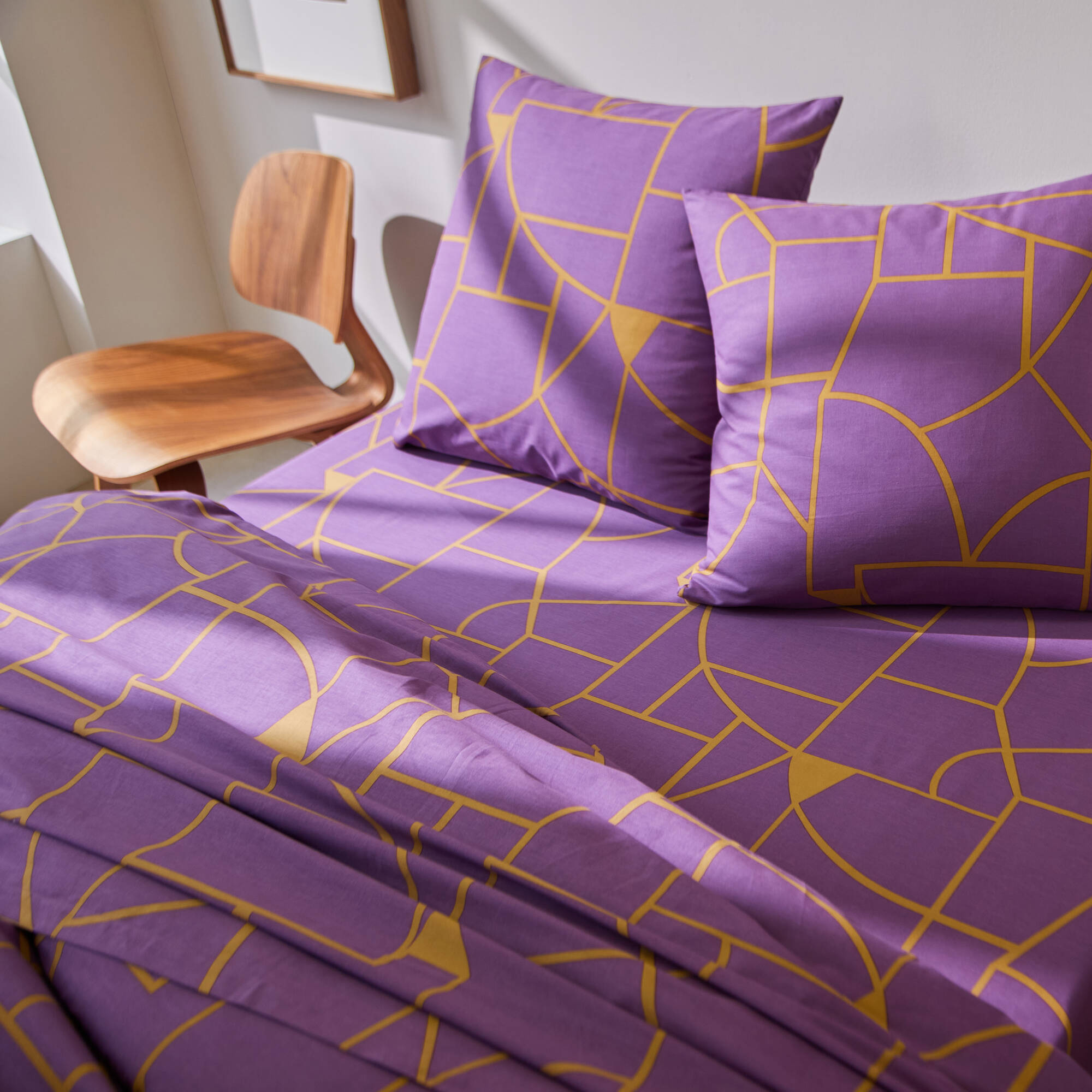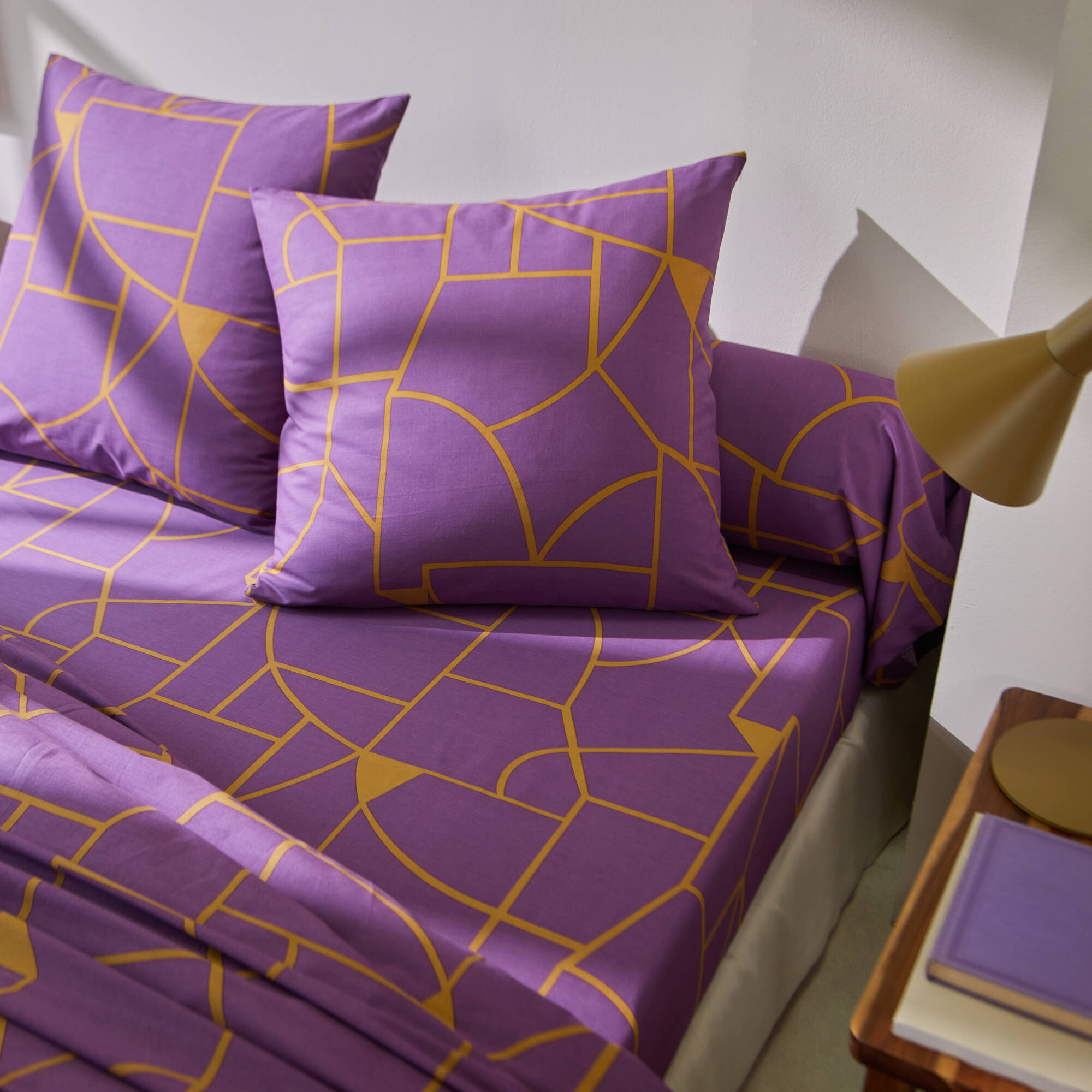 Linge de lit Geoffroy en coton à motifs graphiques (figue)