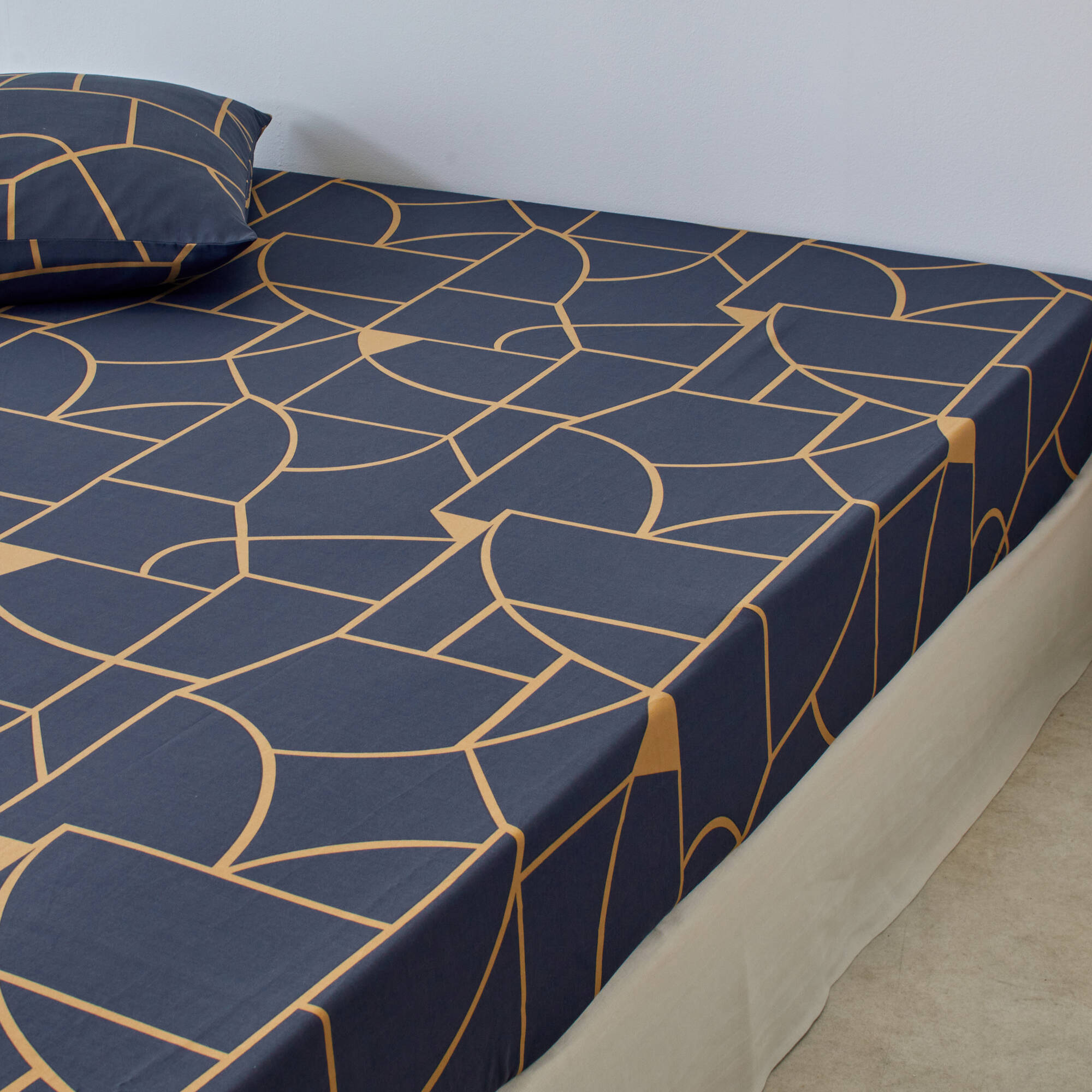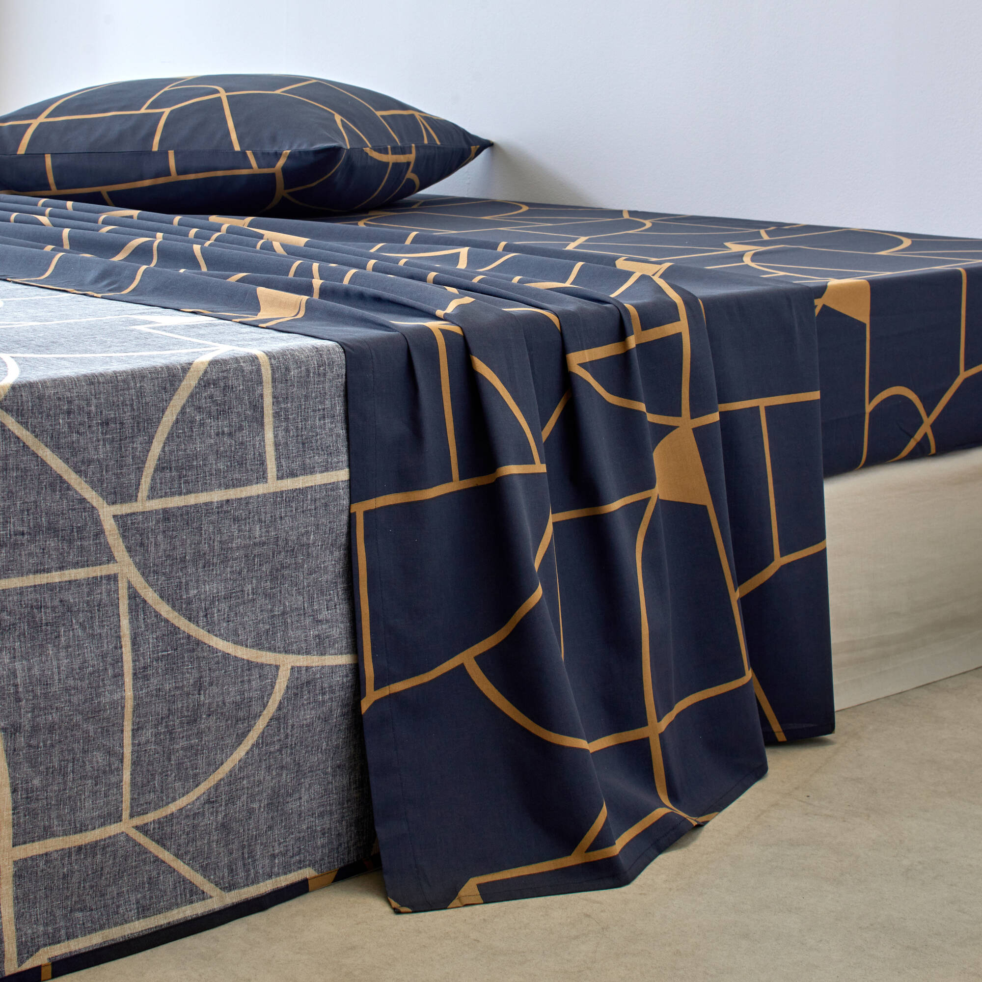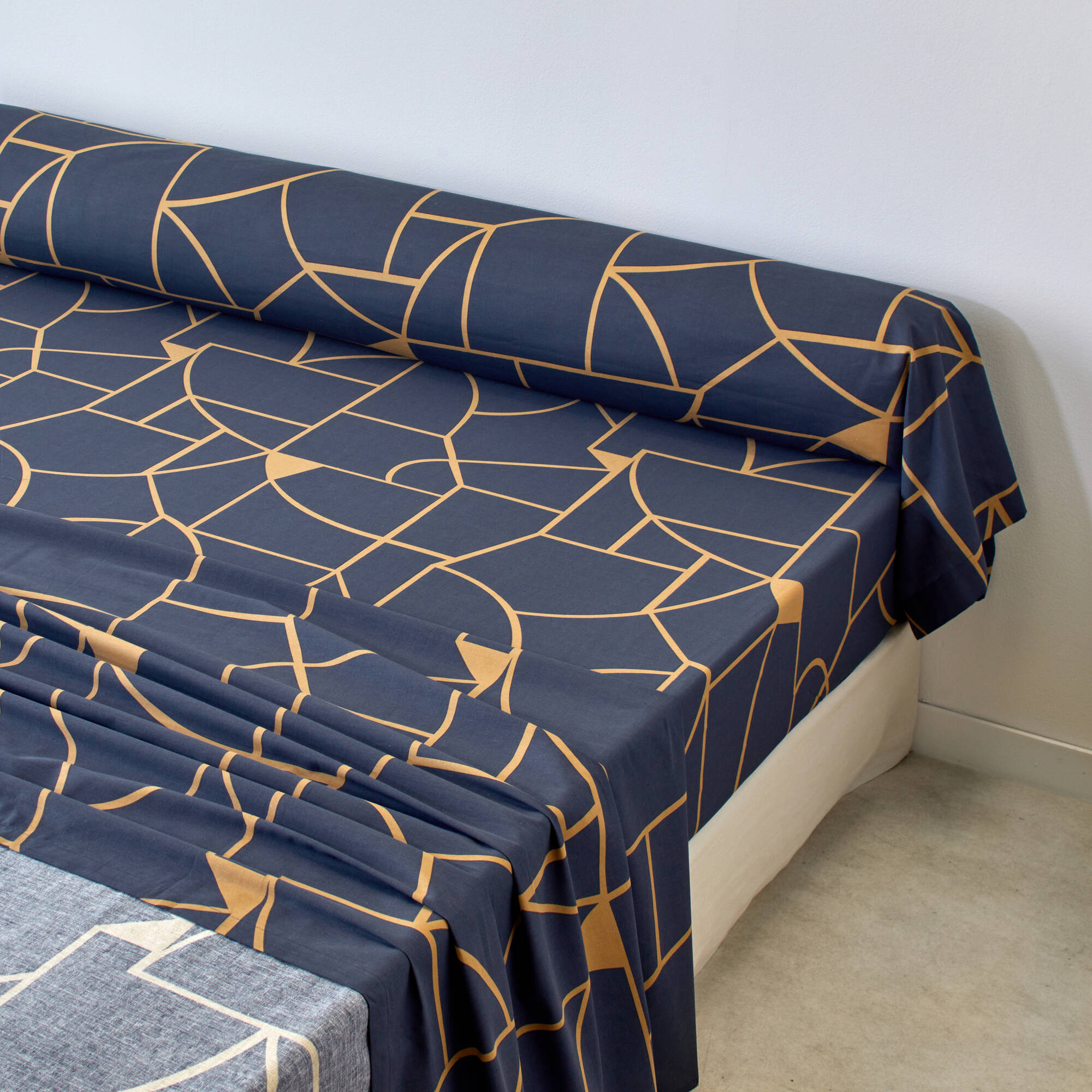 Linge de lit Geoffroy en coton à motifs graphiques (marine)