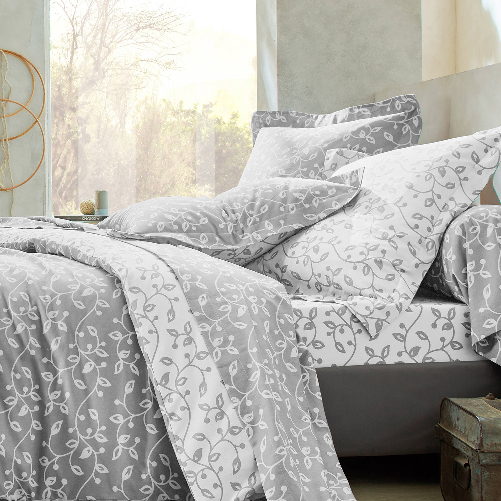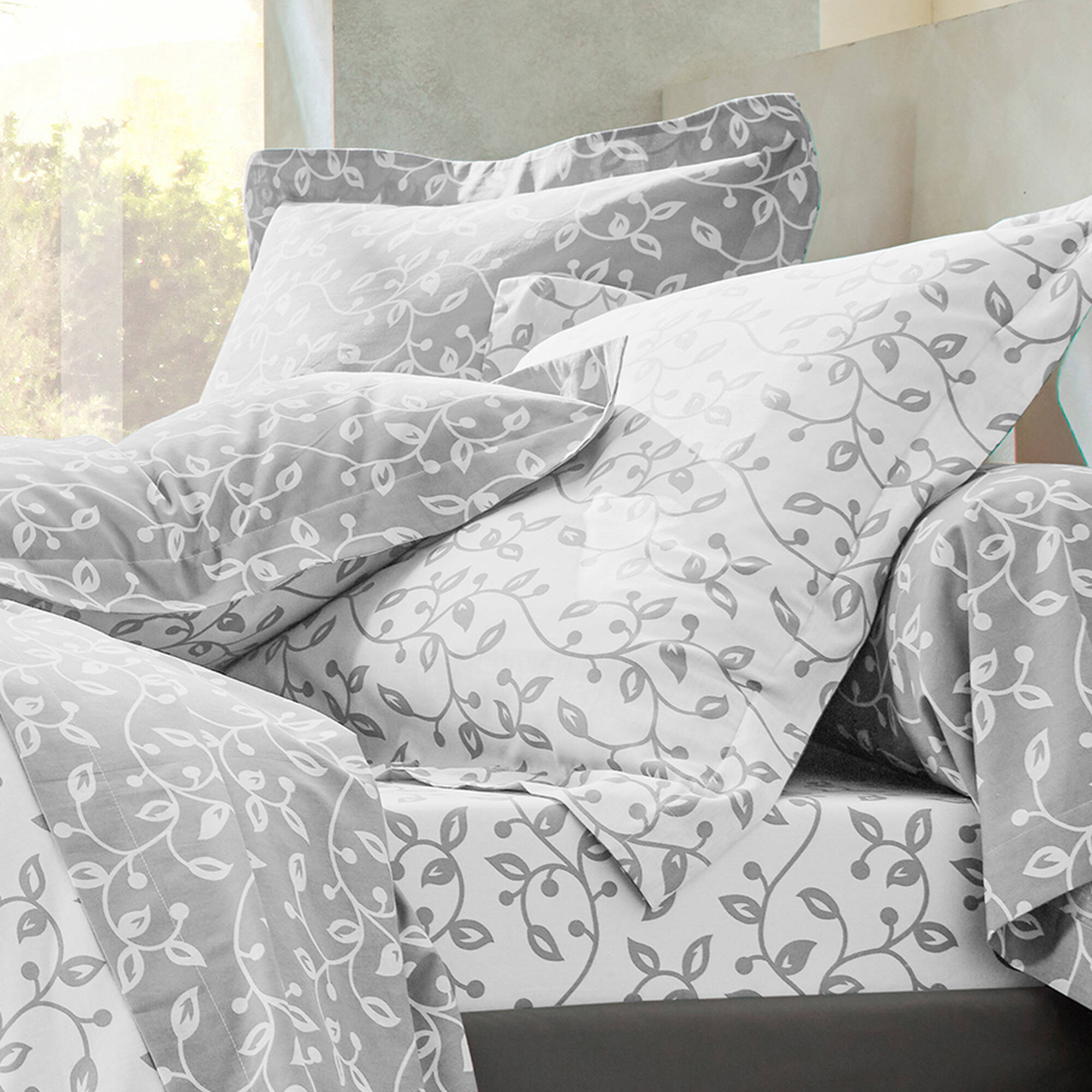 Linge de lit Héritage en coton à motifs volutes (gris / blanc)