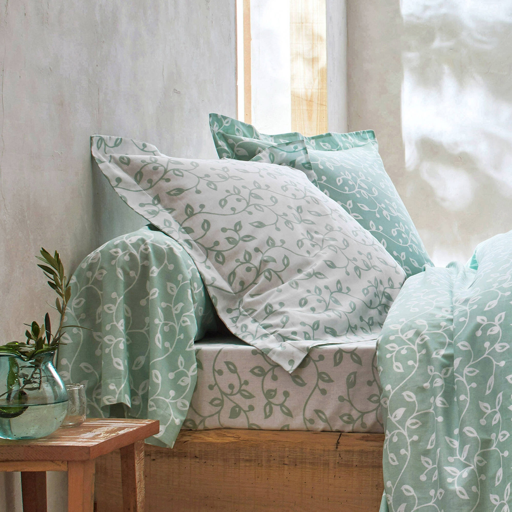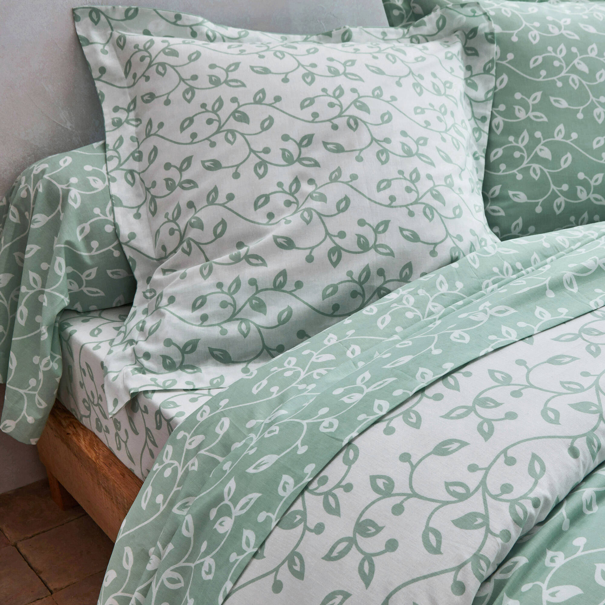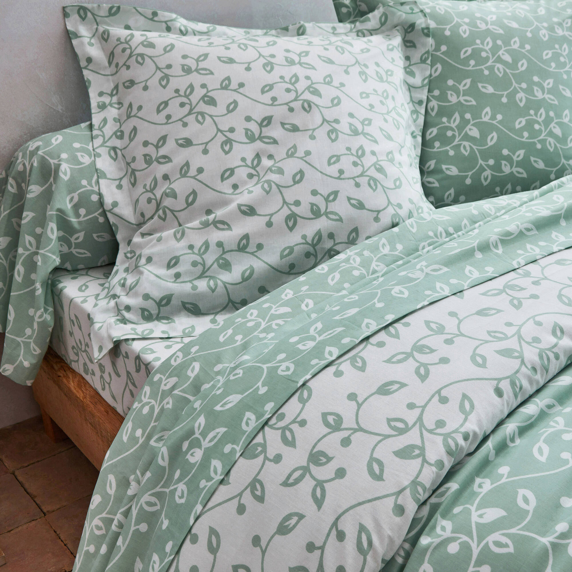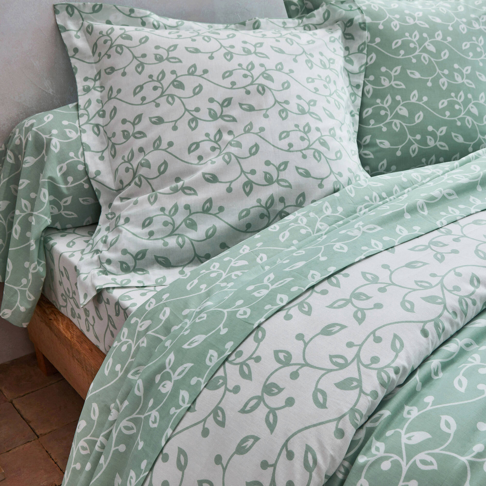 Linge de lit Héritage en coton à motifs volutes (vert / blanc)