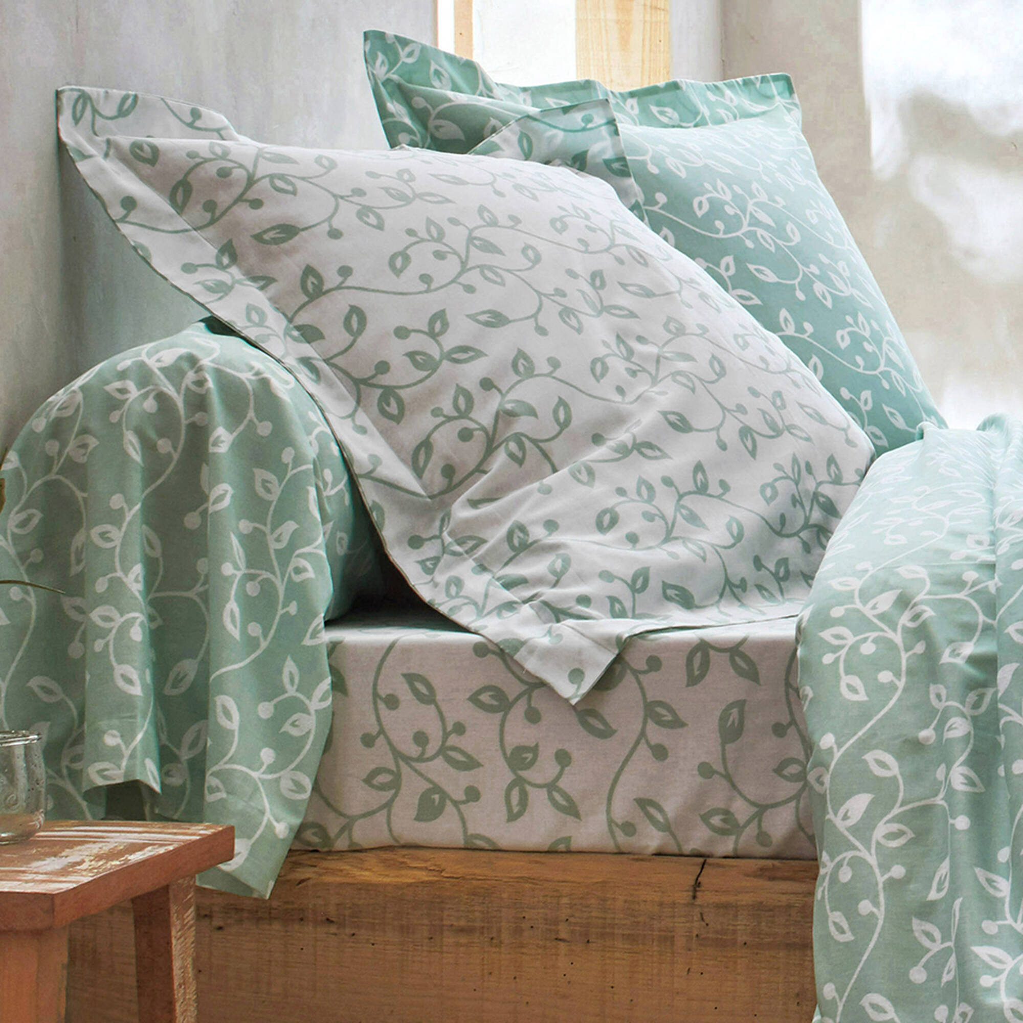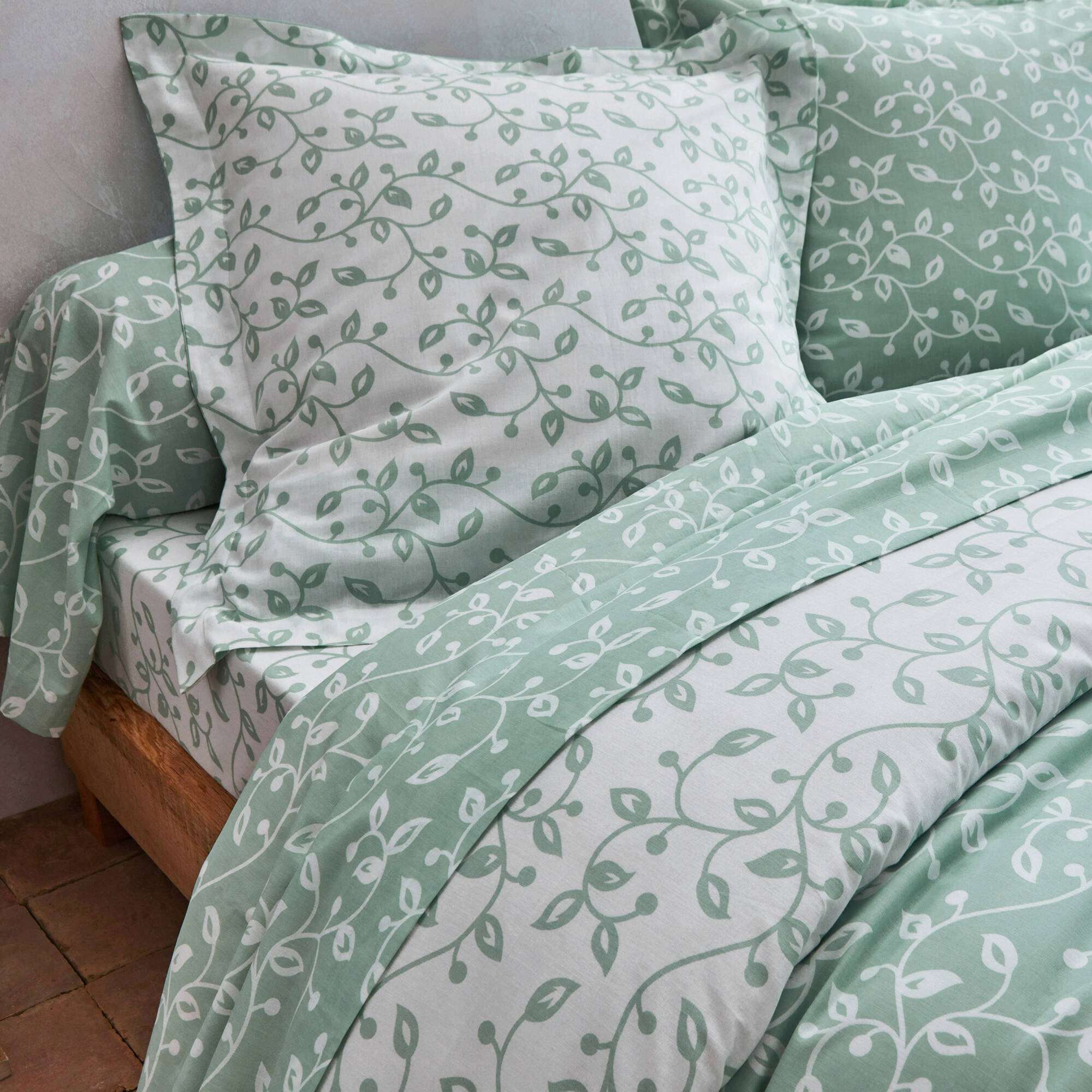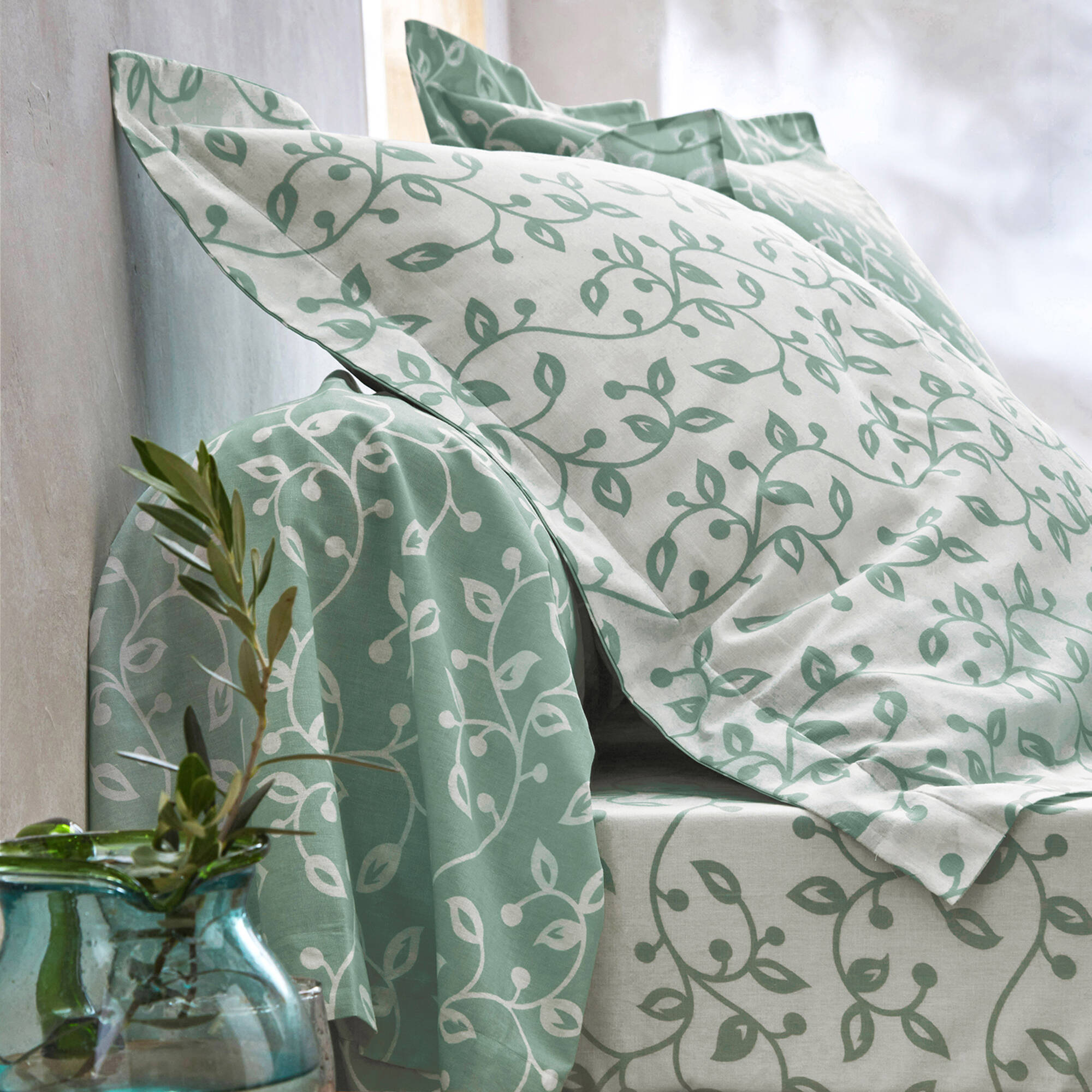 Linge de lit Héritage flanelle à motifs volutes (vert / blanc)