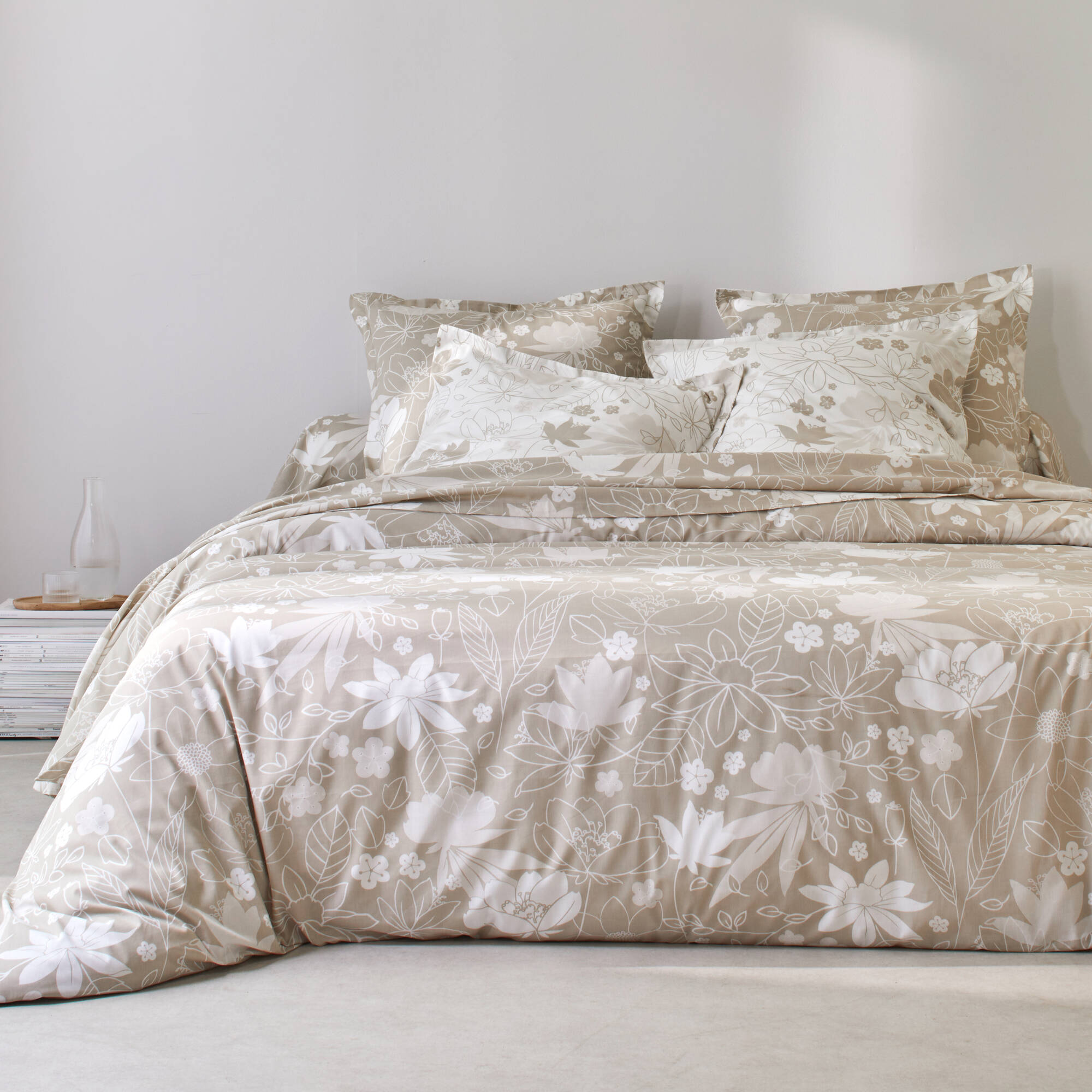 Linge de lit imprimé Pénélope coton (grège)