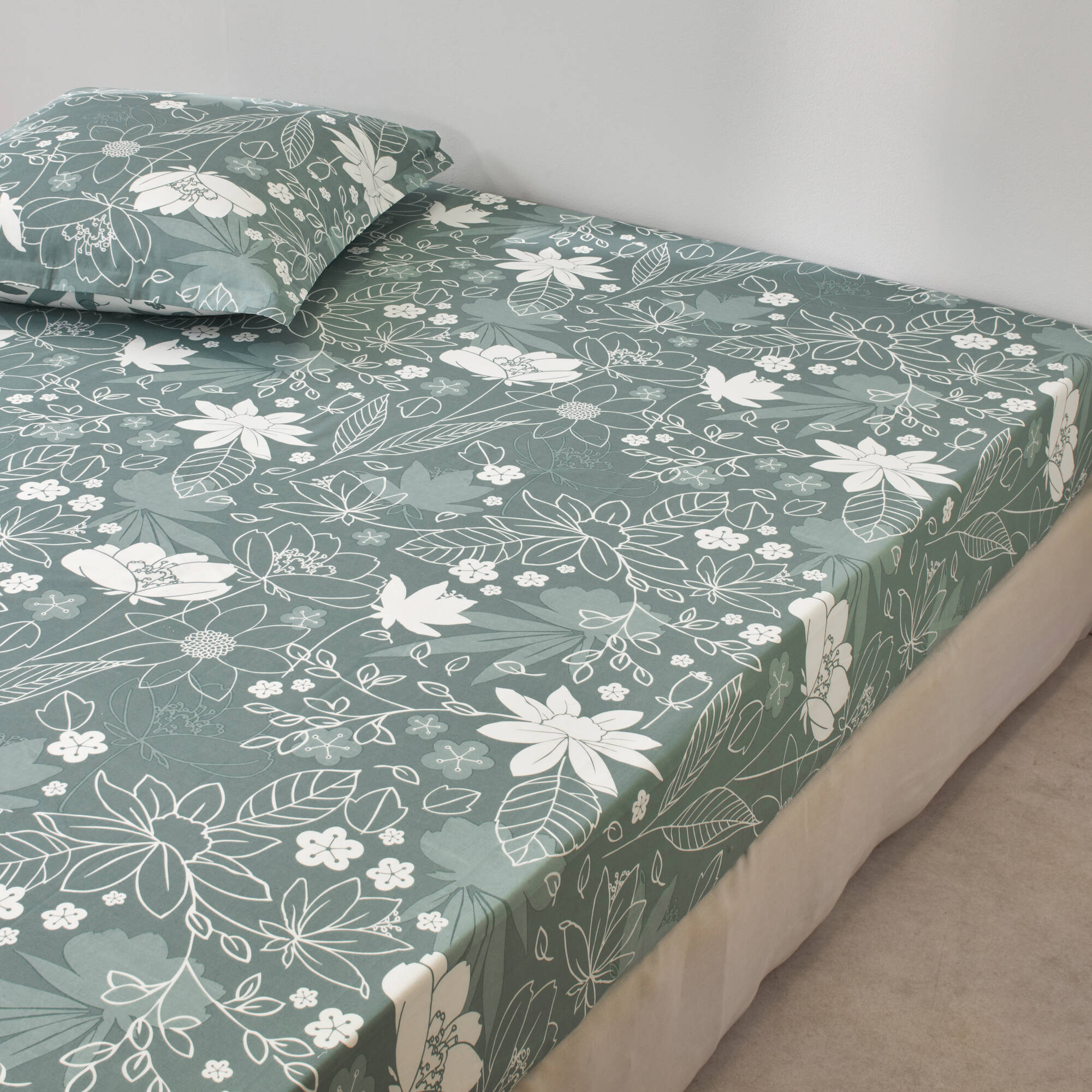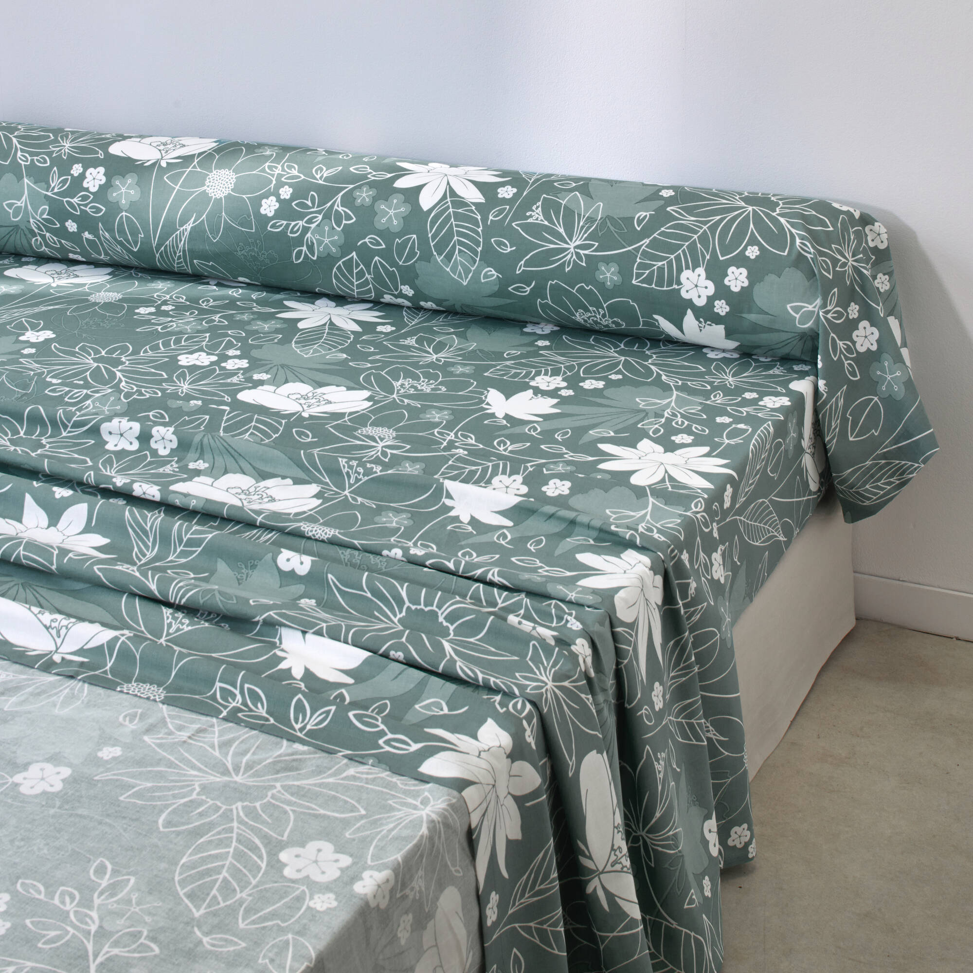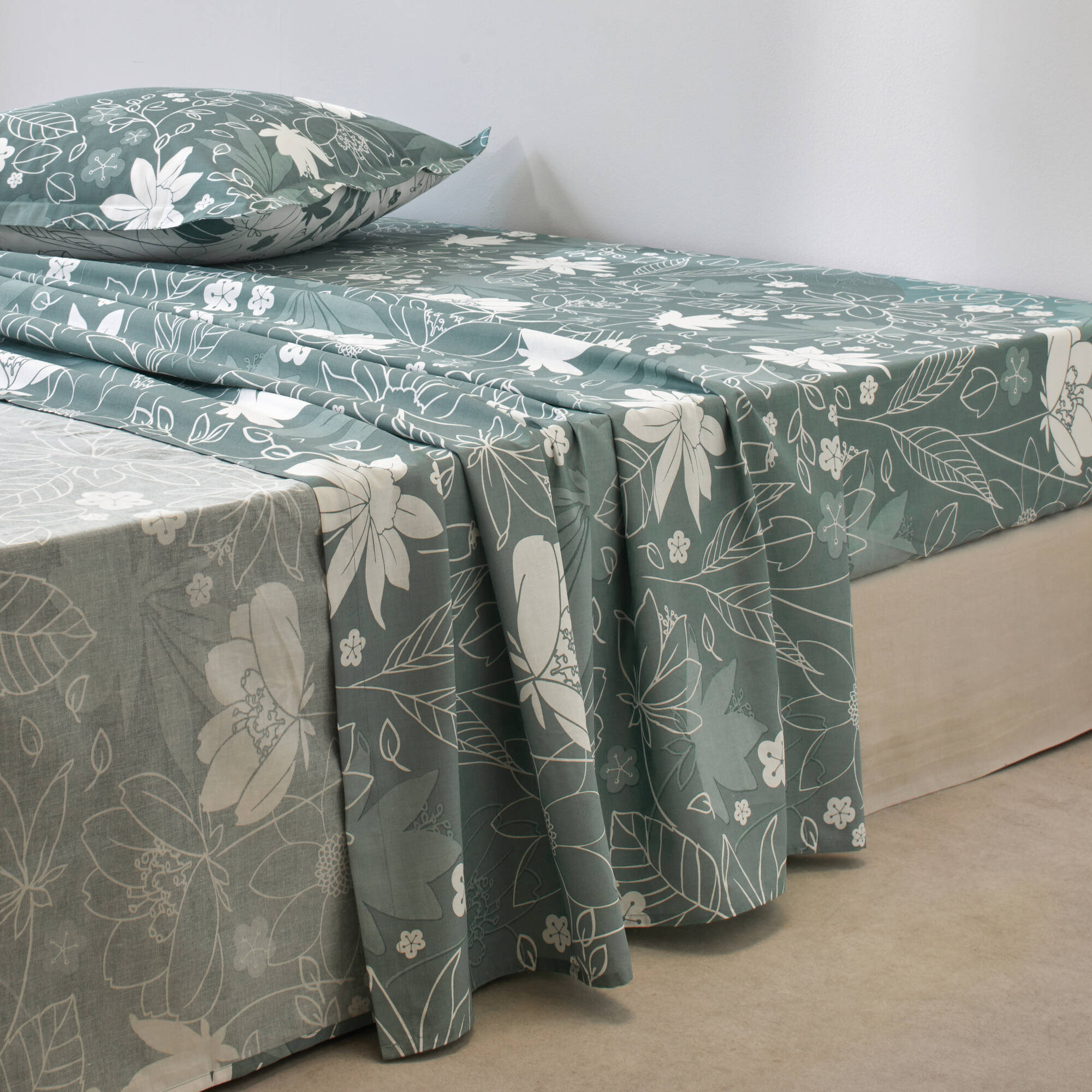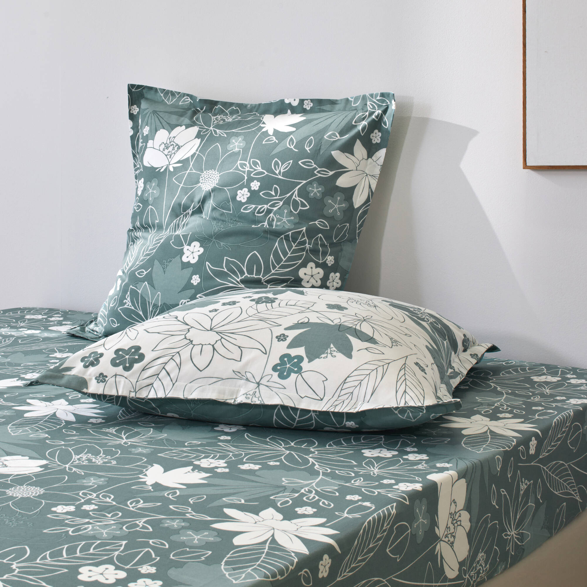 Linge de lit imprimé Pénélope coton (eucalyptus)