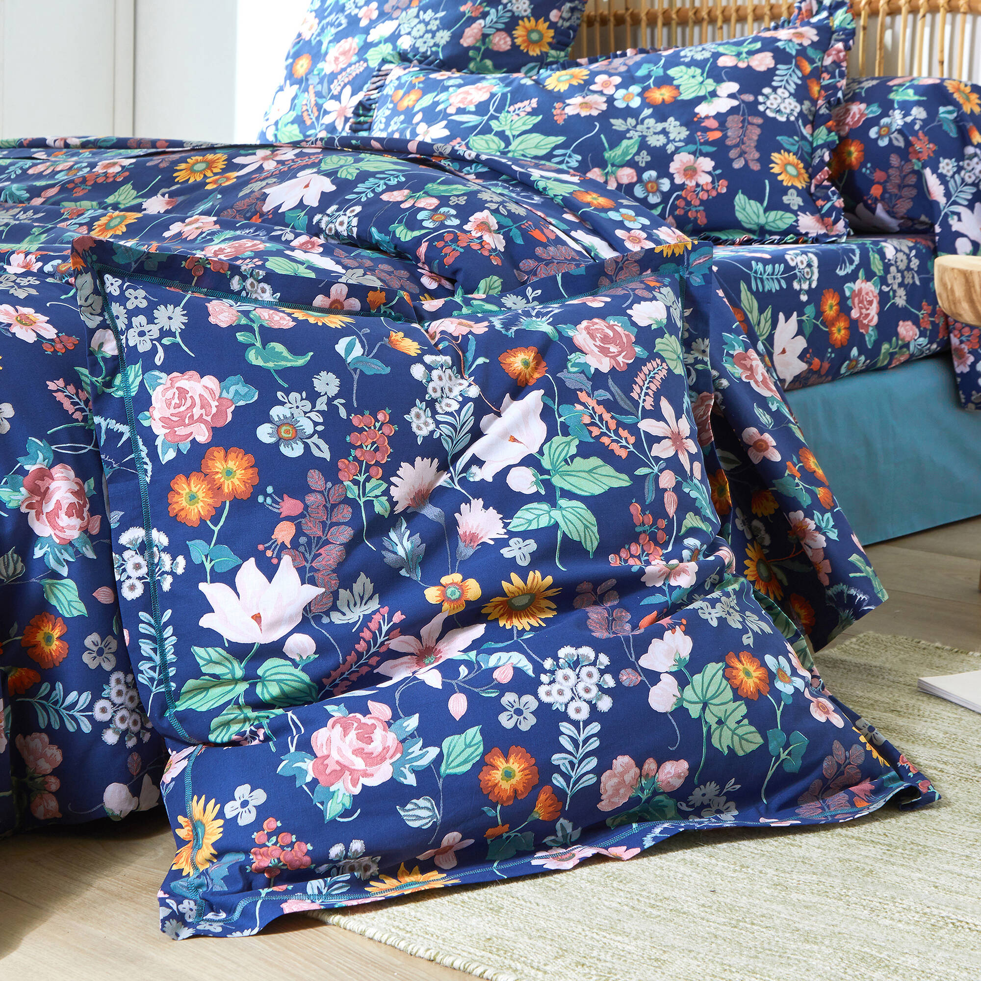 Linge de lit Kelly en coton imprimé floral (marine)