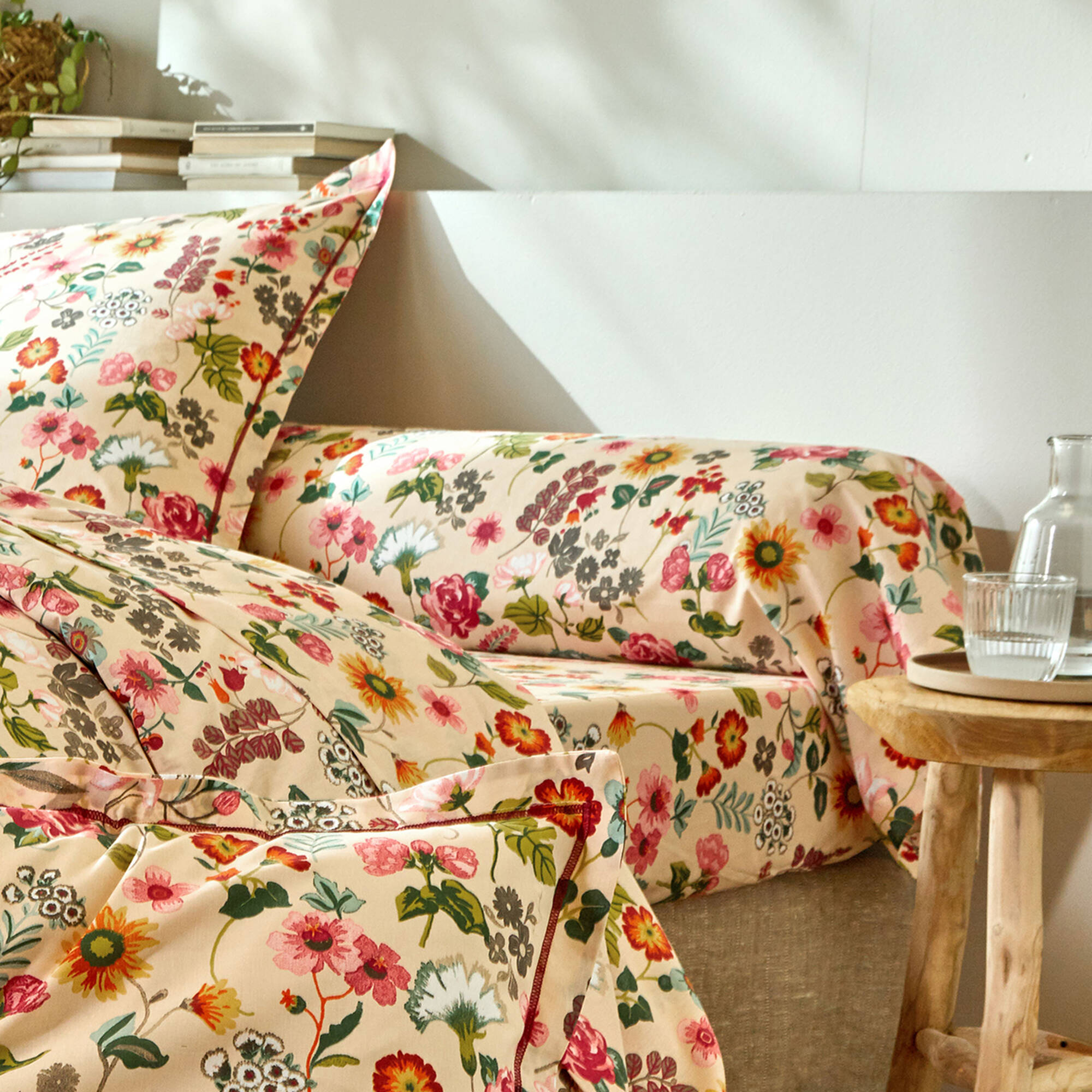 Linge de lit Kelly en coton imprimé floral (beige)