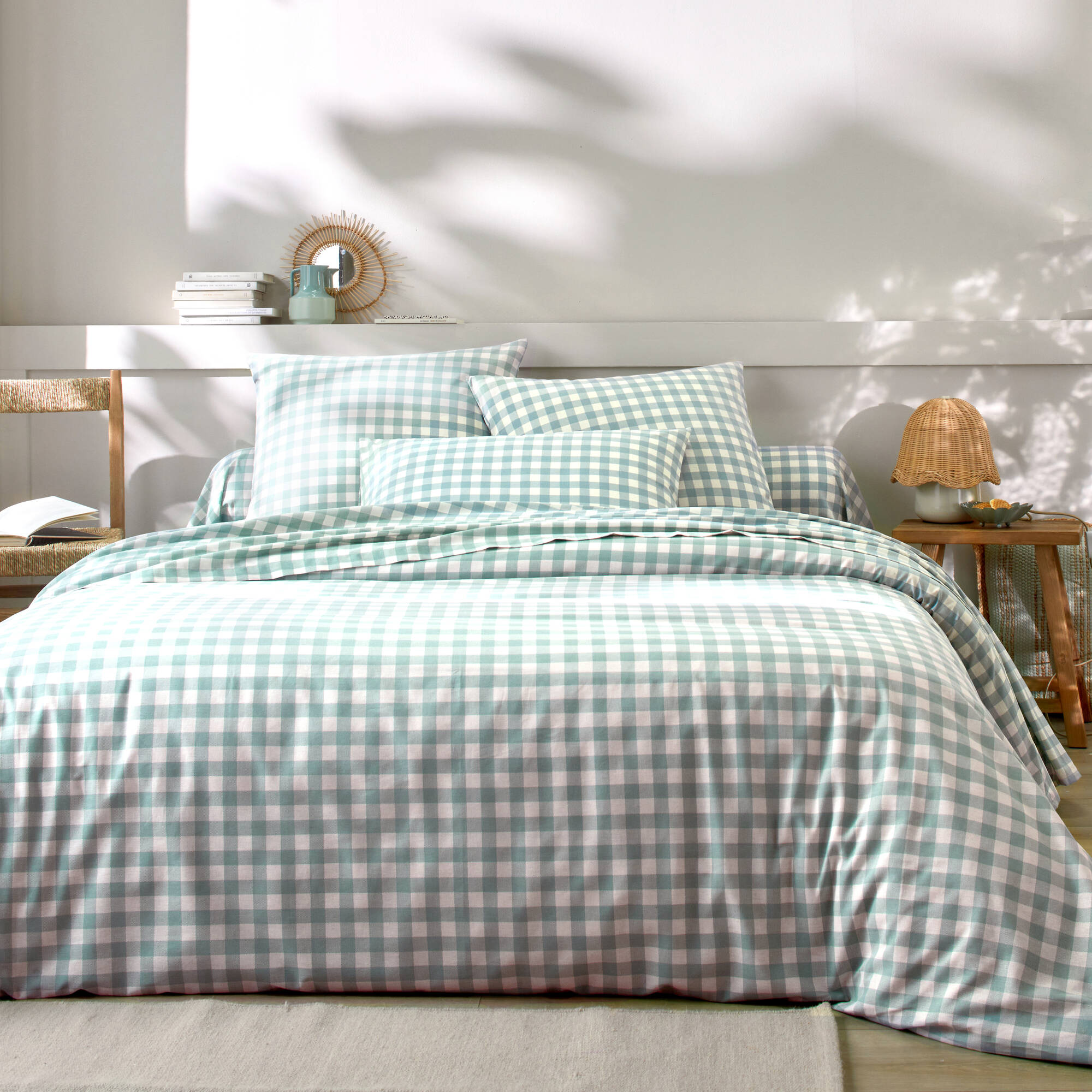 Linge de lit Lou imprimé carreaux - en coton (vert grisé)