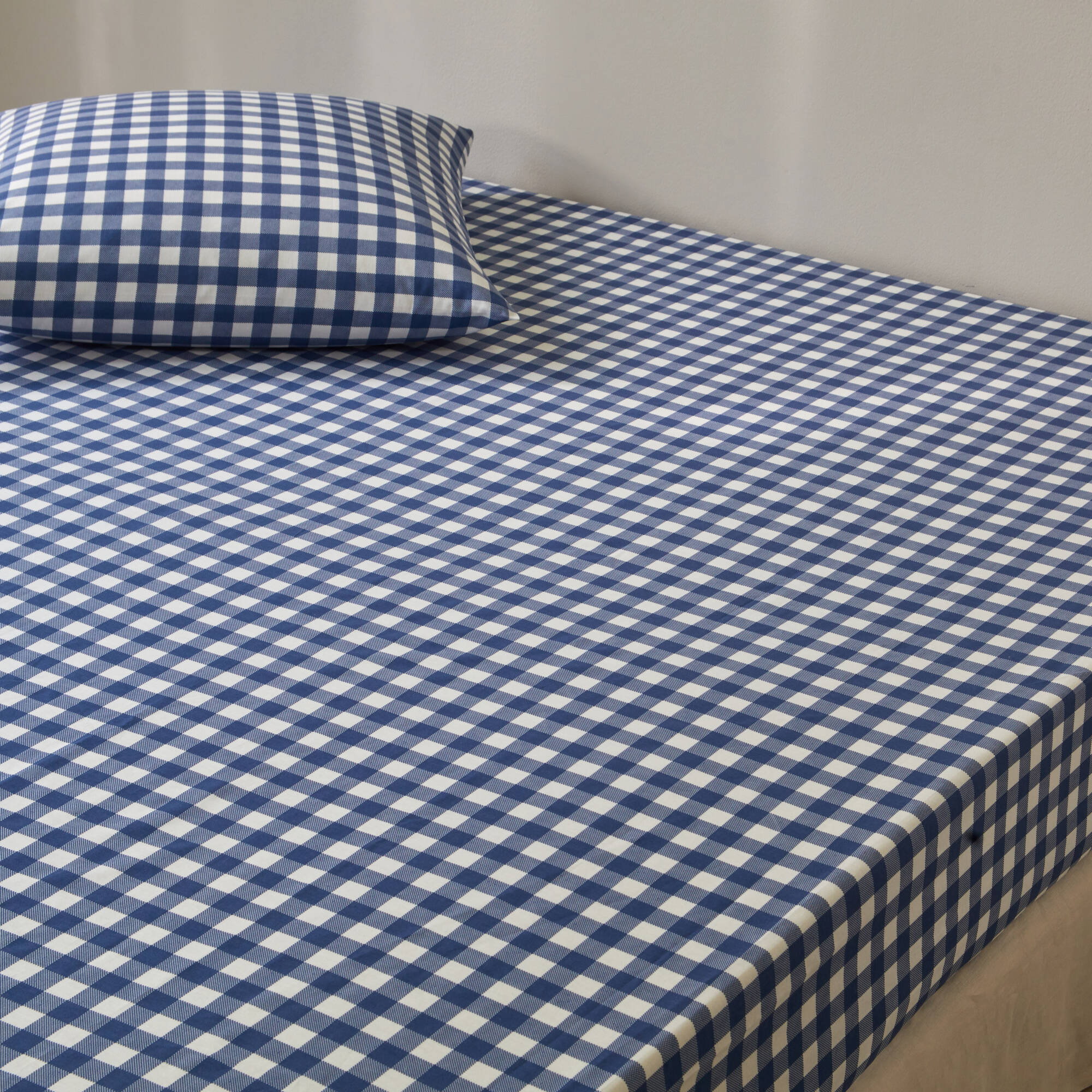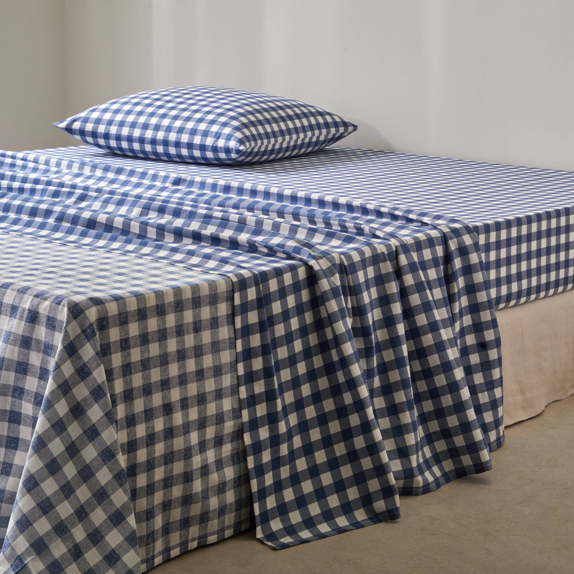 Linge de lit Lou imprimé carreaux - en coton (marine)