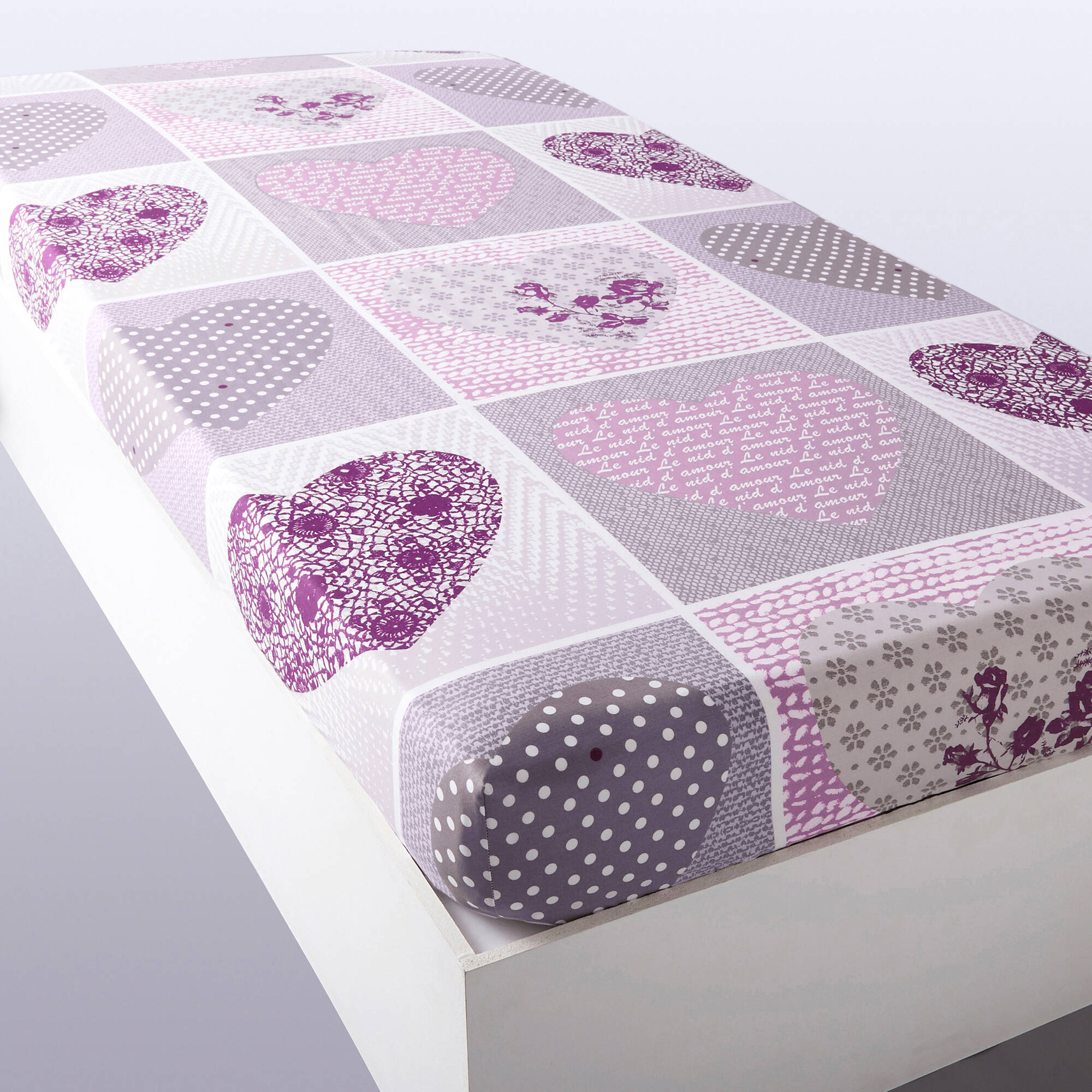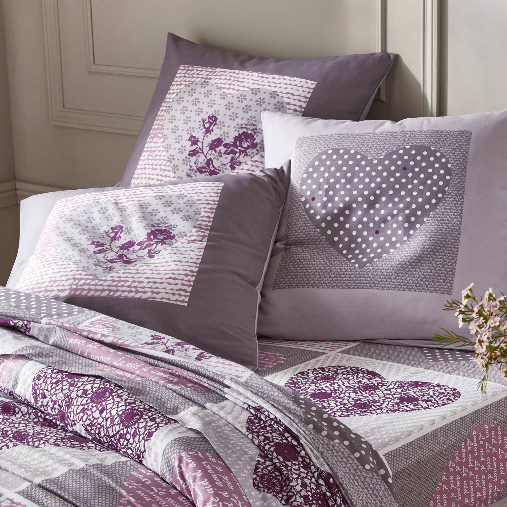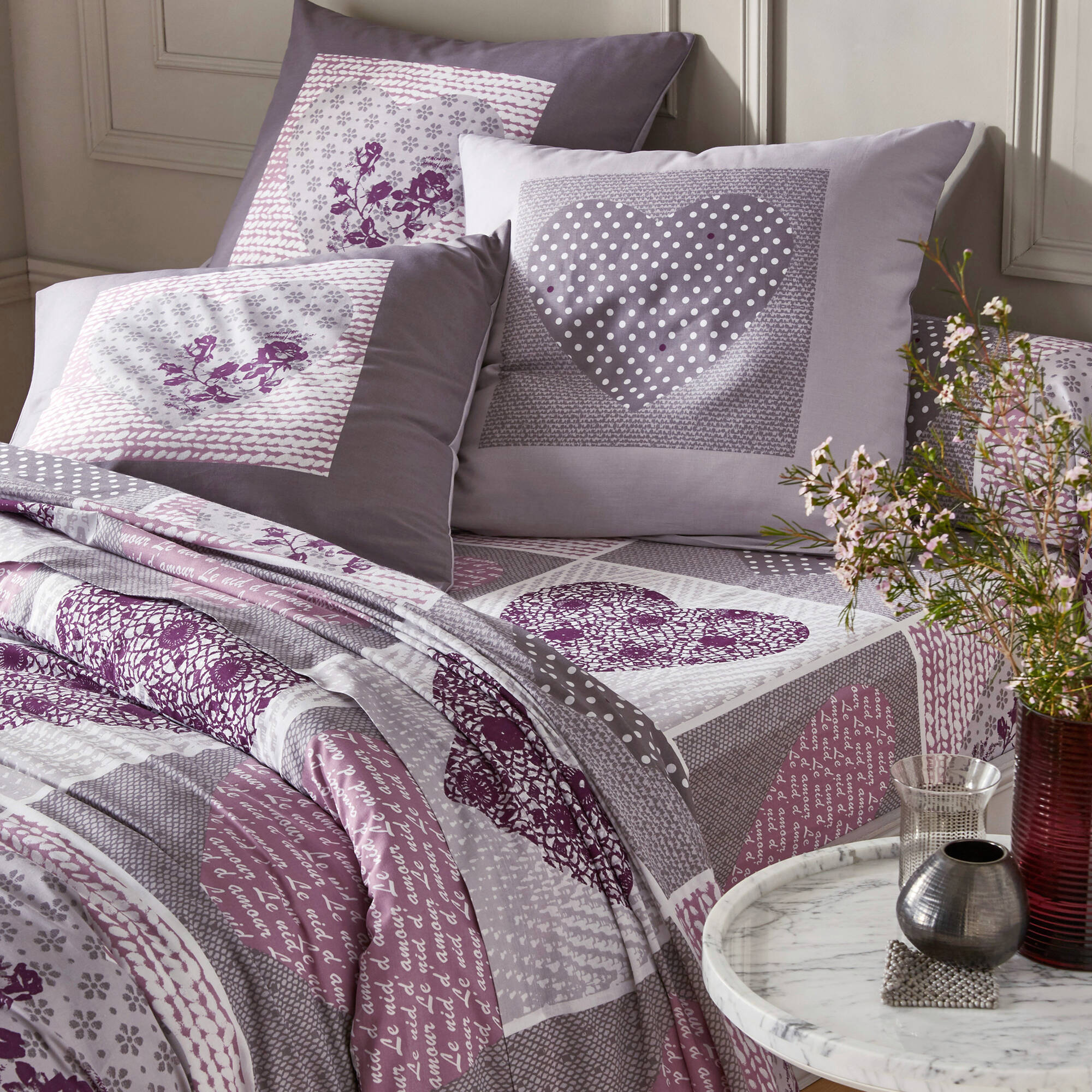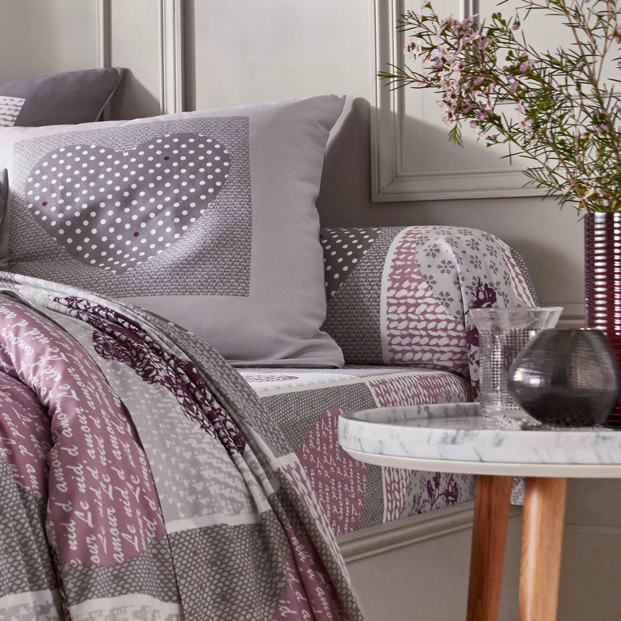 Linge de lit Lovely en flanelle imprimé coeurs  (gris / parme)