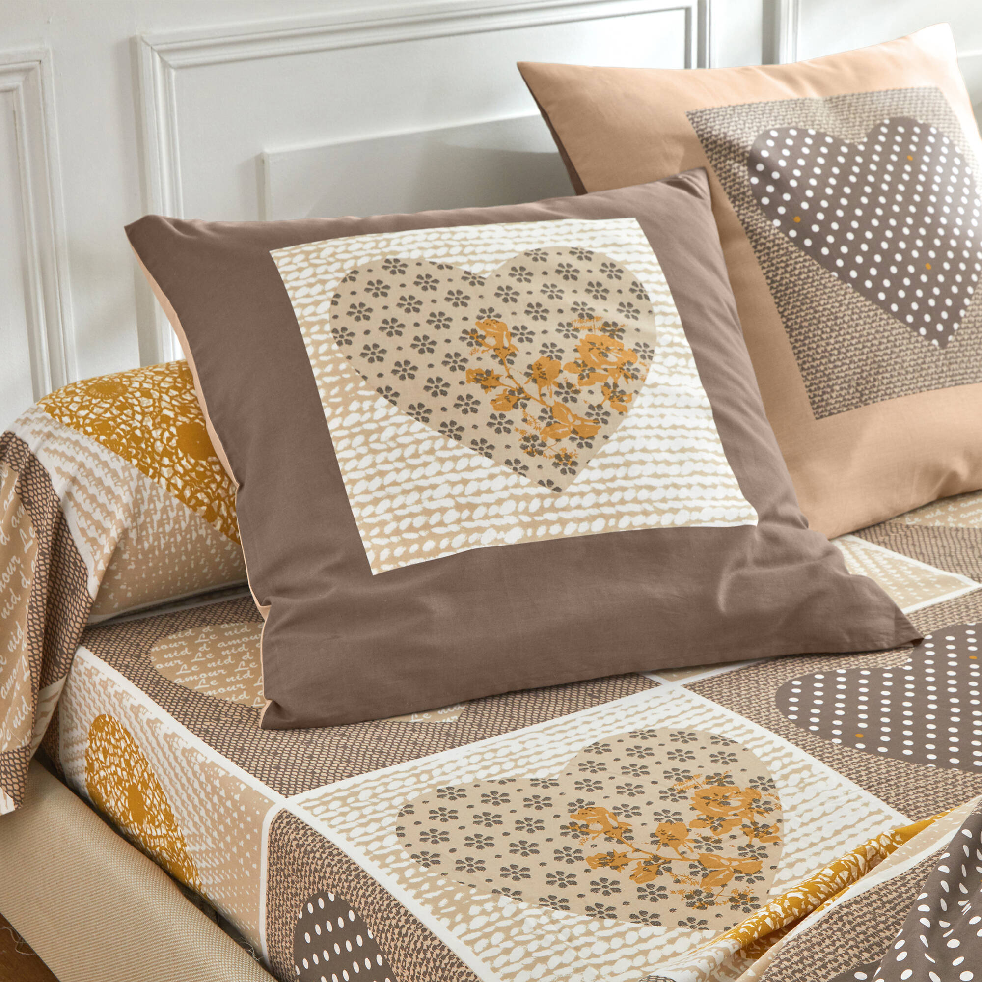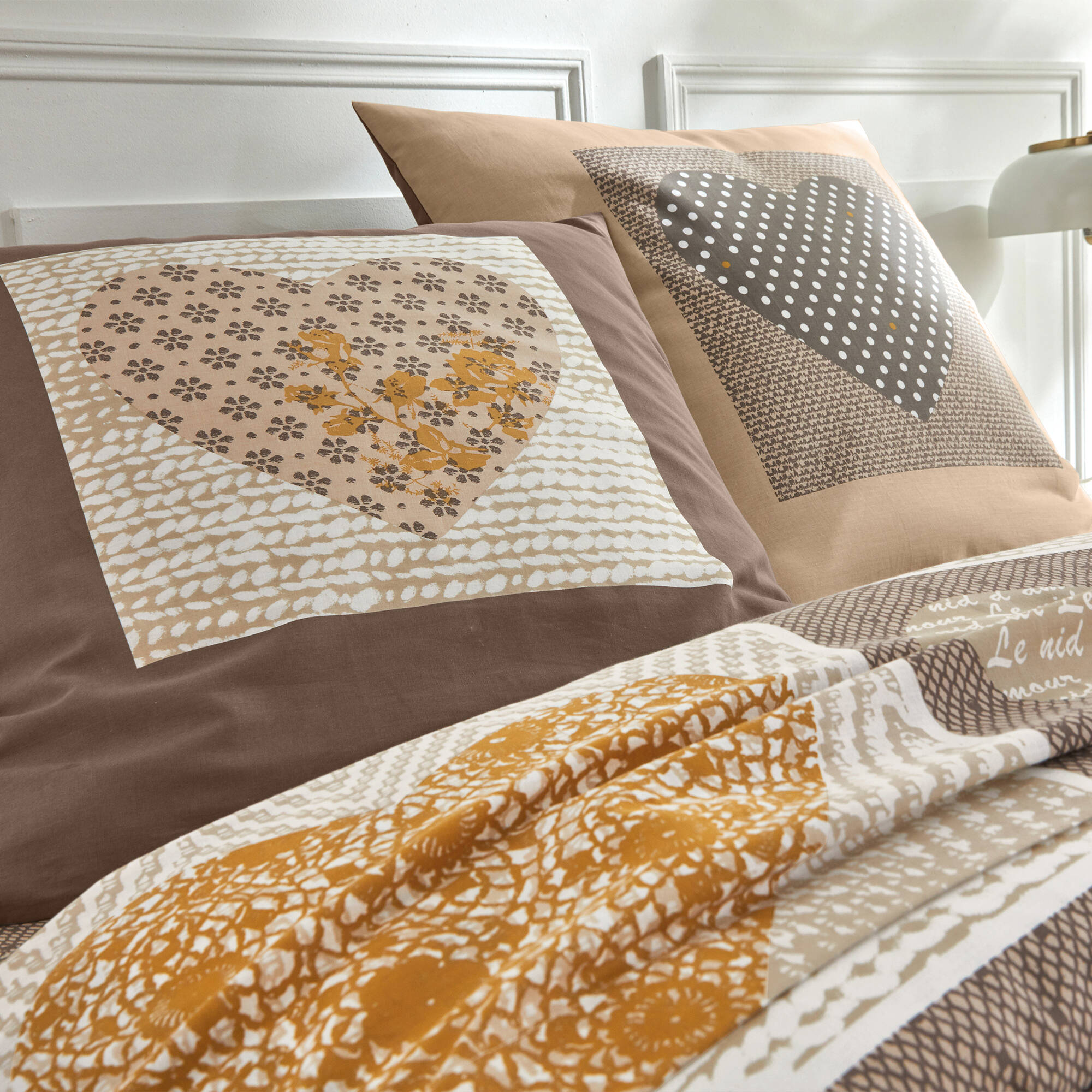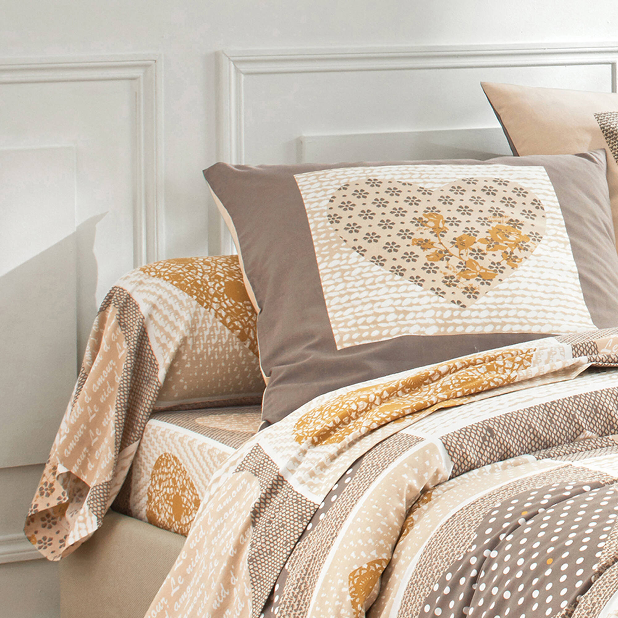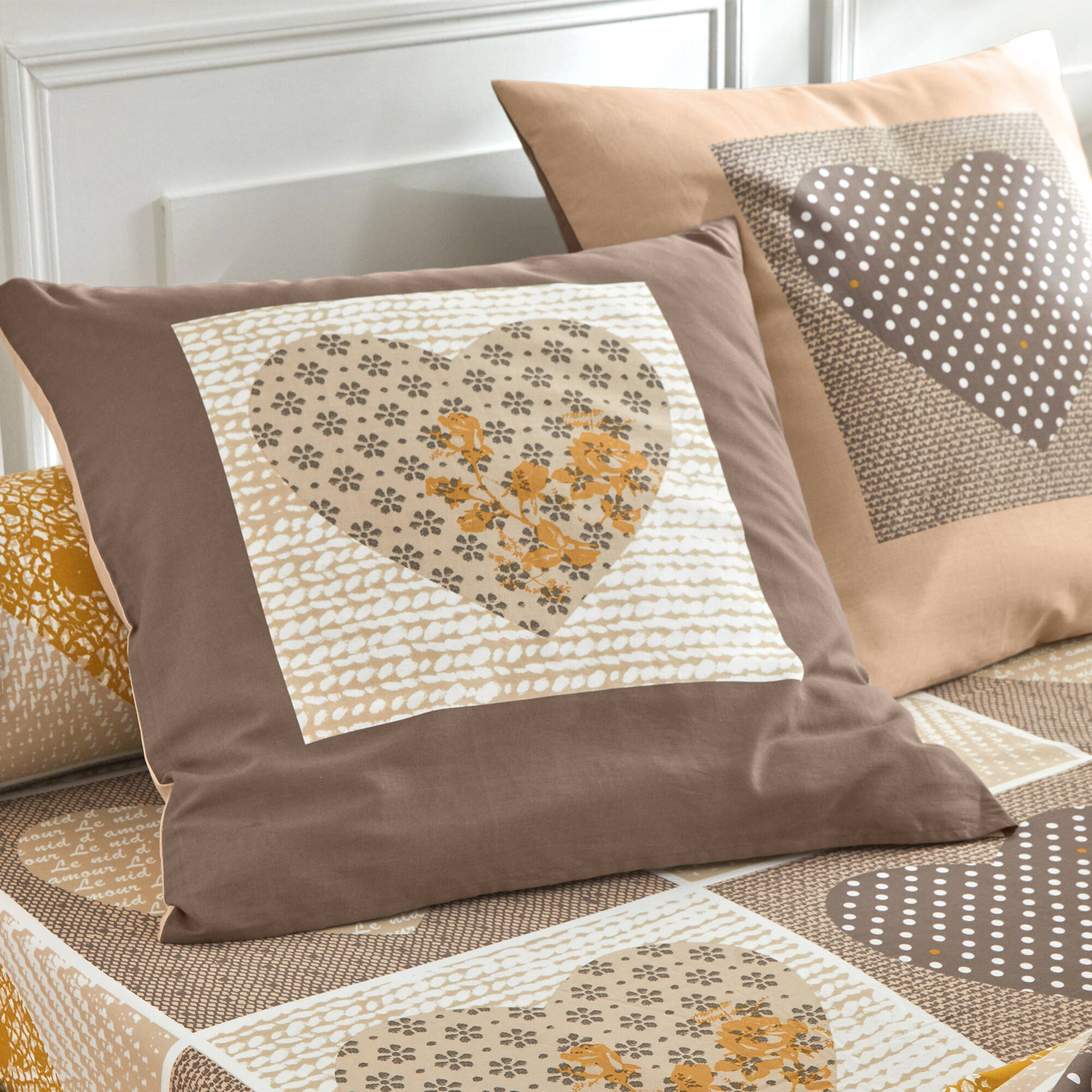 Linge de lit Lovely en flanelle imprimé coeurs  (beige / caramel)