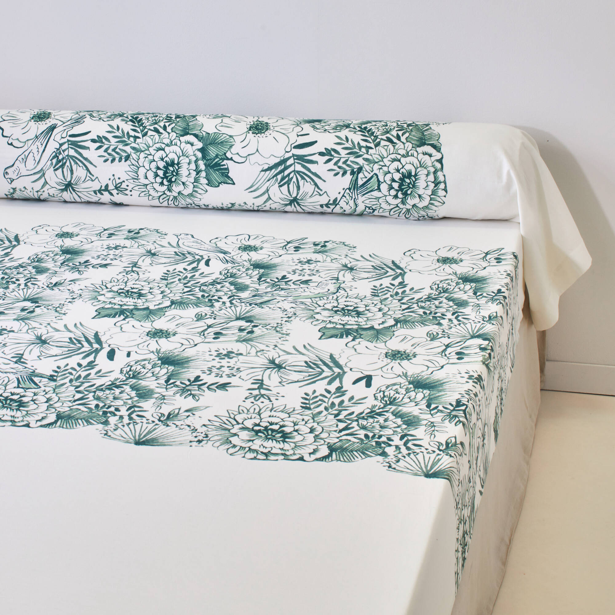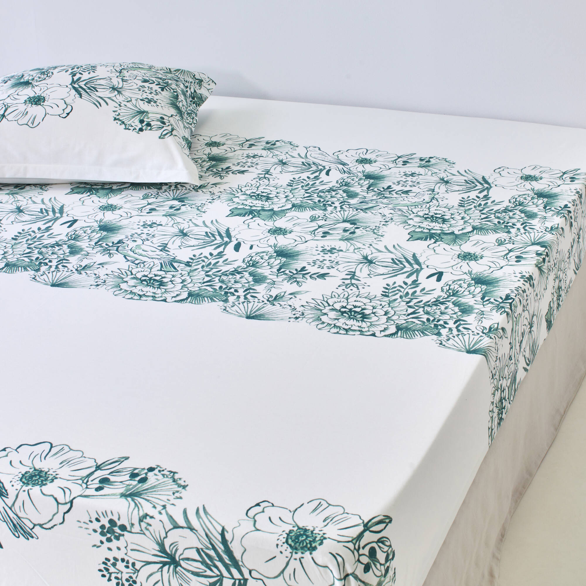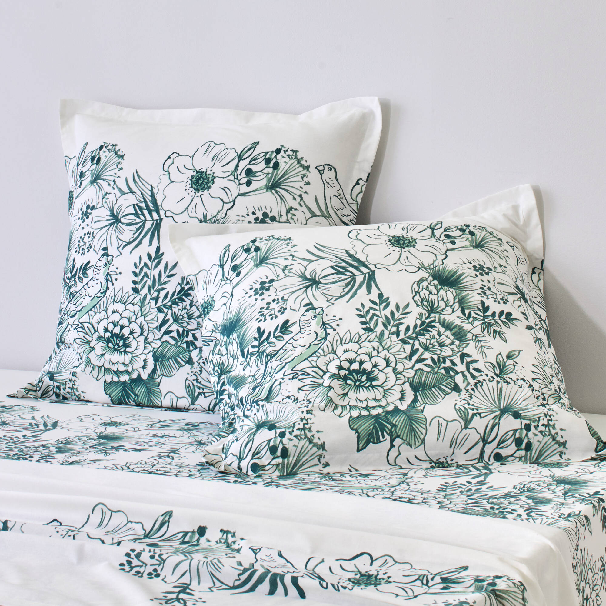 Linge de lit Lydia en coton imprimé (vert)